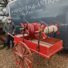 This Dutch hand pulled fire cart has its original hoses and is now going to have a light restoration and be added to the private collection of carts we have in the car museum.