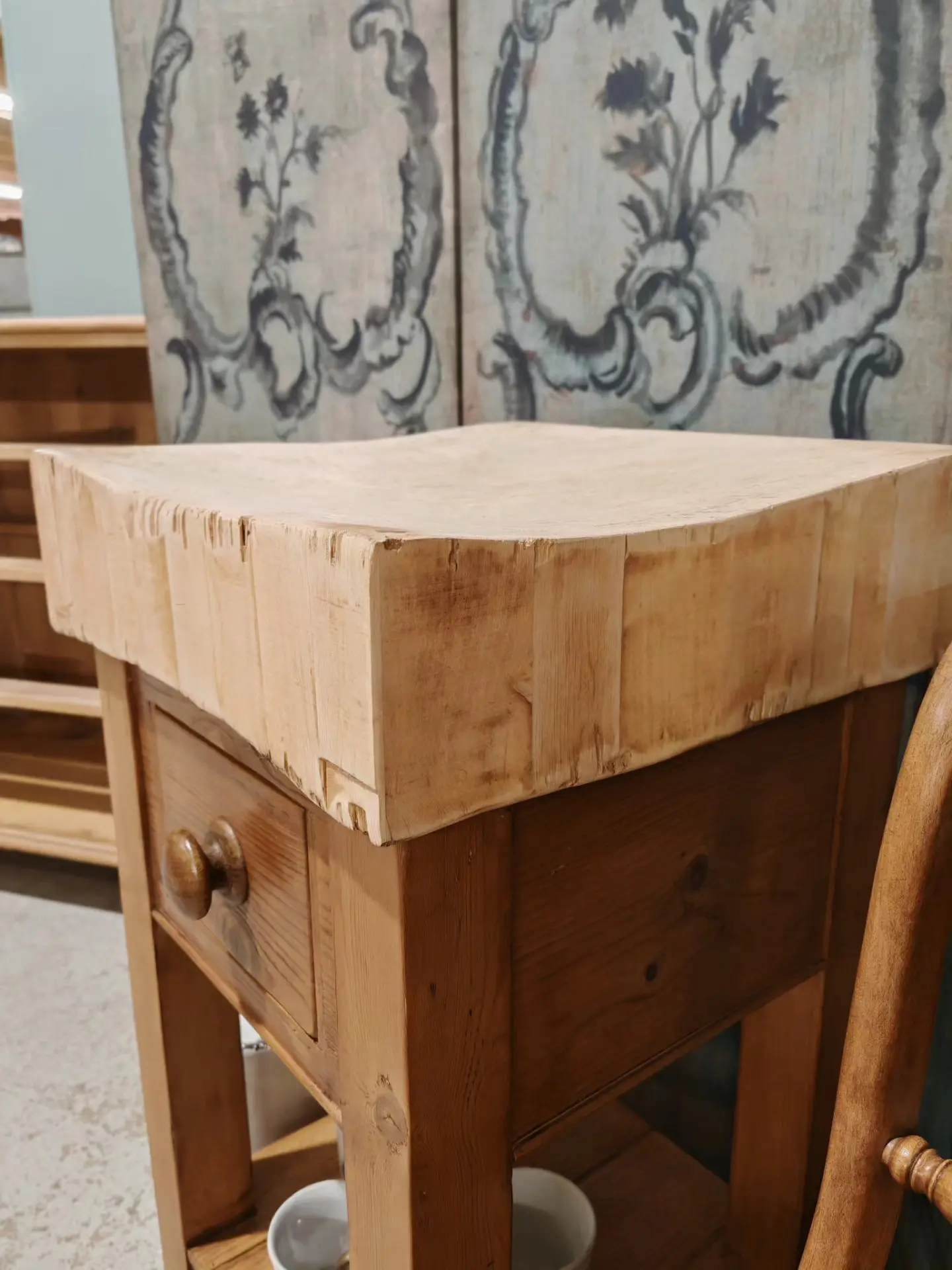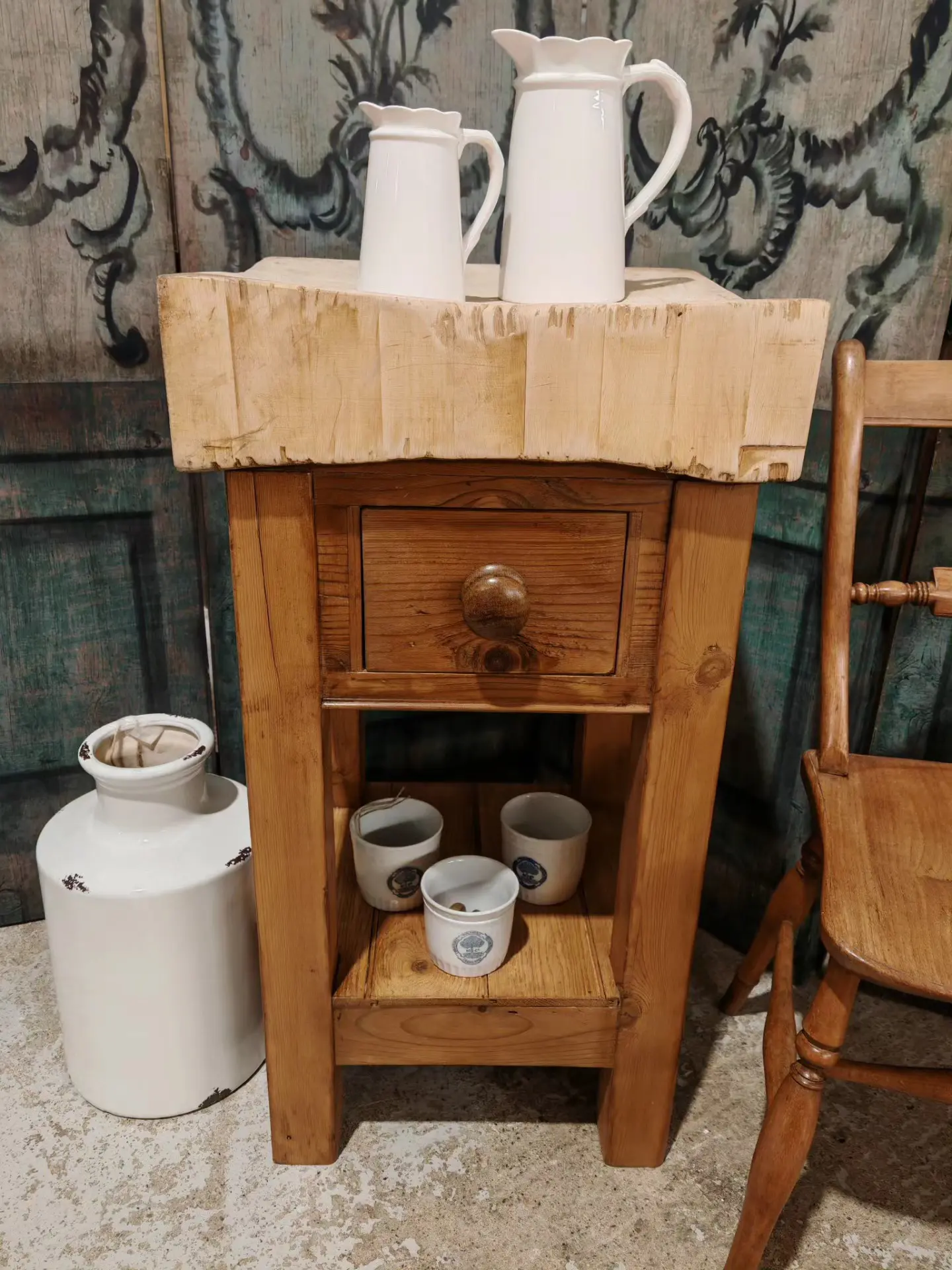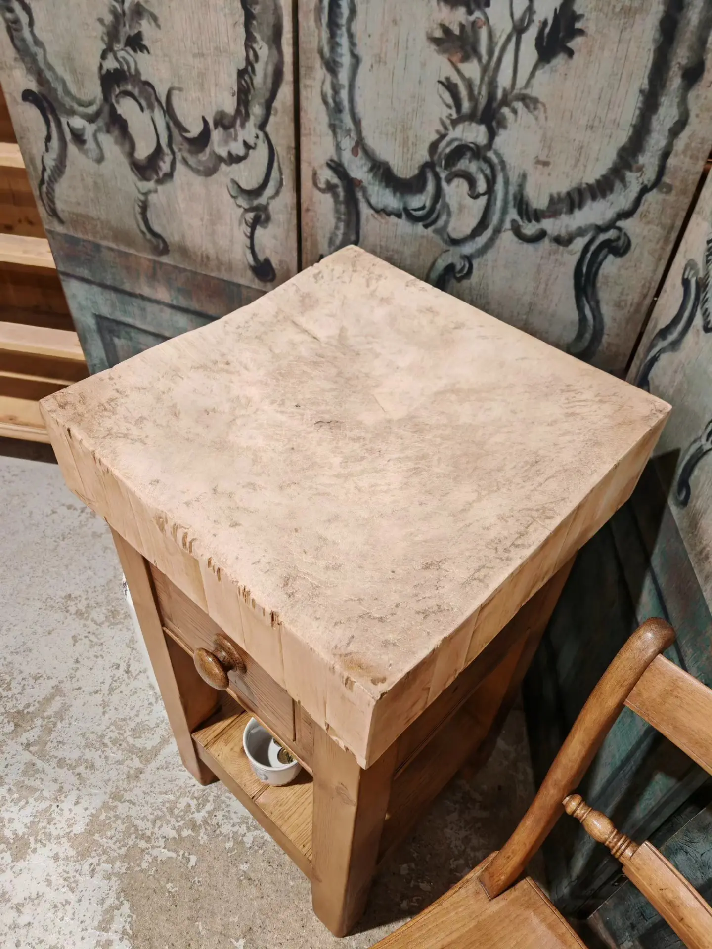 The block has come back from a buying trip in France and we have made the base up from old pine in the original style.