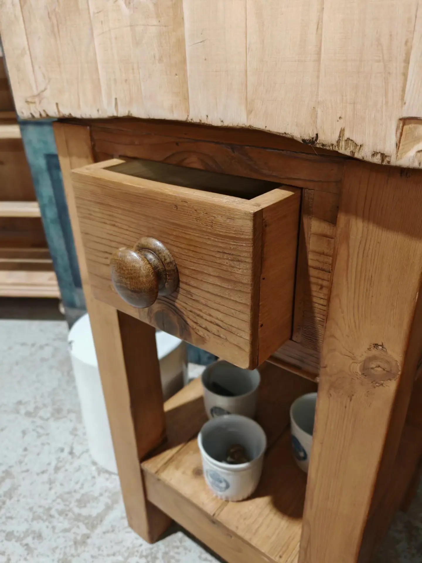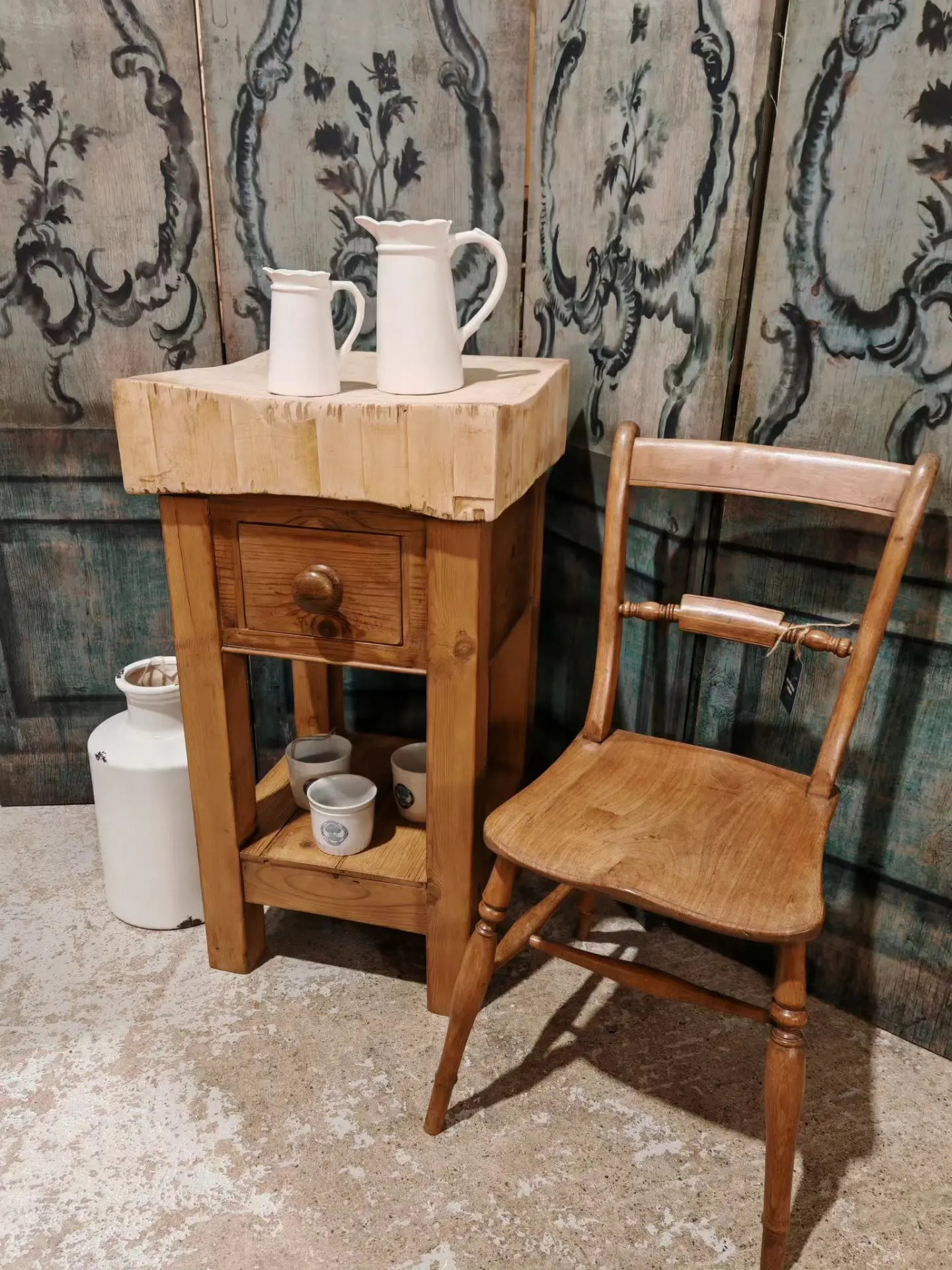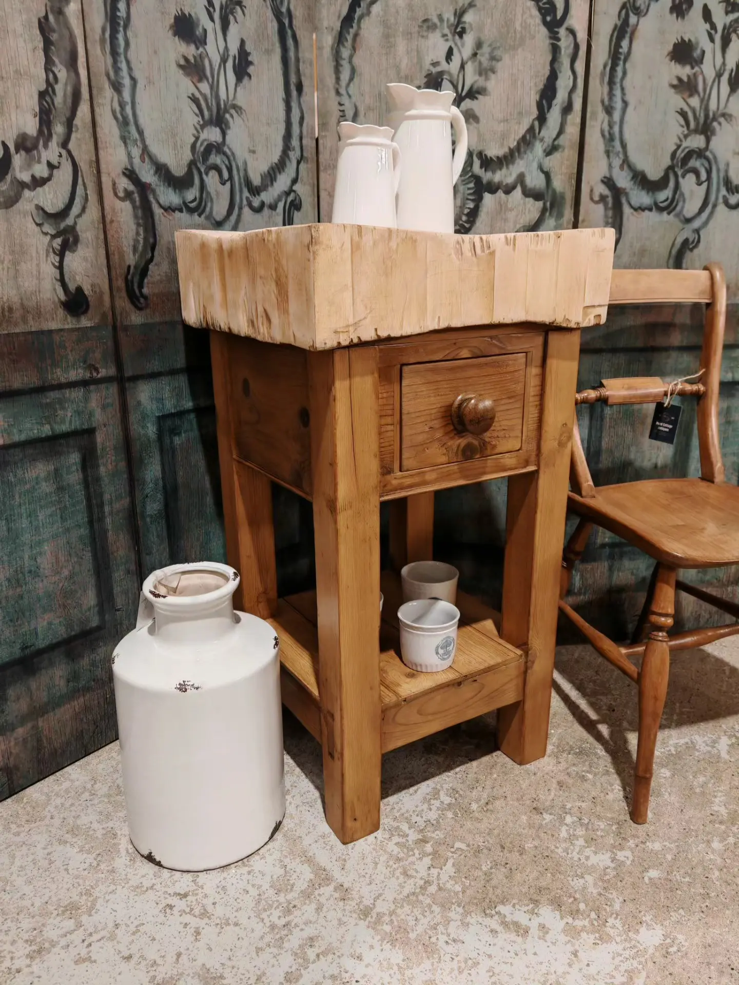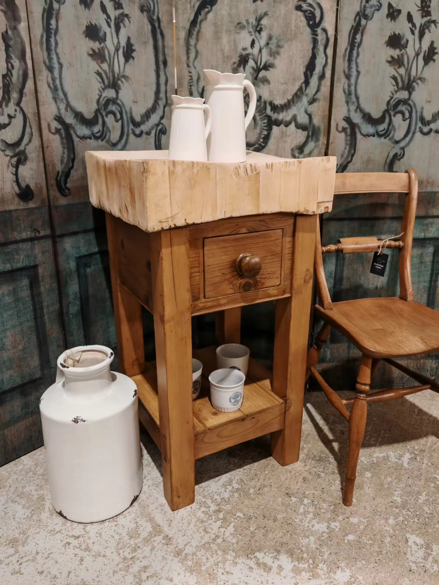 The block has come back from a buying trip in France and we have made the base up from old pine in the original style.
