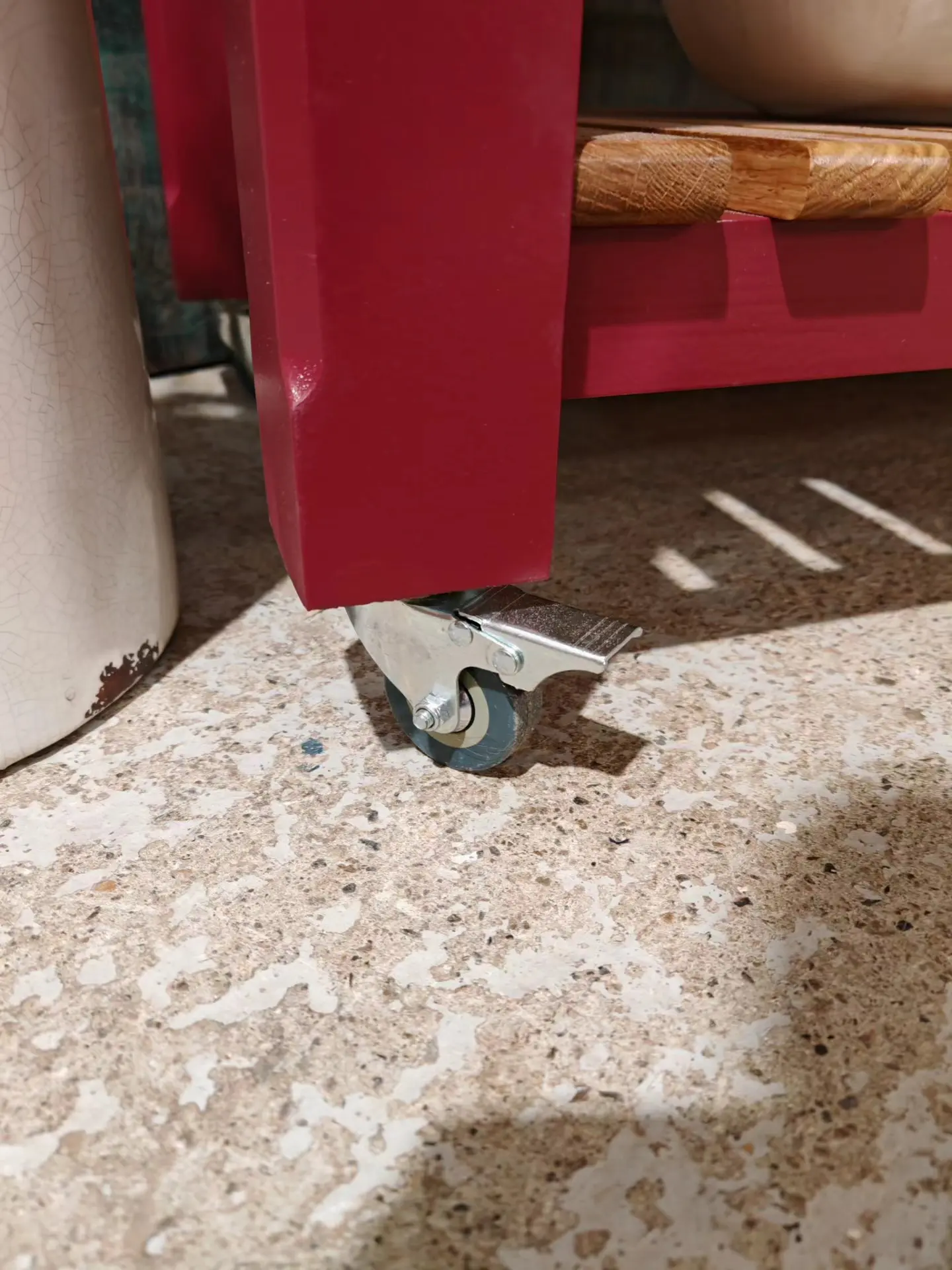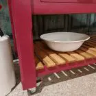 4×2 kitchen island in deep heritage red – oak top