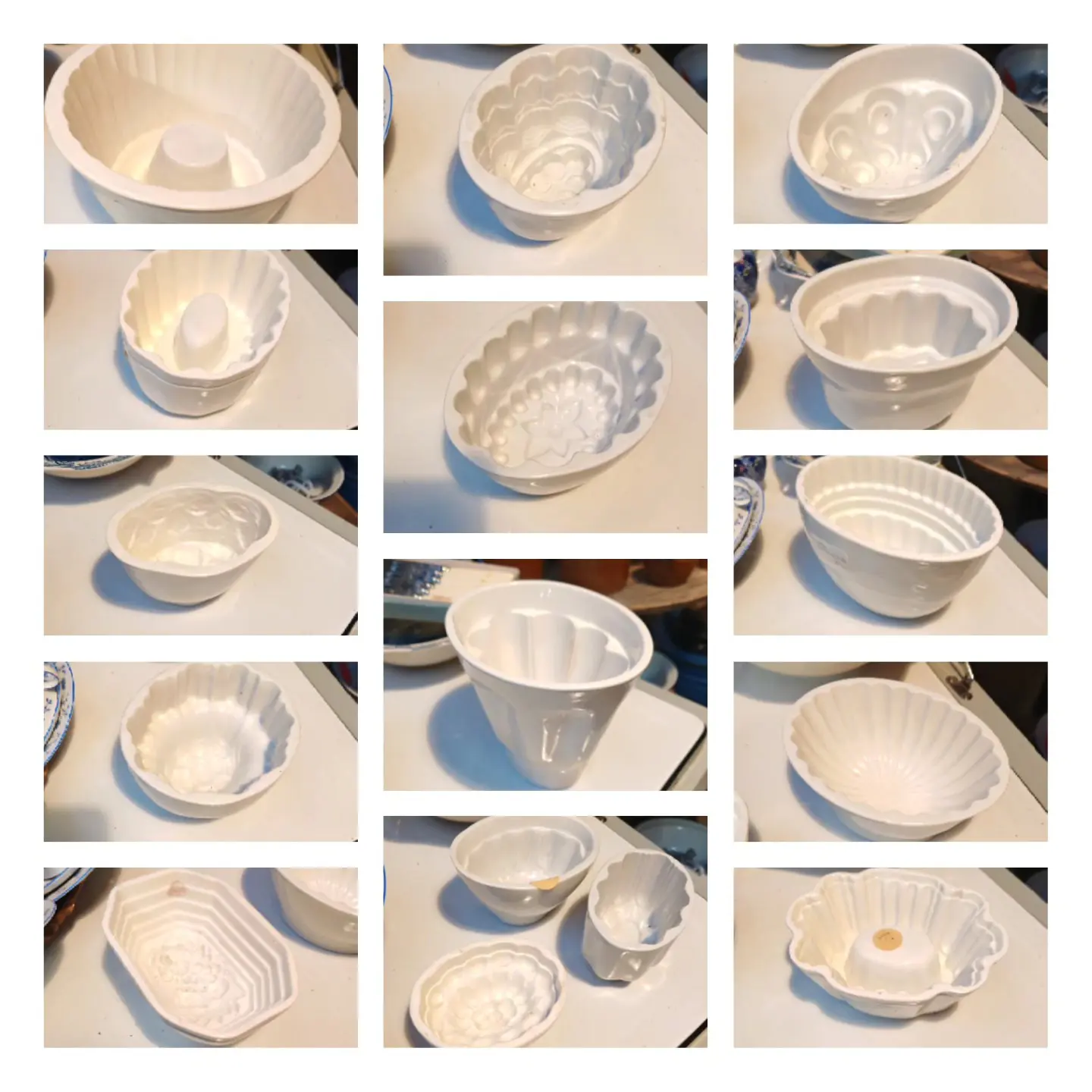 Stillington Vintage Emporium … includes items like these beautiful white jelly moulds.