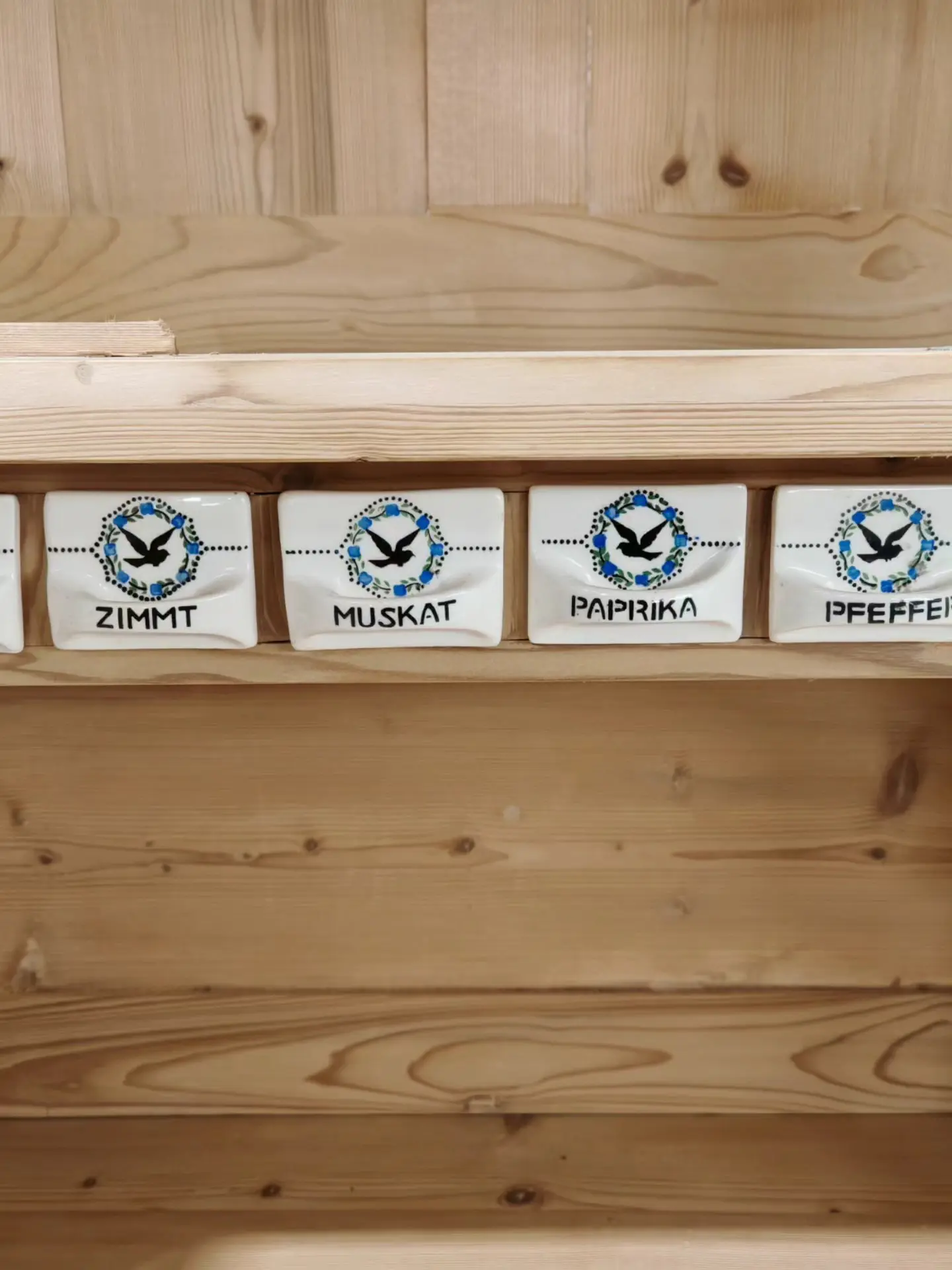 With 12 porcelain spice drawers in the rack and also good storage in the base this still has its original pull out serving shelf.
