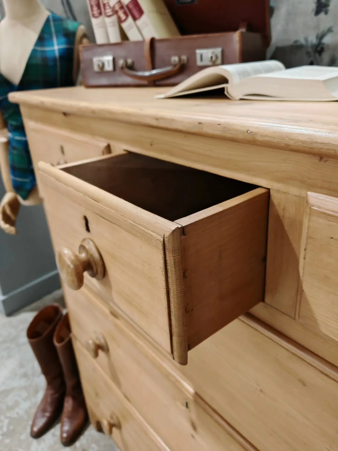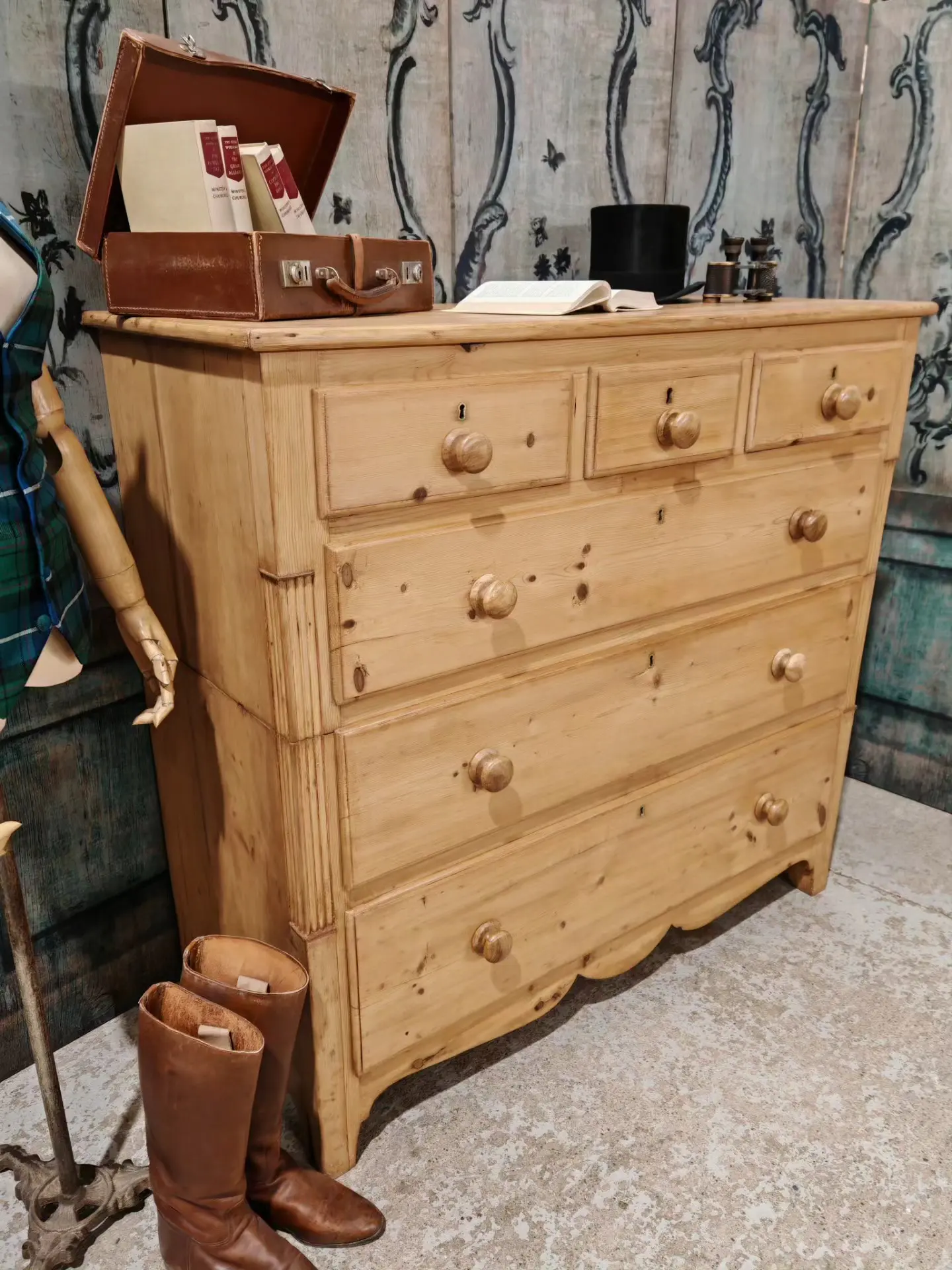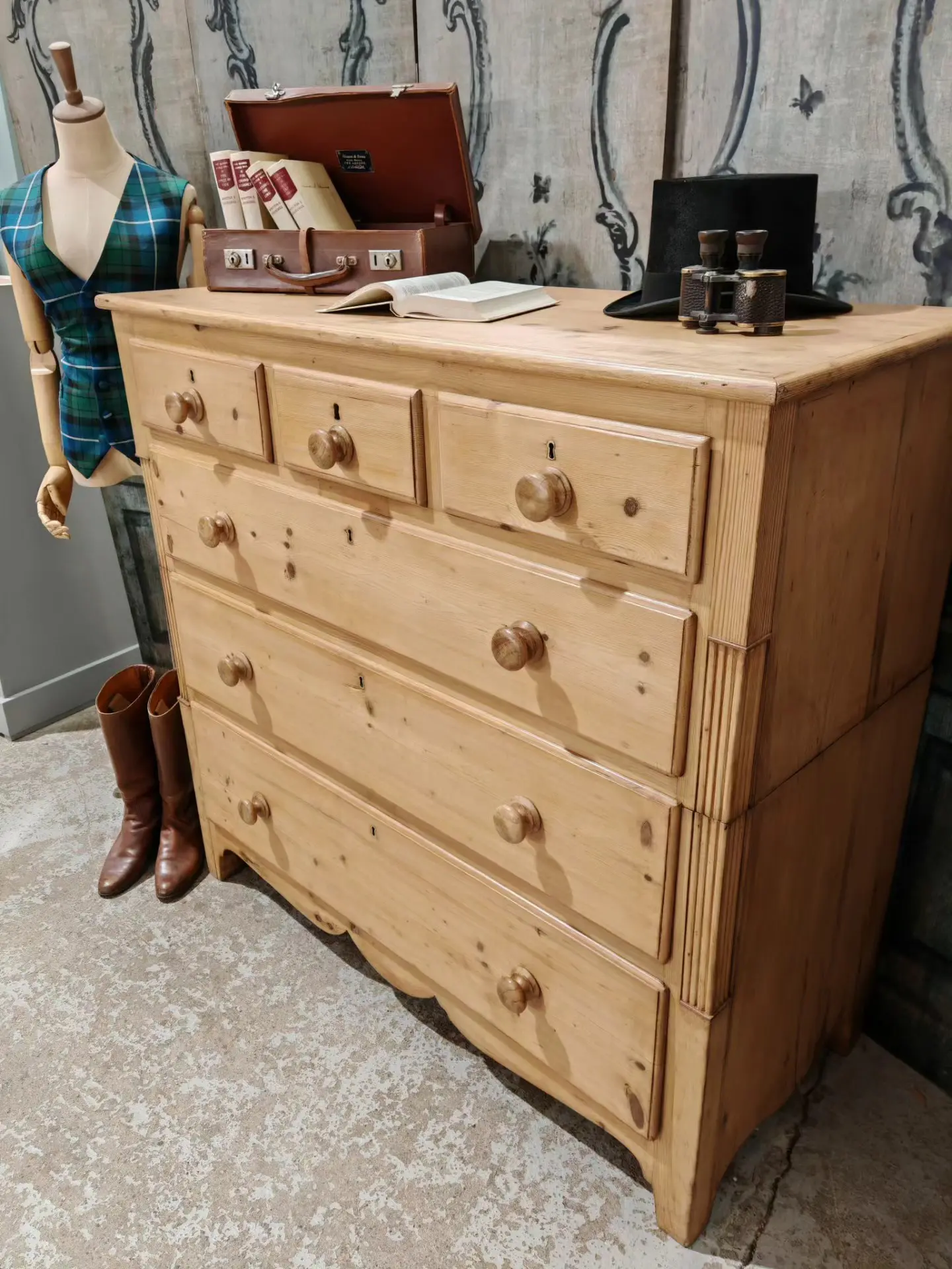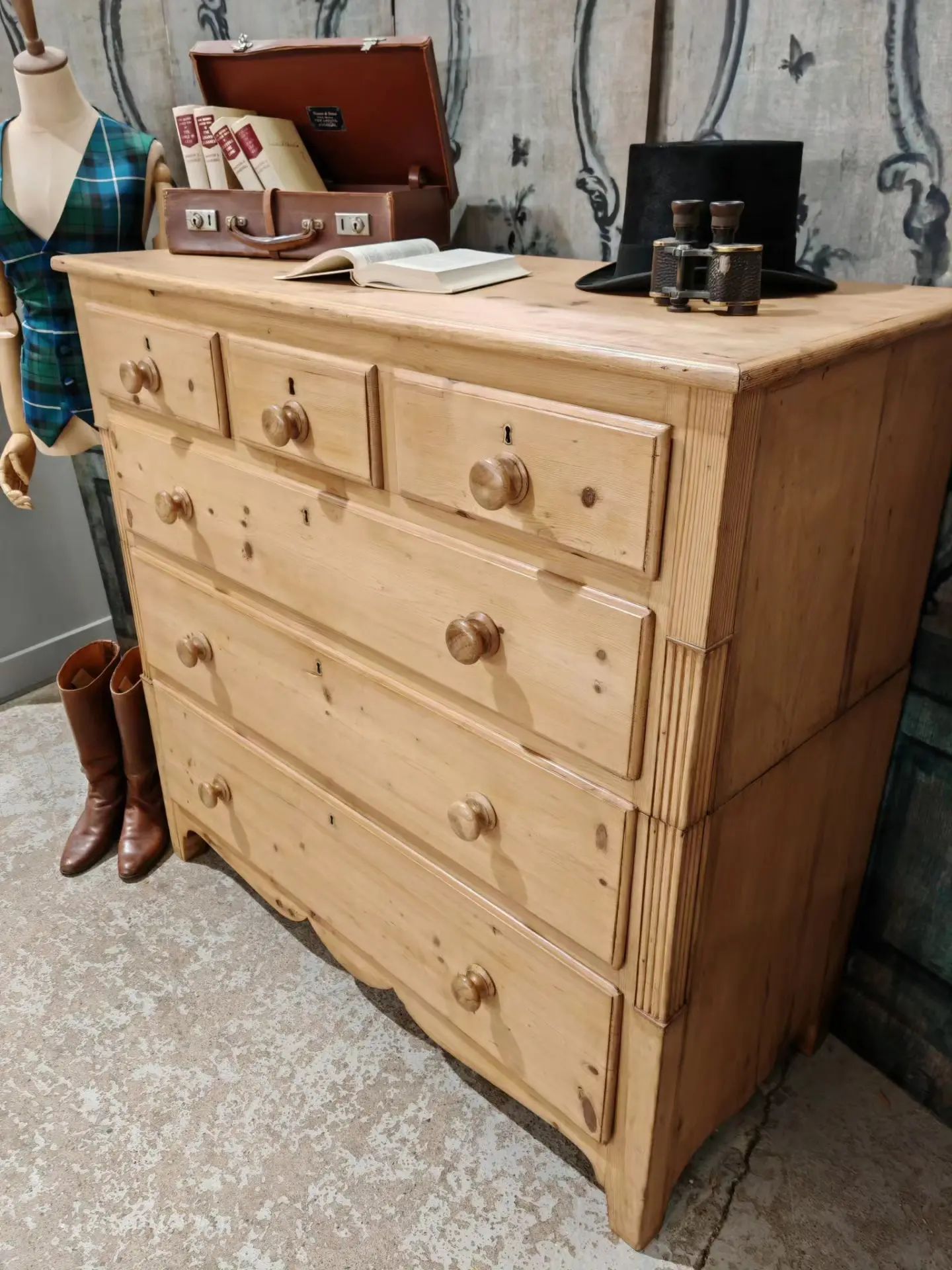 Bring warmth and character to your home with this beautiful Victorian pine chest of drawers. Crafted from solid pine, it showcases the natural grain and knots that give antique pieces their unmistakable charm.