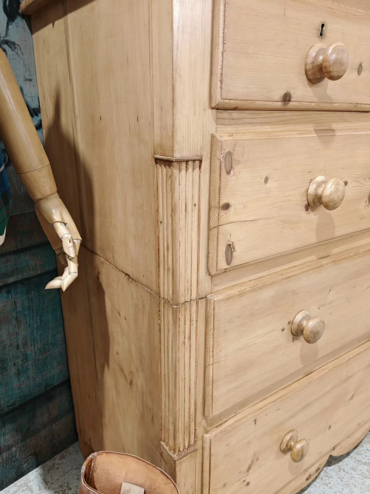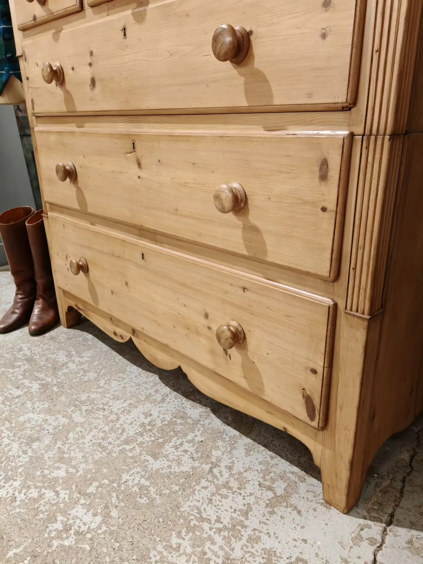 Original turned wooden knobs and keyholes add authentic period detail, while the softly scalloped base, reeded front corners and clean lines reflect classic Victorian craftsmanship.