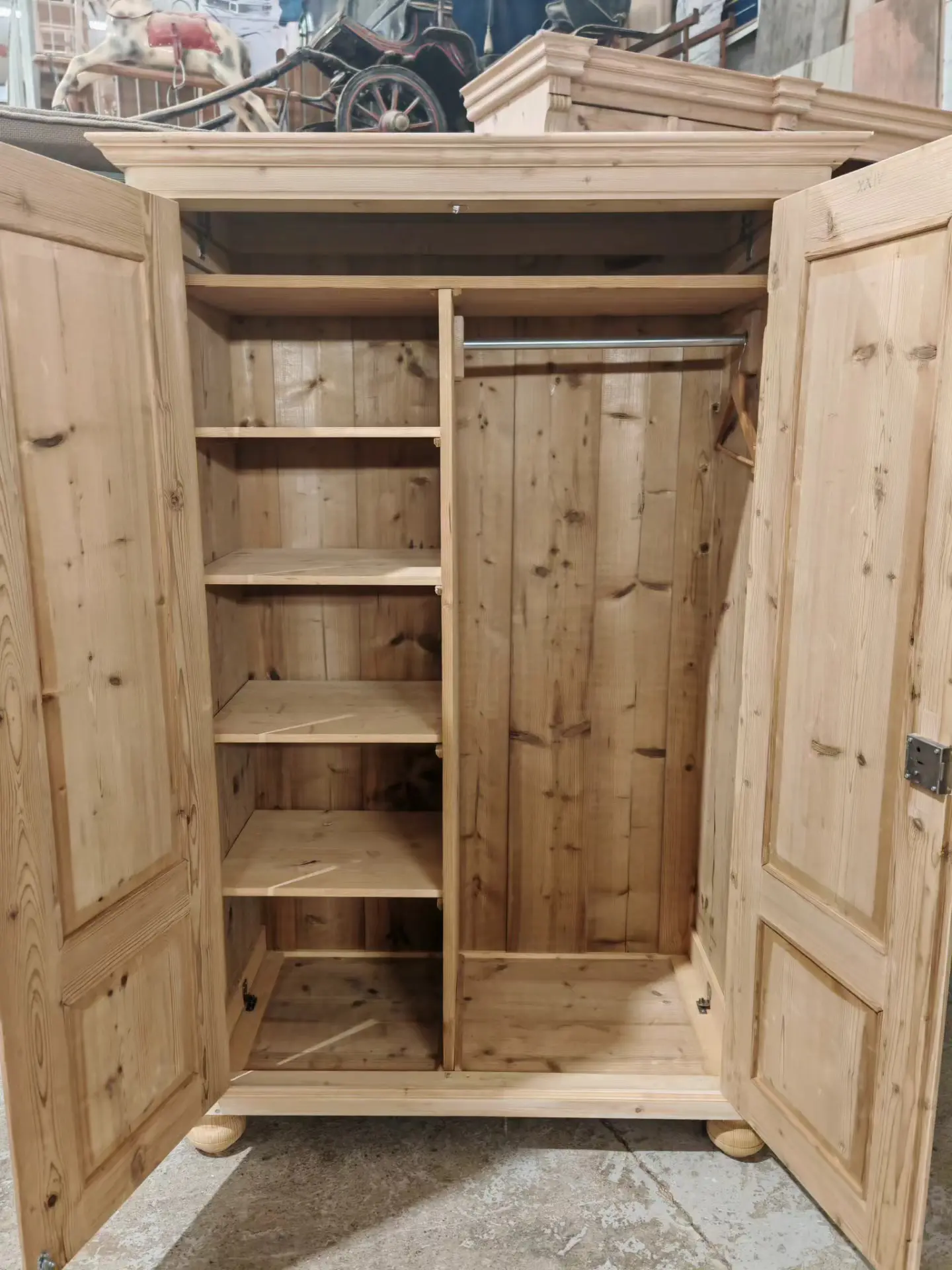 We have a very good antique pine Dutch wardrobe available with 4 panels on the front doors.