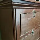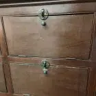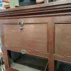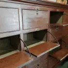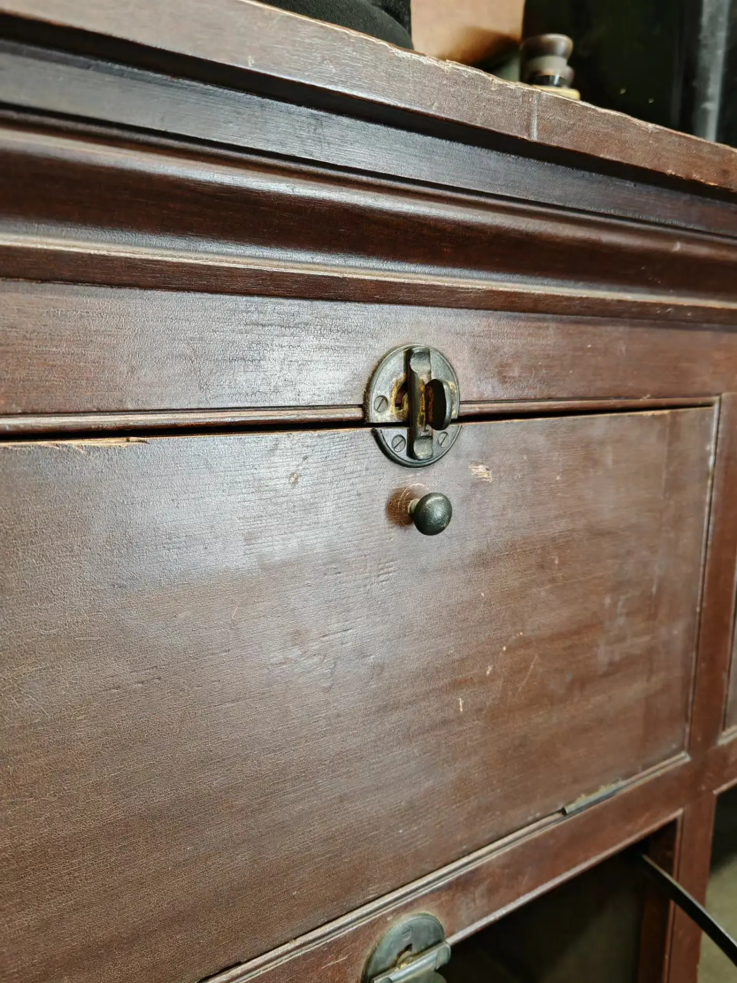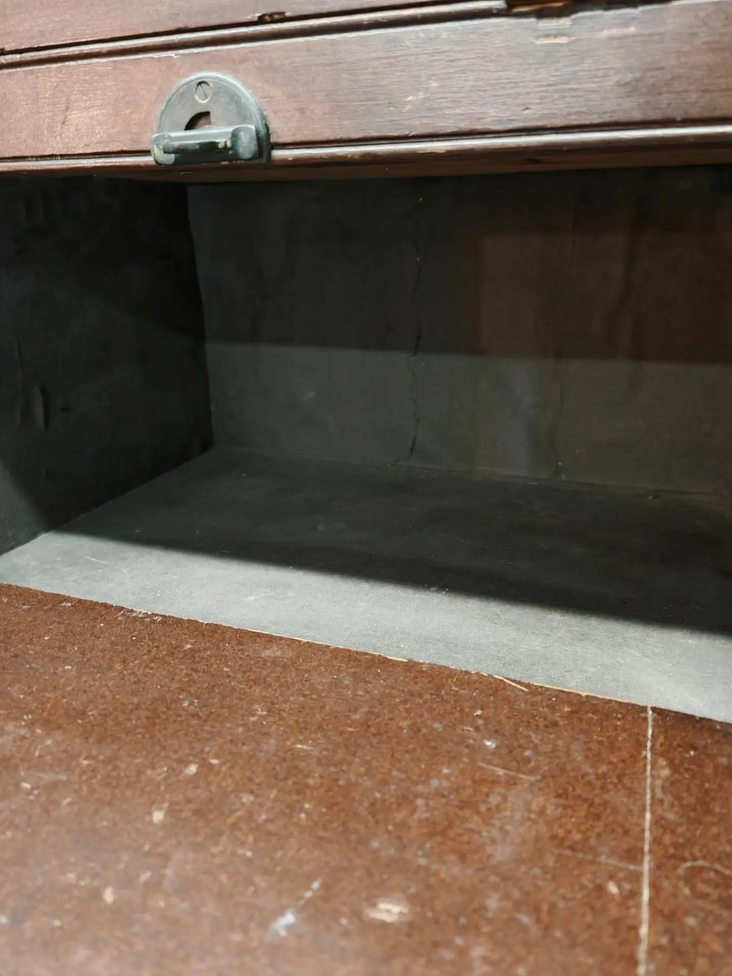It’s got all its original cupboard turns and retains it’s original blue lining paper in each section.