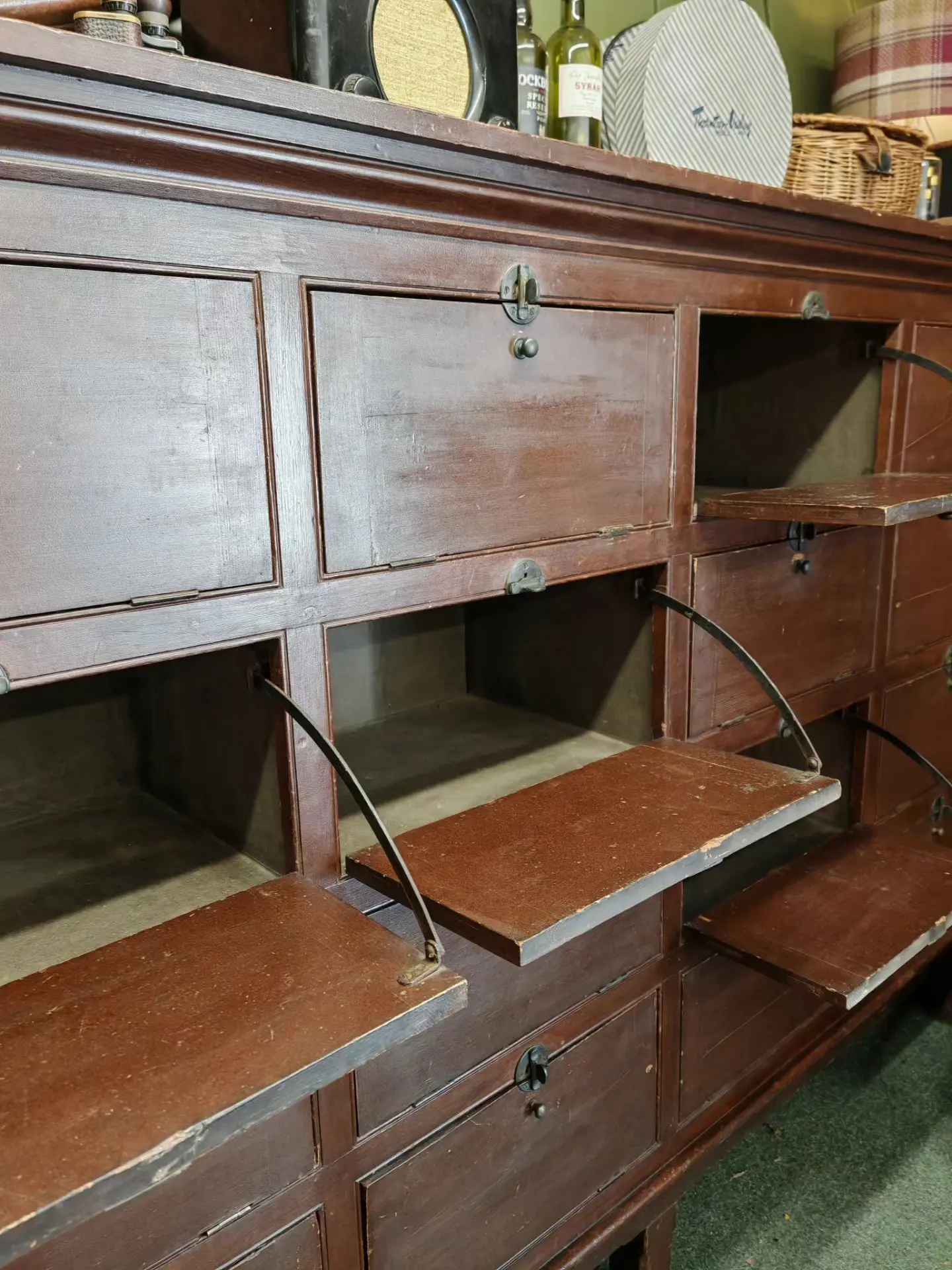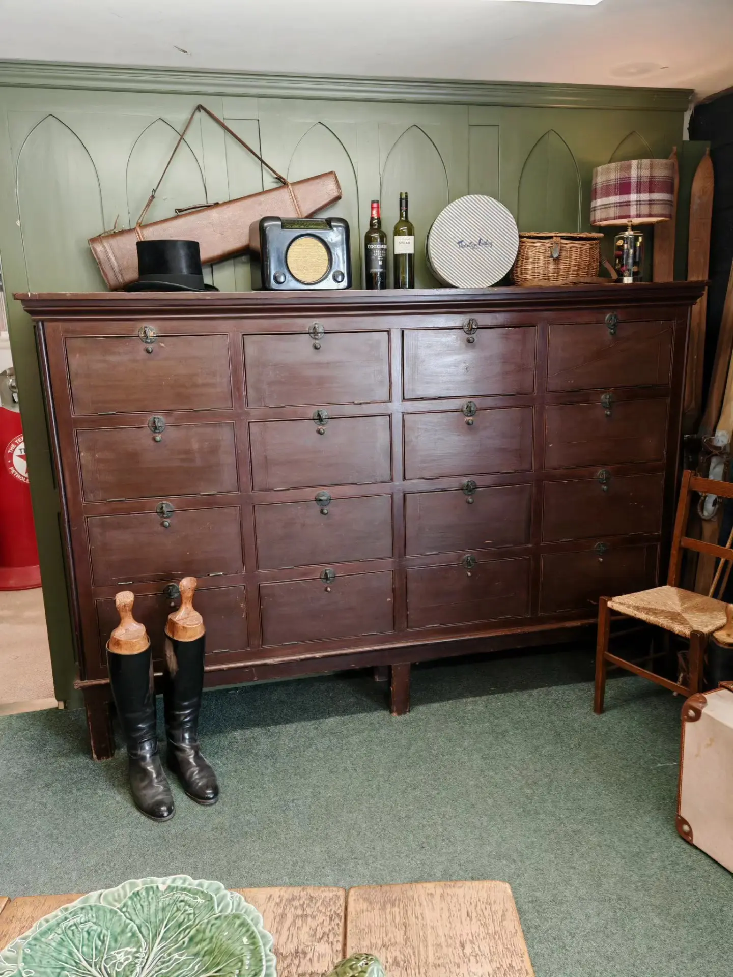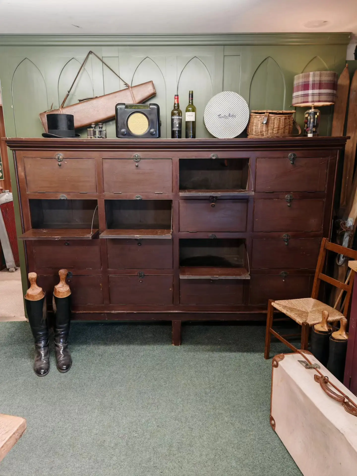 We have this totally amazing early Victorian pine Barristers Wig locker unit that’s in its original scumble paint with years of patina history.