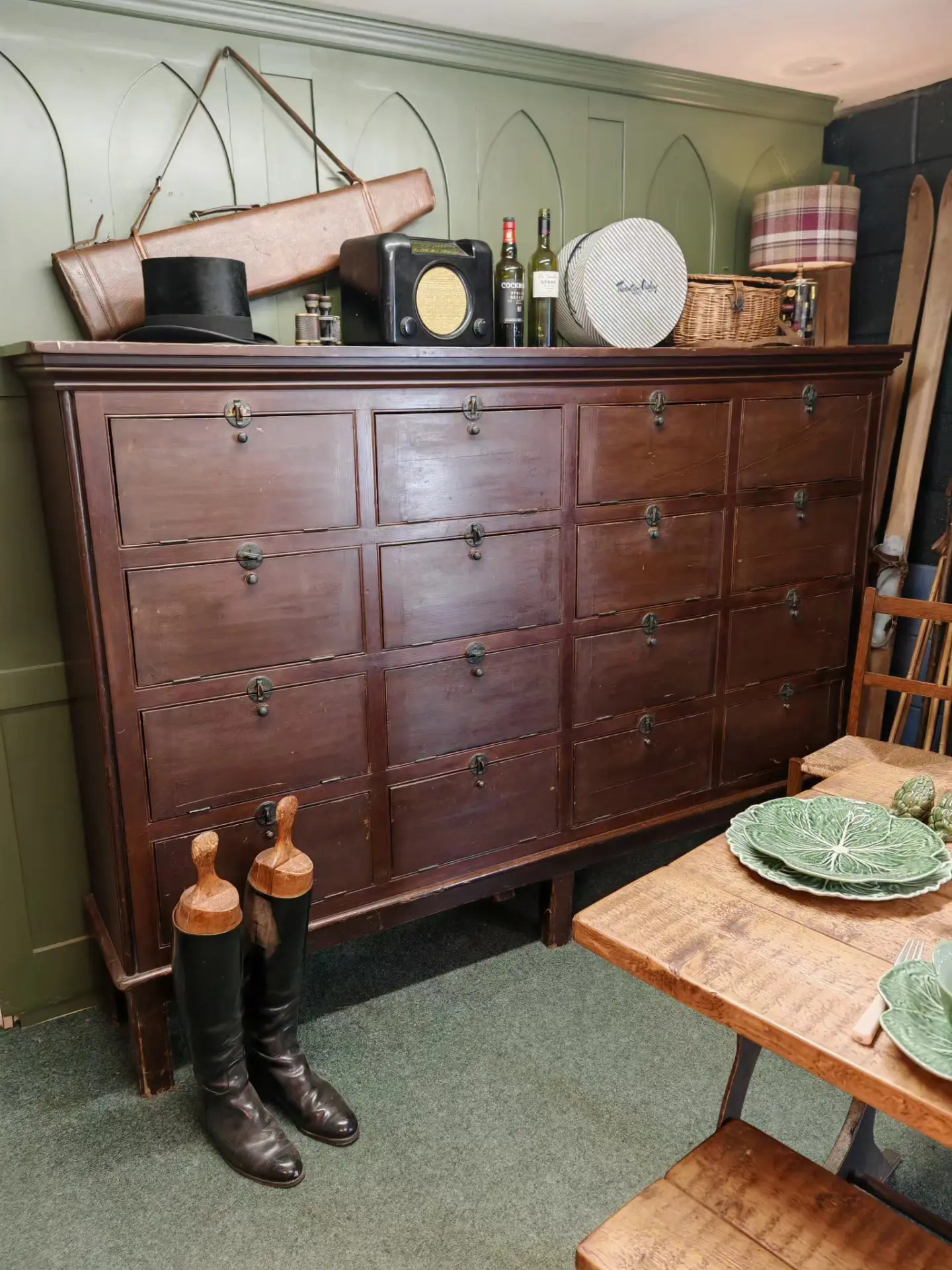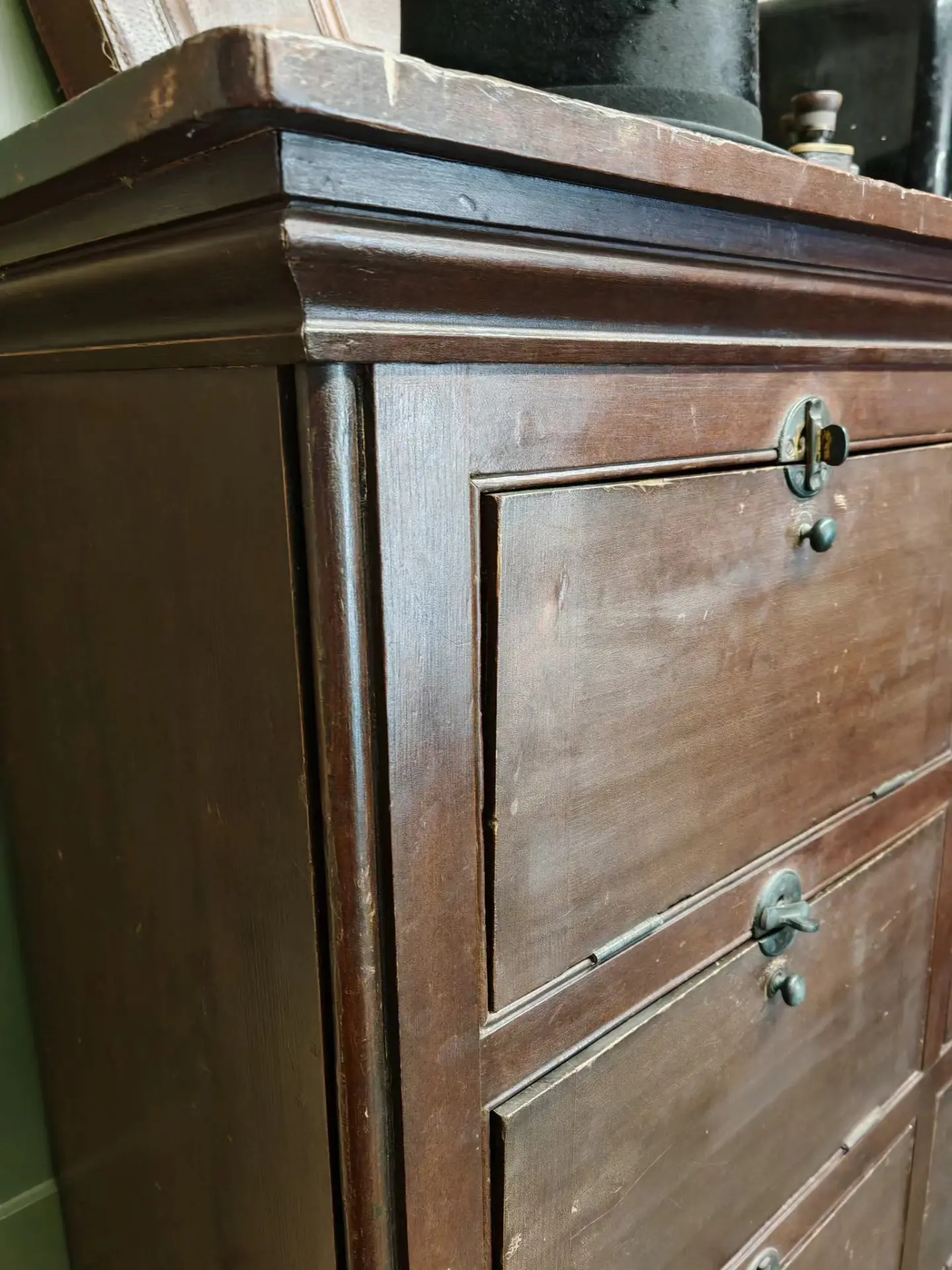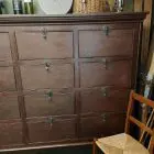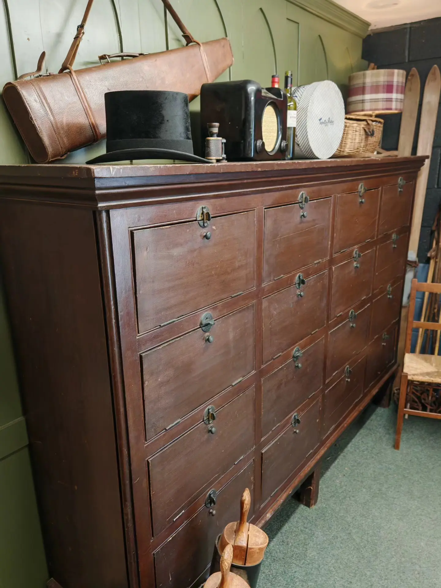 We have this totally amazing early Victorian pine Barristers Wig locker unit that’s in its original scumble paint with years of patina history.