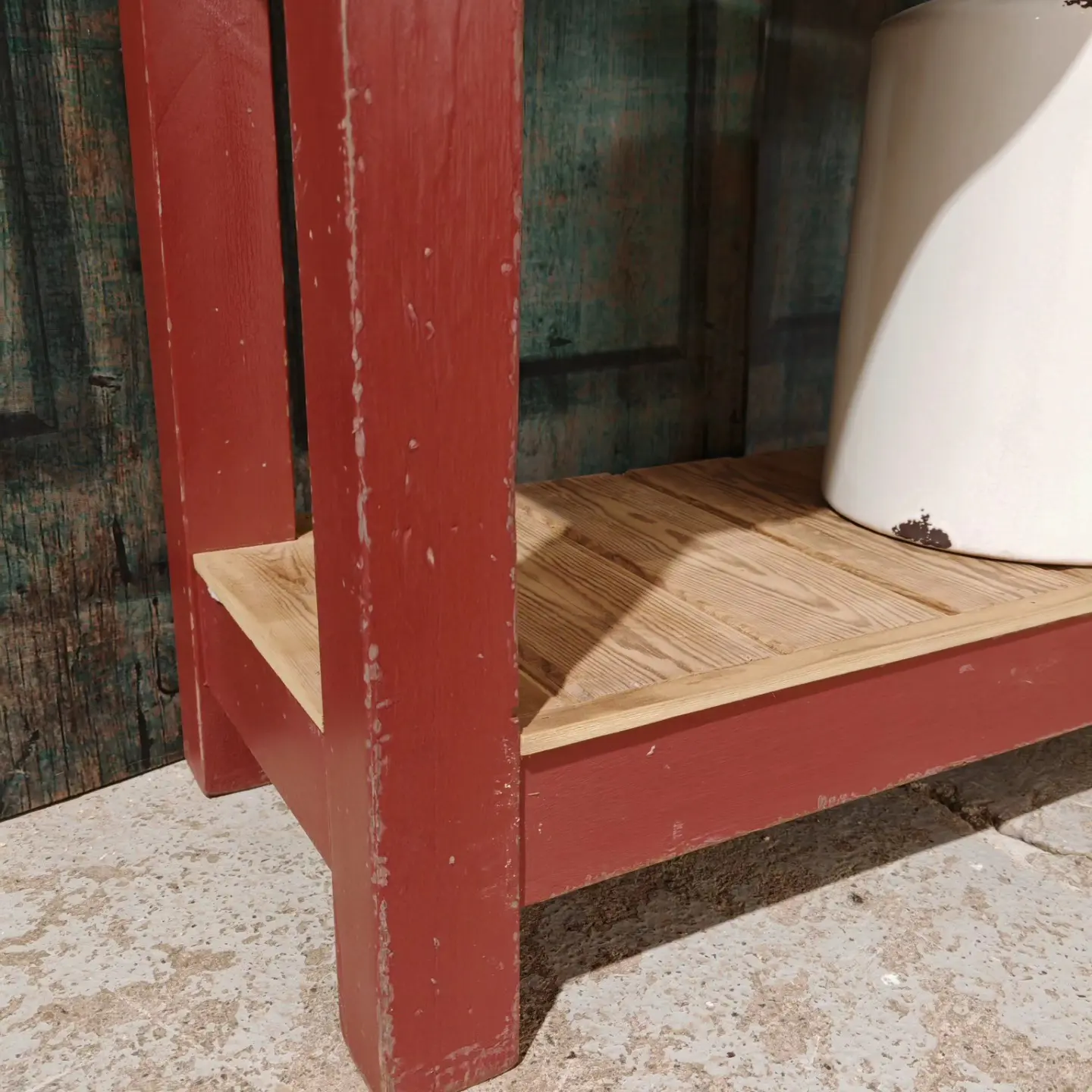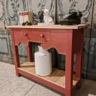 EATING ROOM RED PAINTED OLD WOOD CONSOLE TABLE