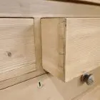 With a 2/3 layout and sitting handsomely on its original bun turned feet it is a good chest and great for bedroom in a nice waxed pine colour.
