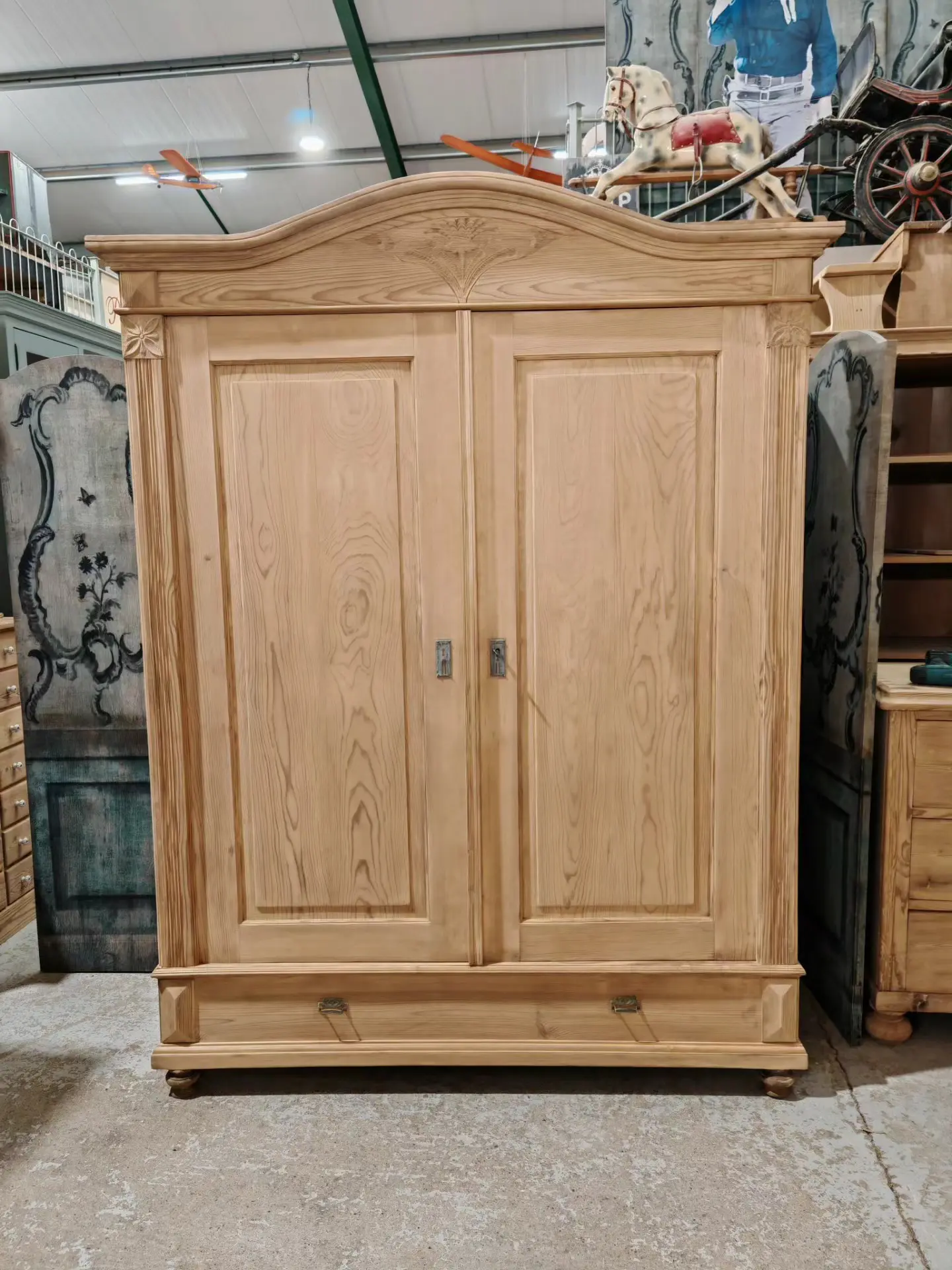 This German wardrobe has just arrived via our last delivery from Holland and is a belter for a big two door Victorian pine item.