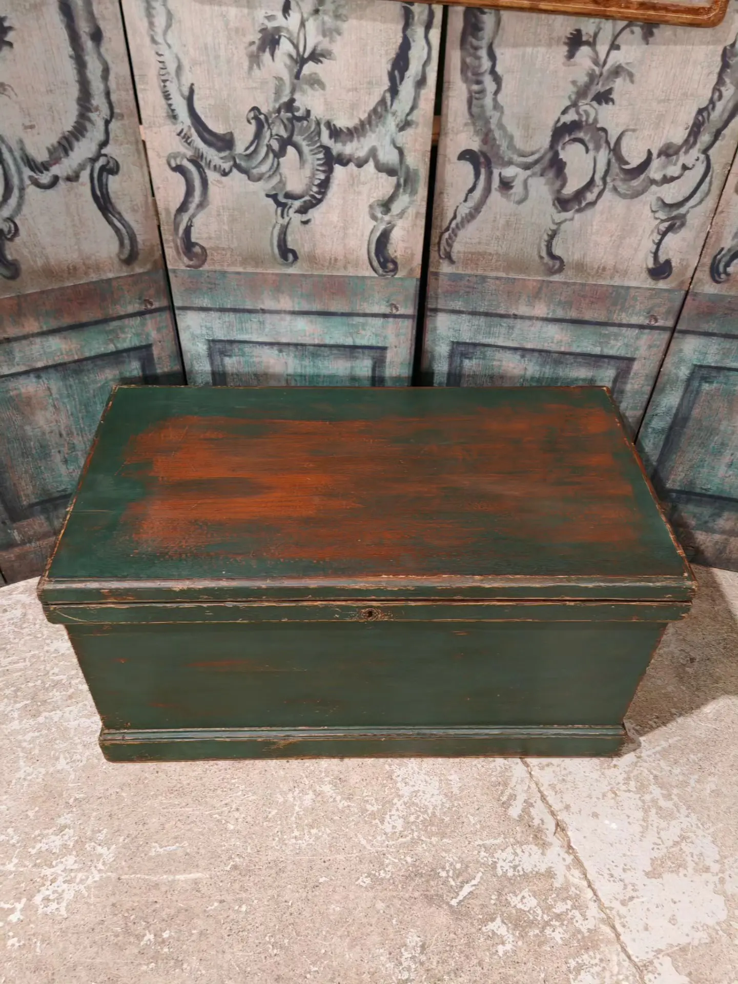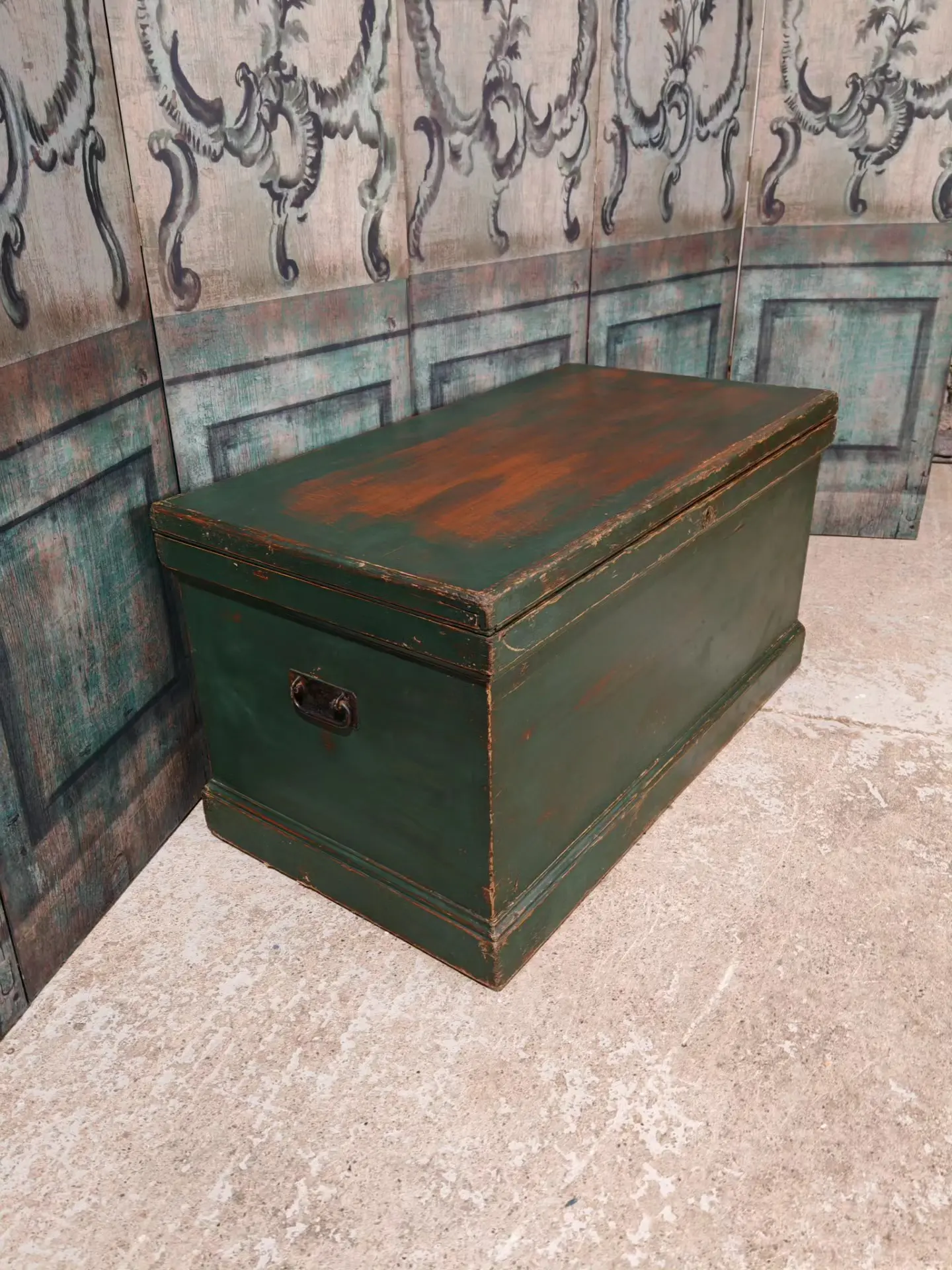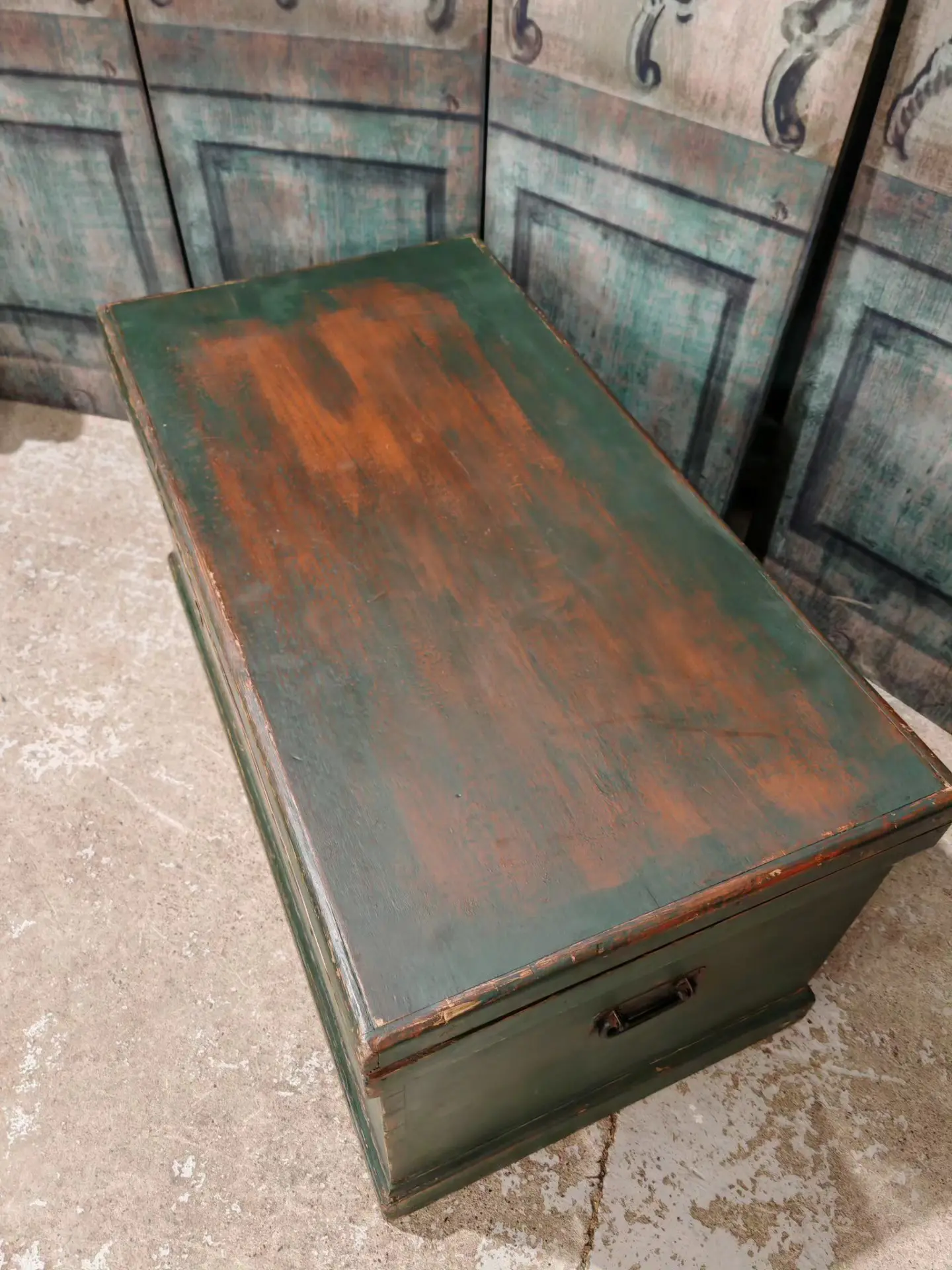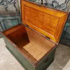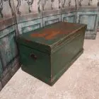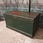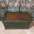 GREEN PAINTED AND DISTRESSED BLANKET BOX