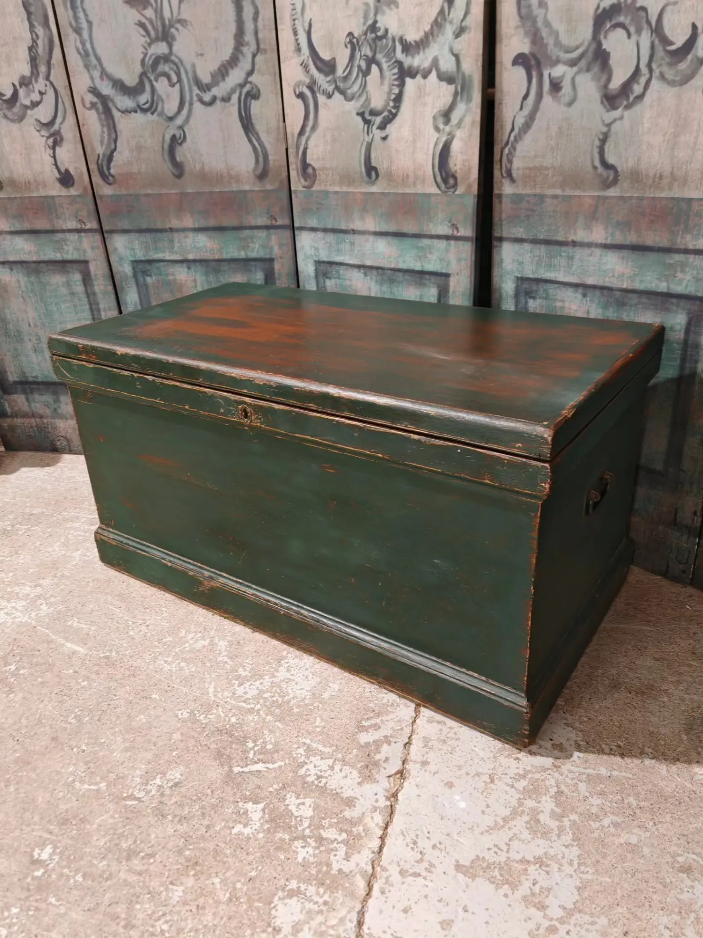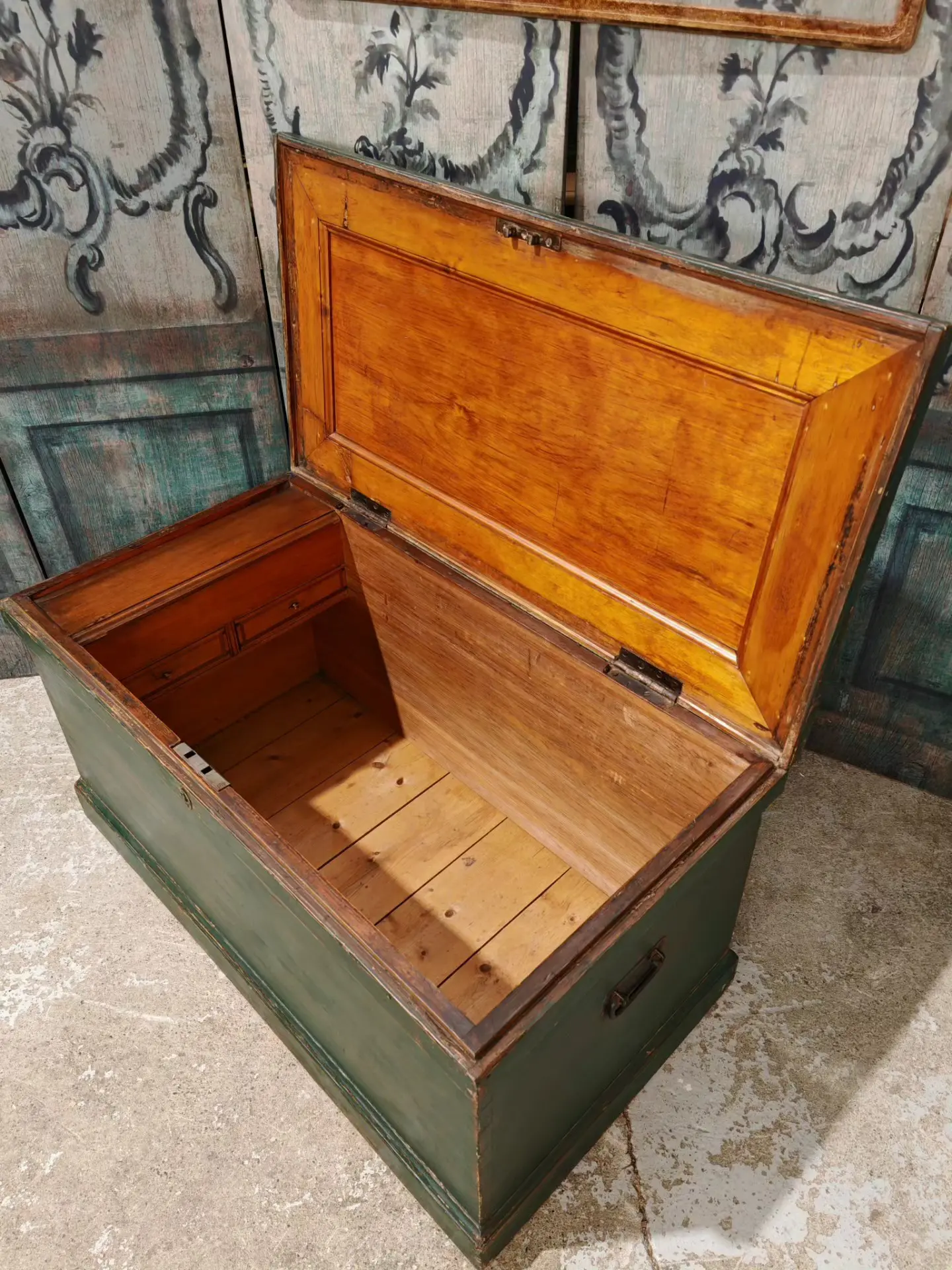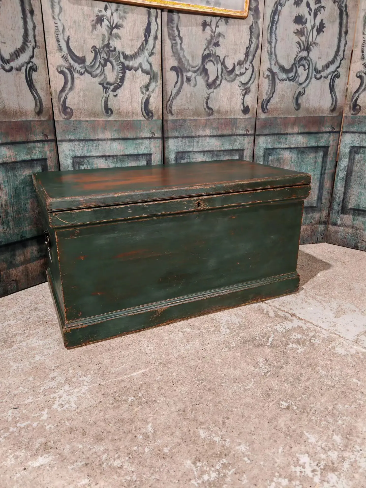 GREEN PAINTED AND DISTRESSED BLANKET BOX