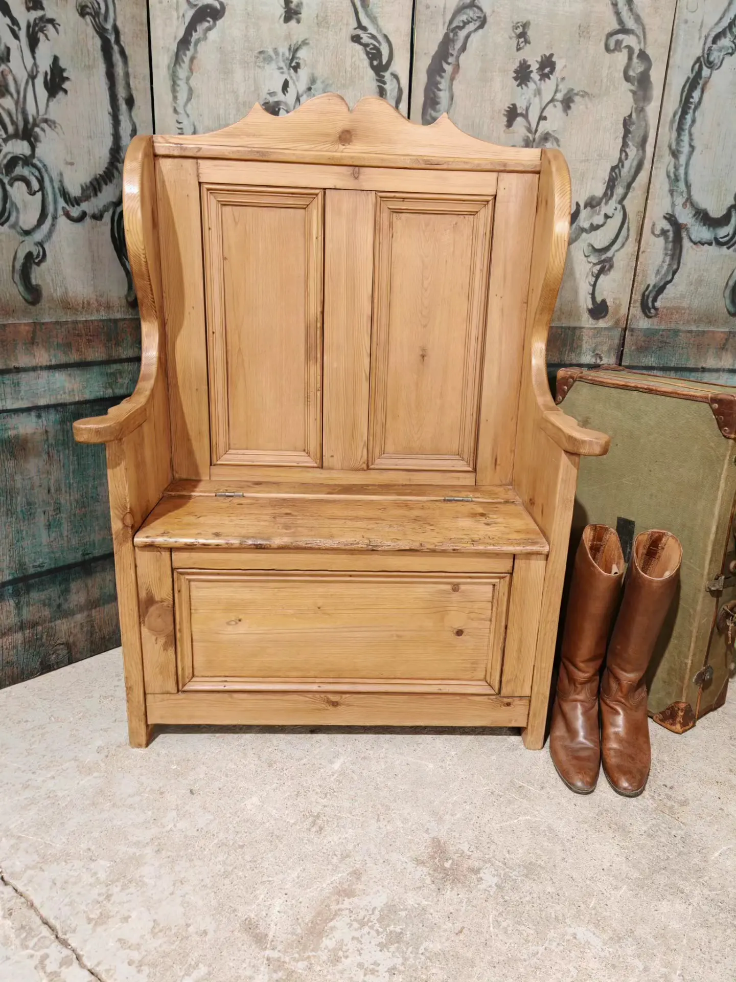 We are pleased to offer this high backed reclaimed pine single seater settle.