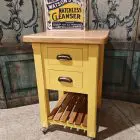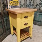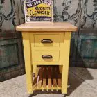 Featuring two drawers and vintage-style cup handles, it offers practical storage for utensils and everyday essentials.
