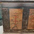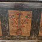 Features hand-painted folk art decoration, often with floral or foliate motifs and a distinctive colour scheme.