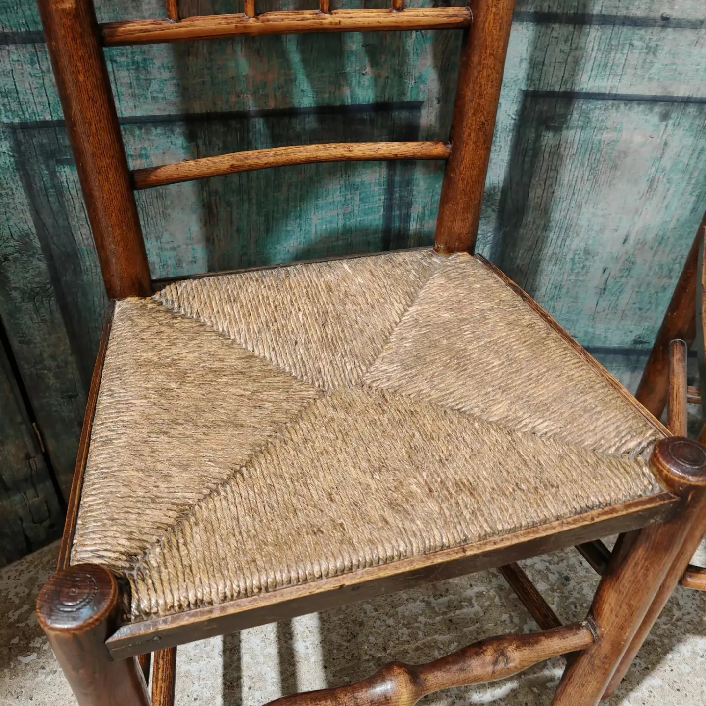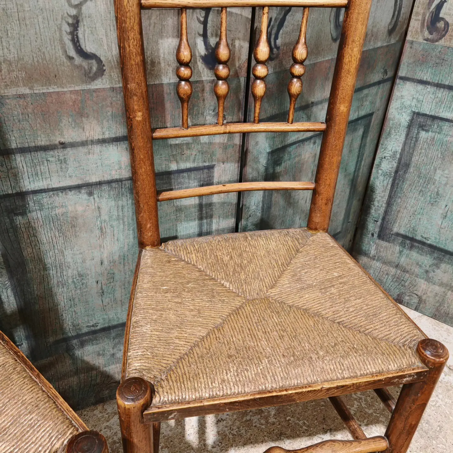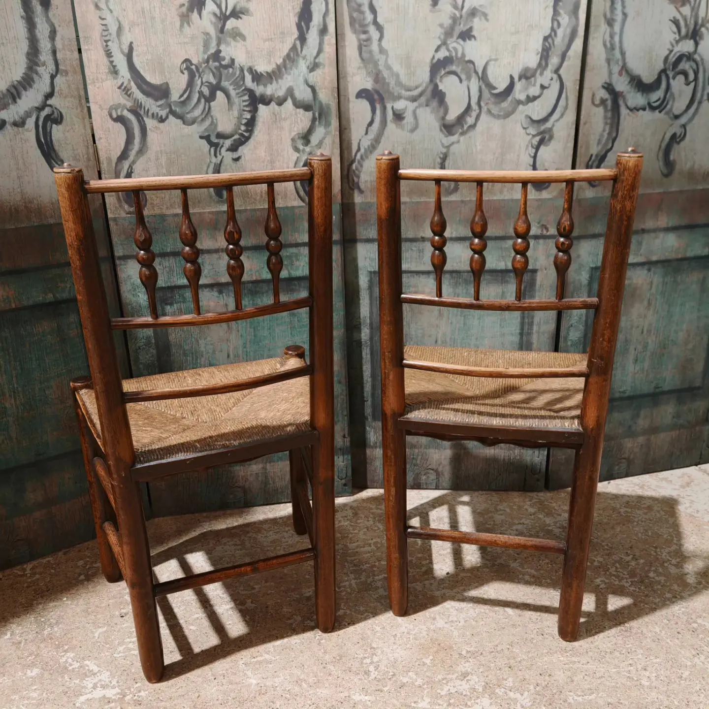 The rush seat is in excellent condition on both and the bobbin style back is just gorgeous.