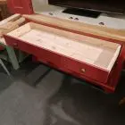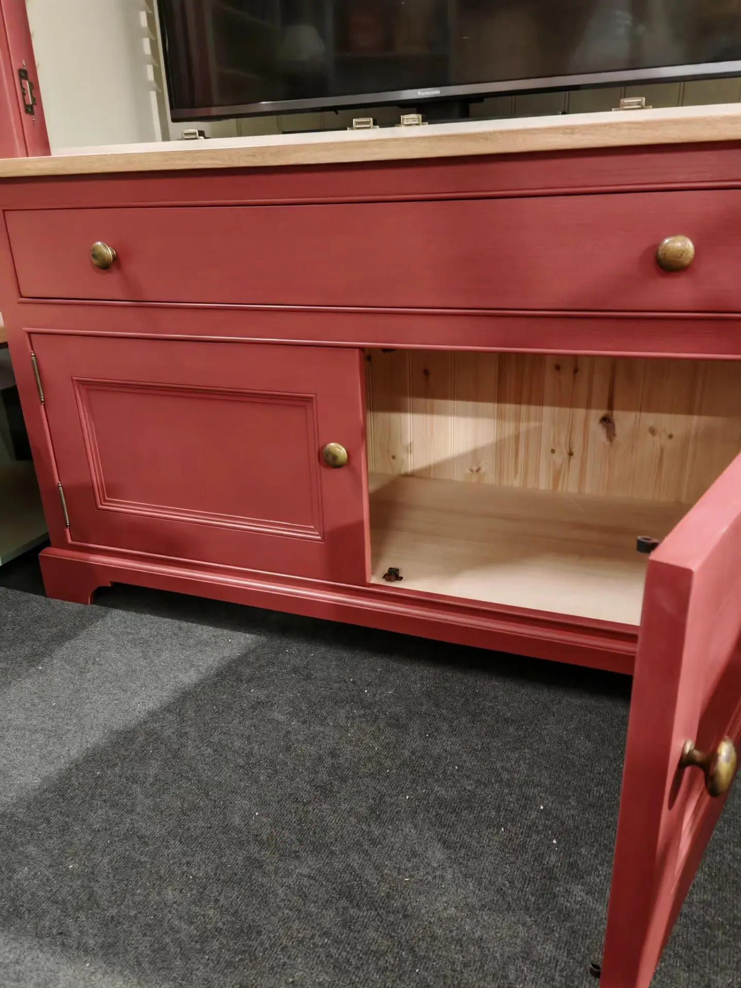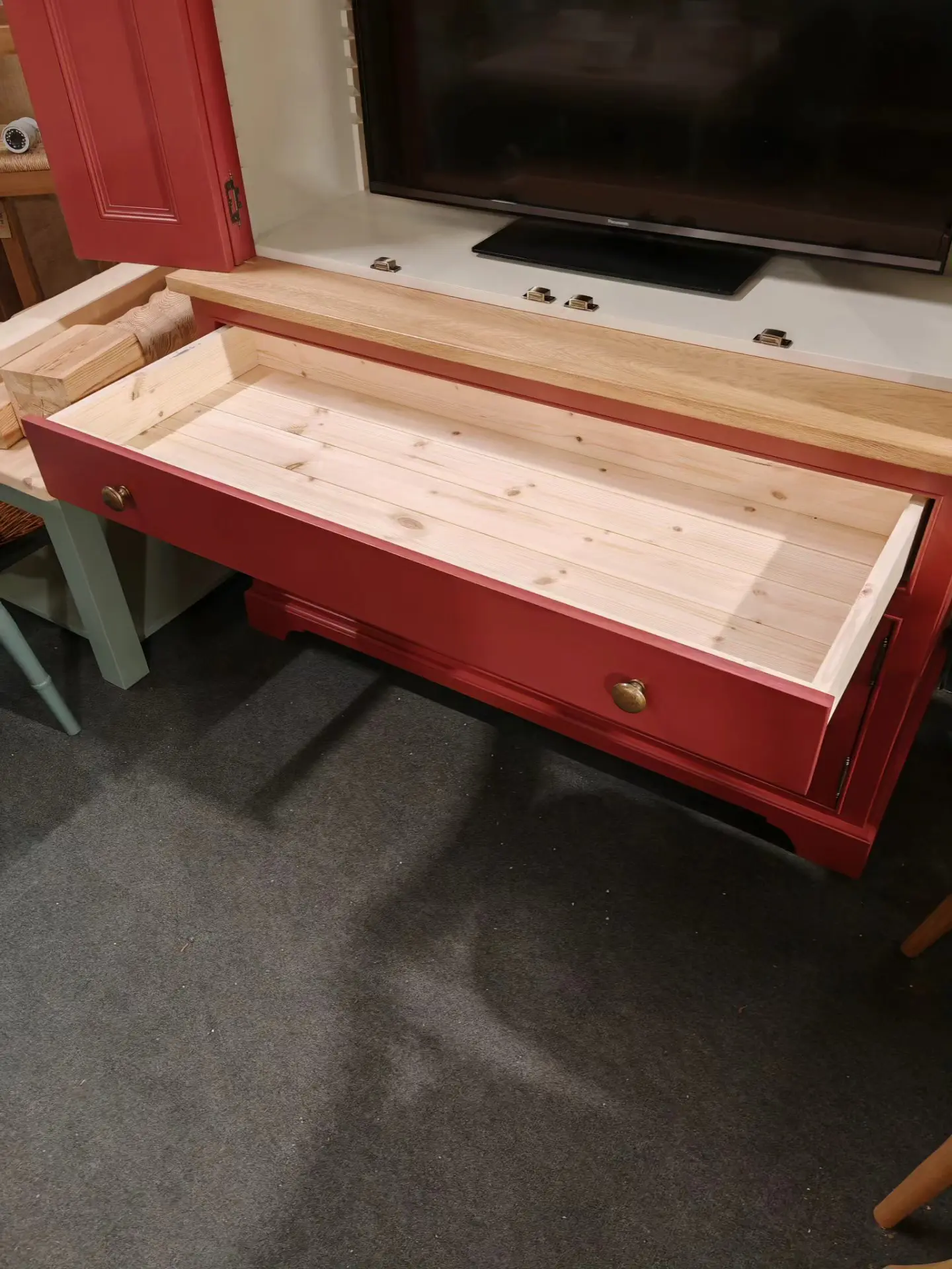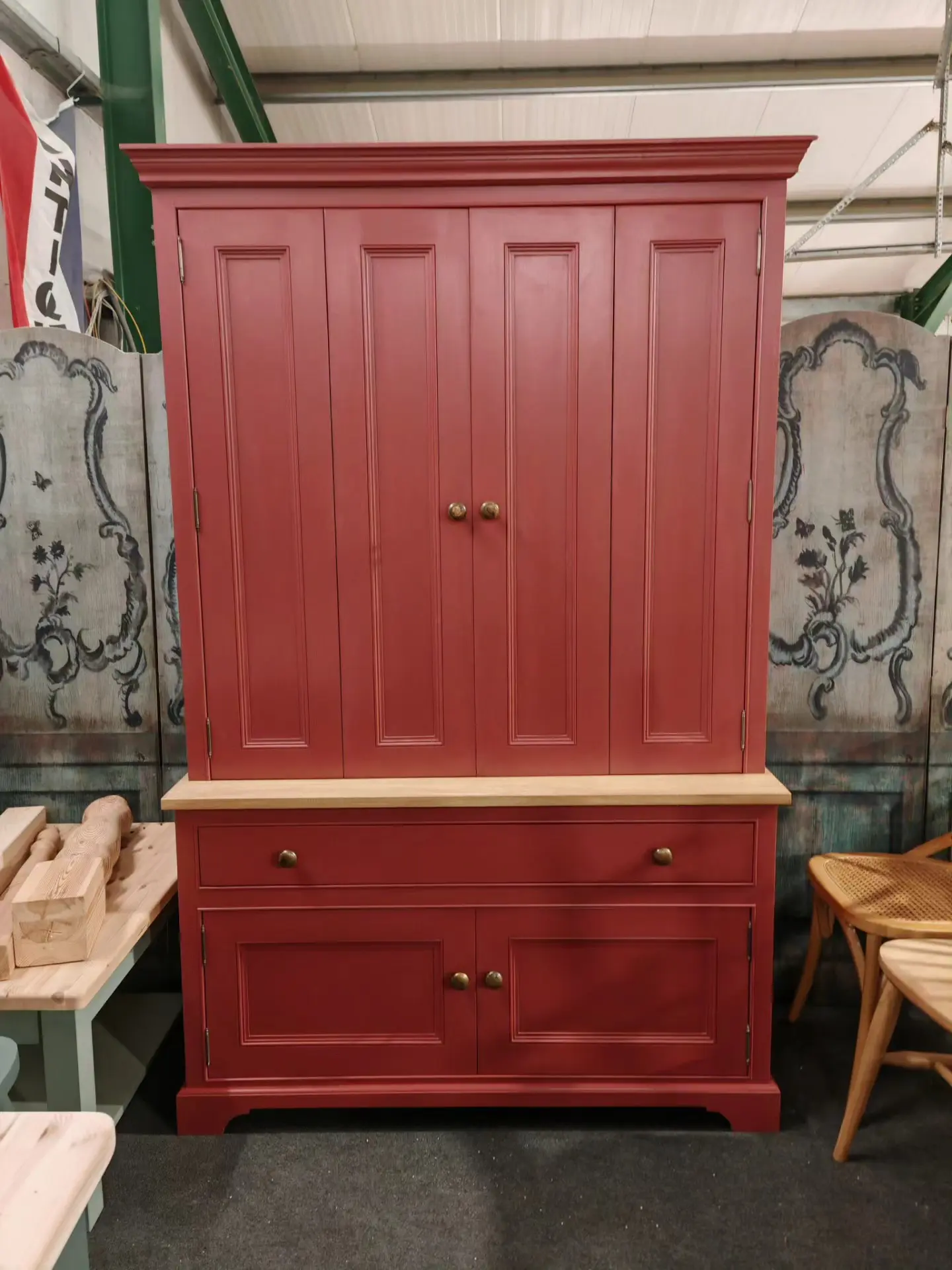 This has shaped cornice, step routered and shaped plinth, broken ogee moulding in the doors, cot bead frame and soft close drawer.