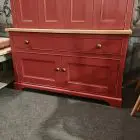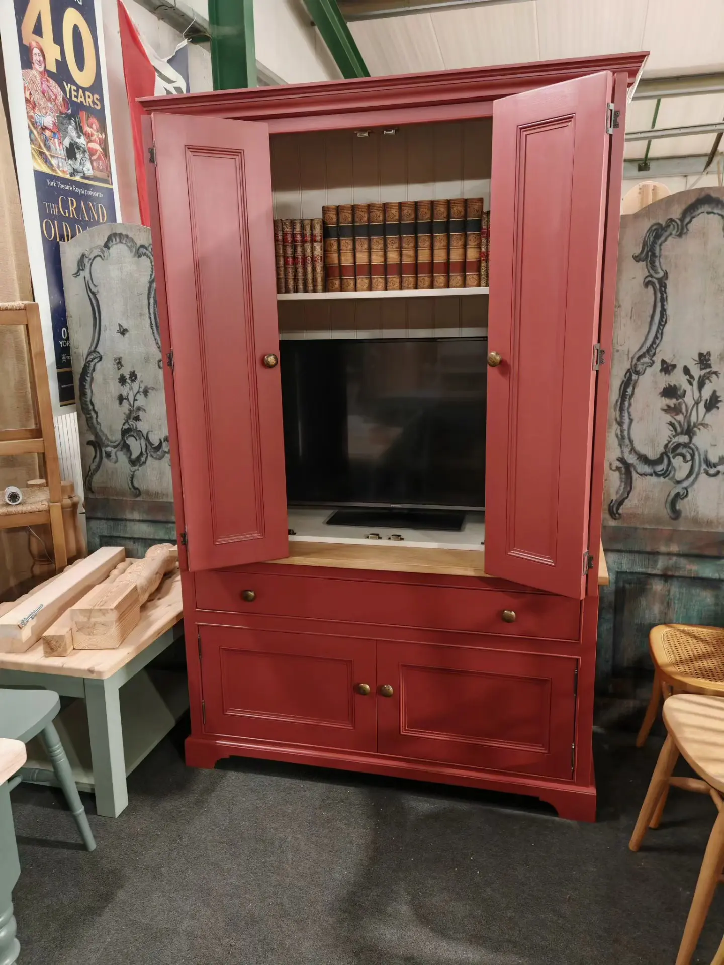 Looks stunning all painted in Farrow and Ball’s Eating Room Red with Old White inside.