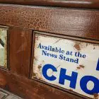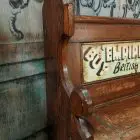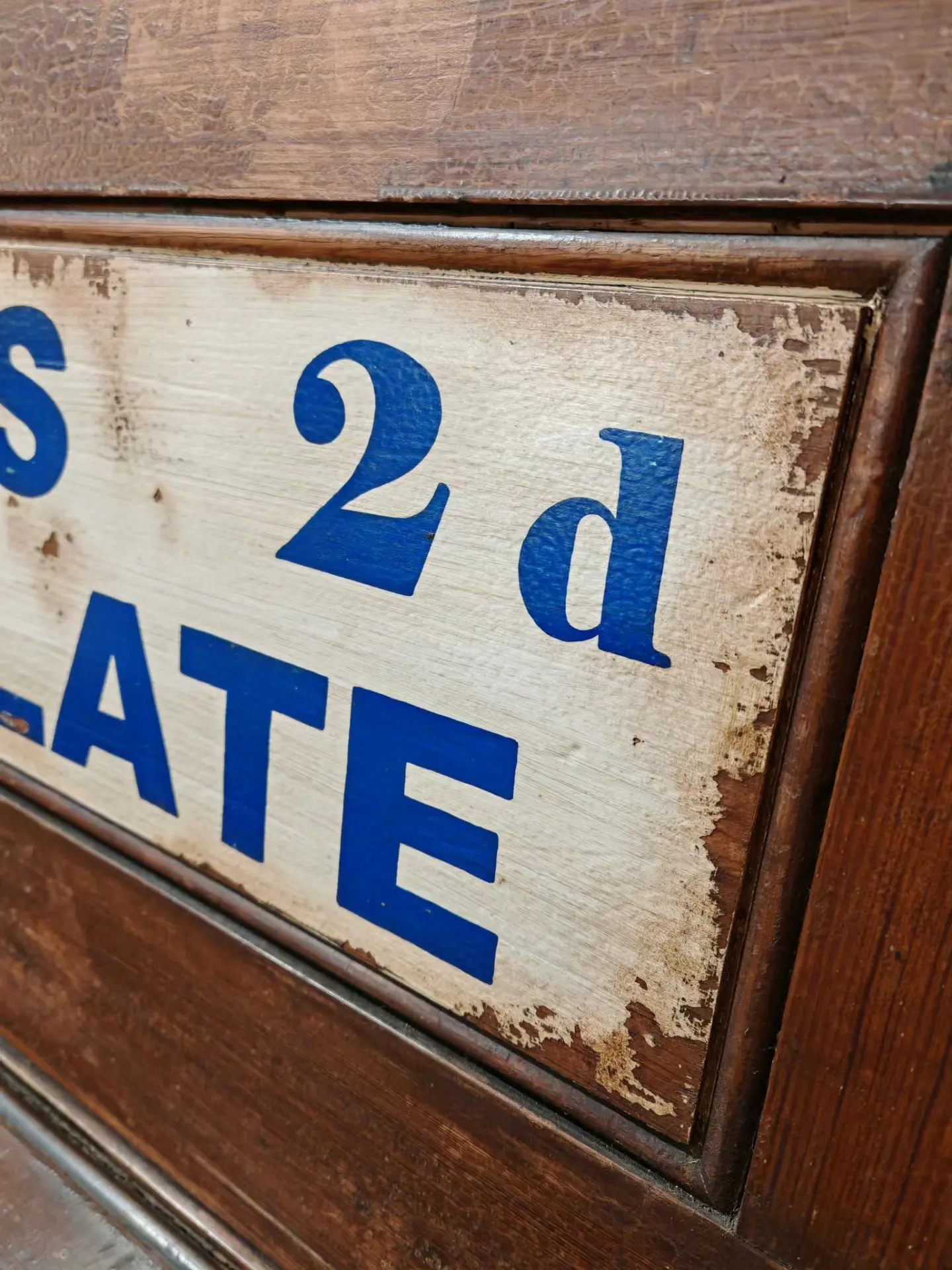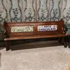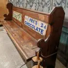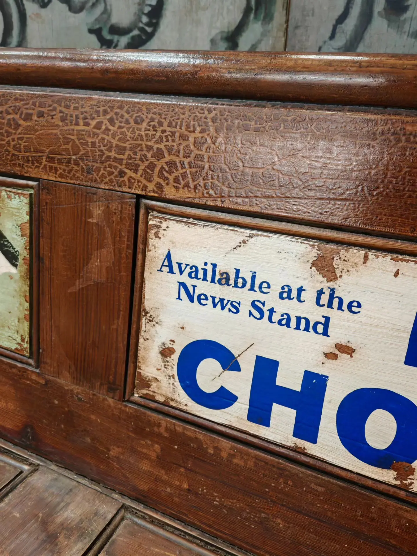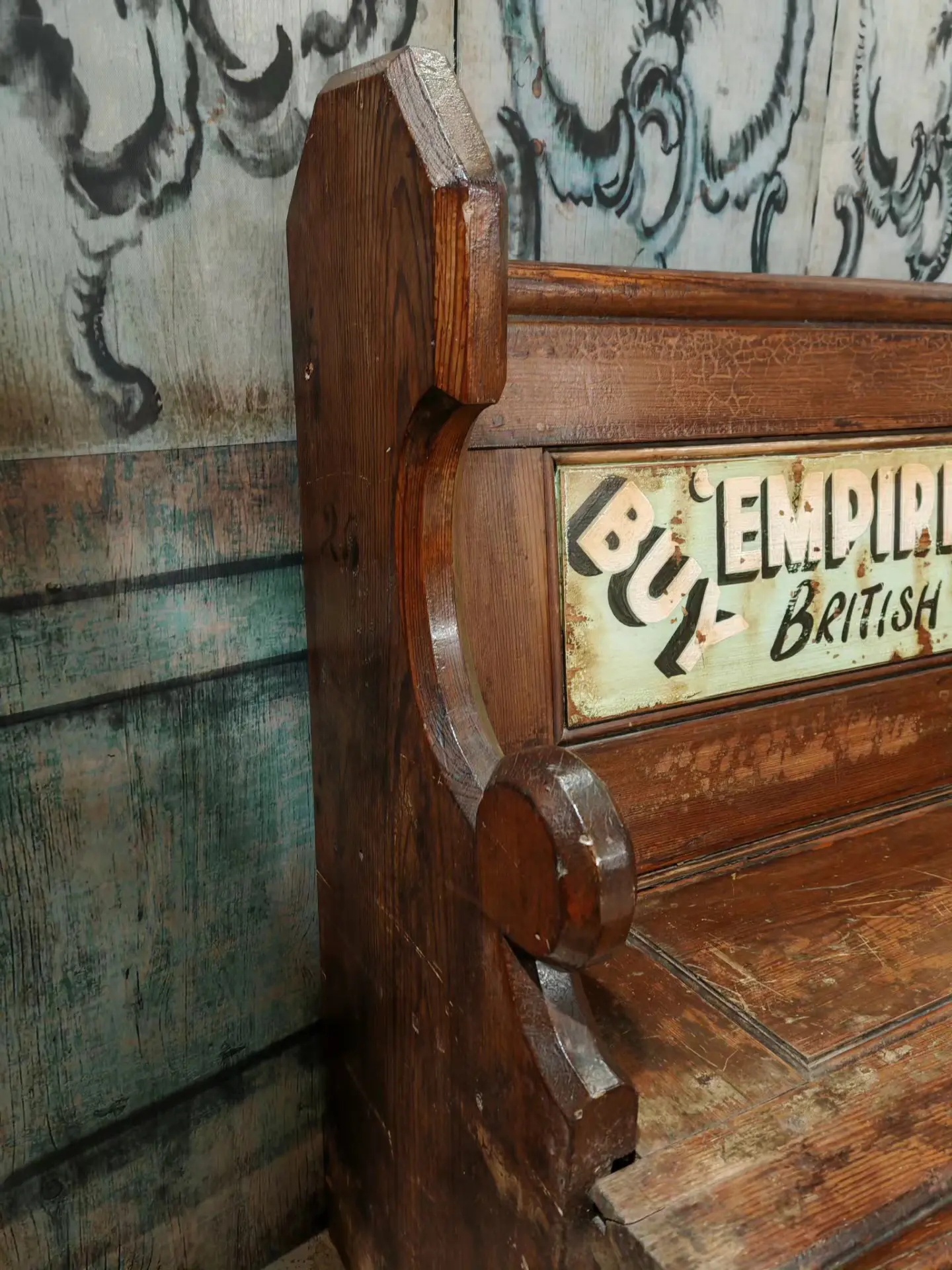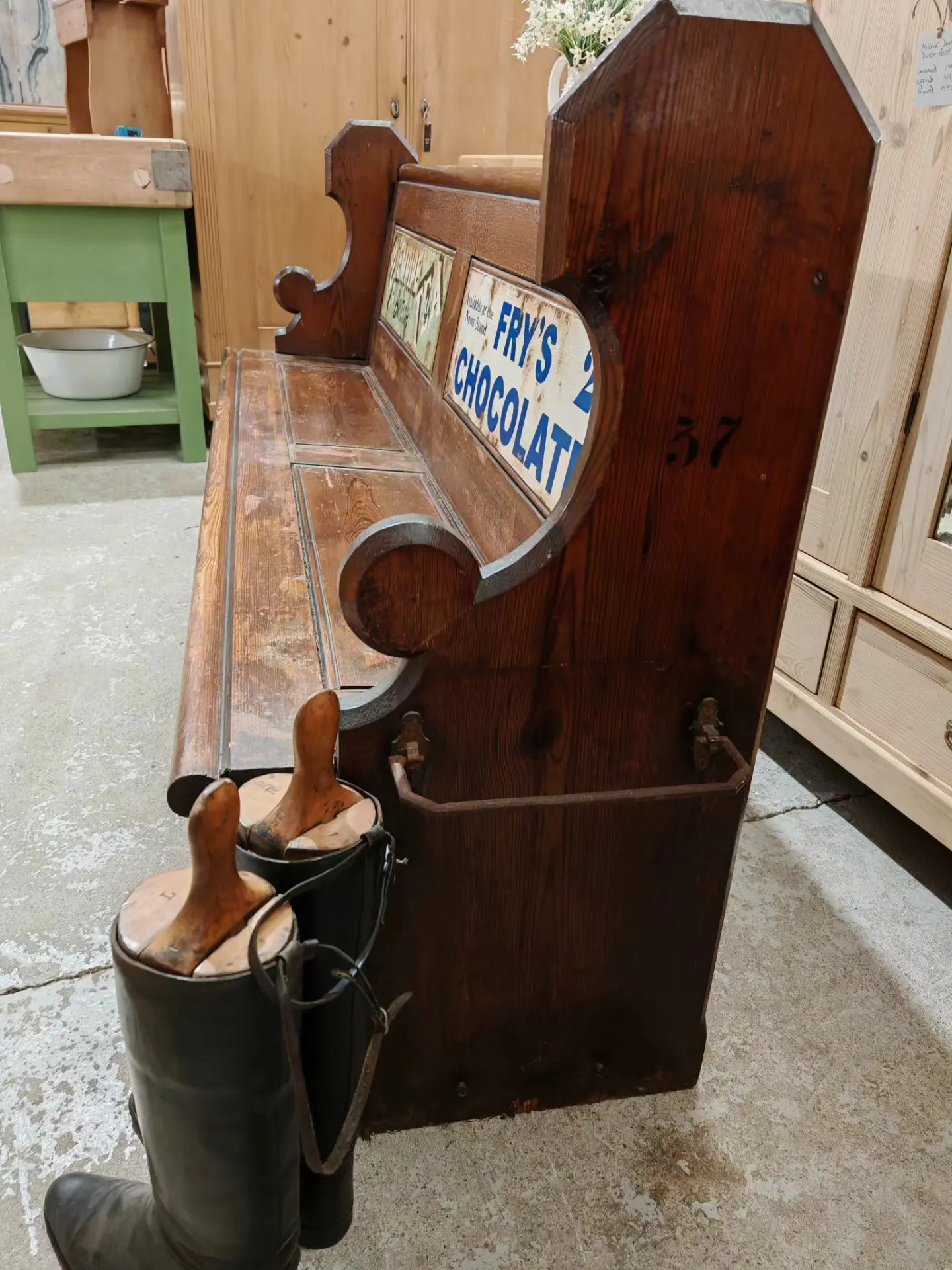 This amazing old original condition church pew is new into stock this morning and is fabulous with the old painted advertising in the back panels.