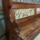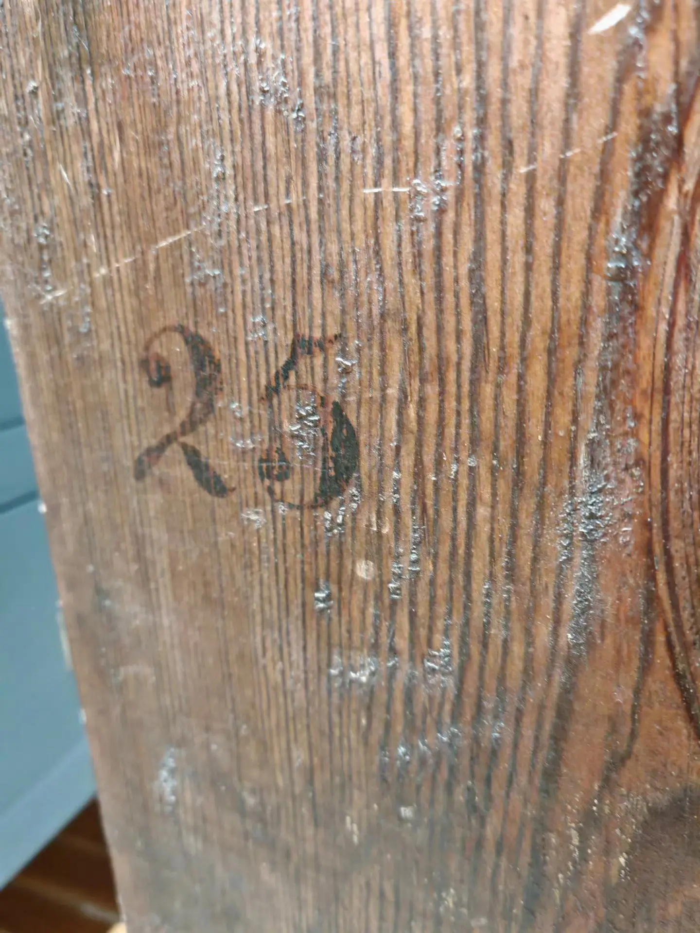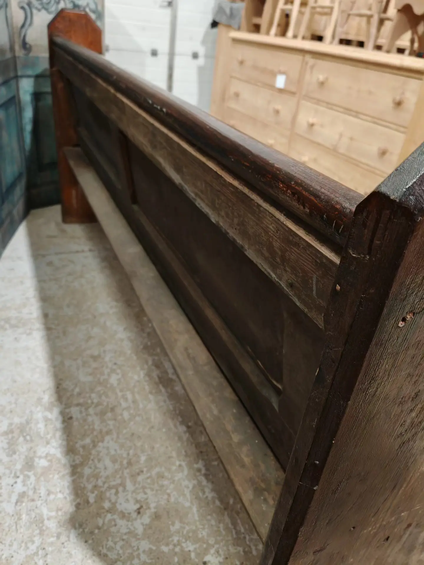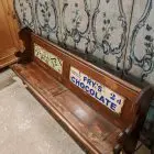 This pew is in its original style varnish with scrapes and scuffs and this just adds great patina to the look.
