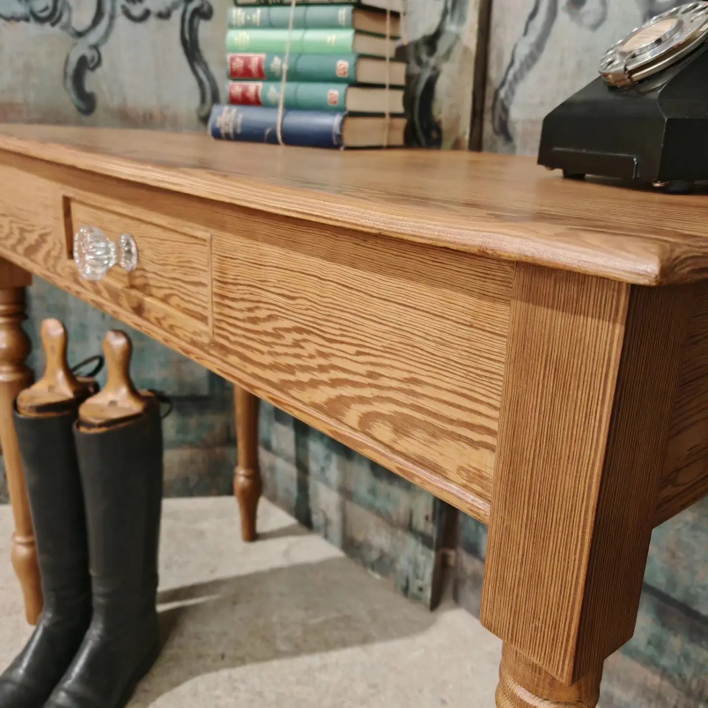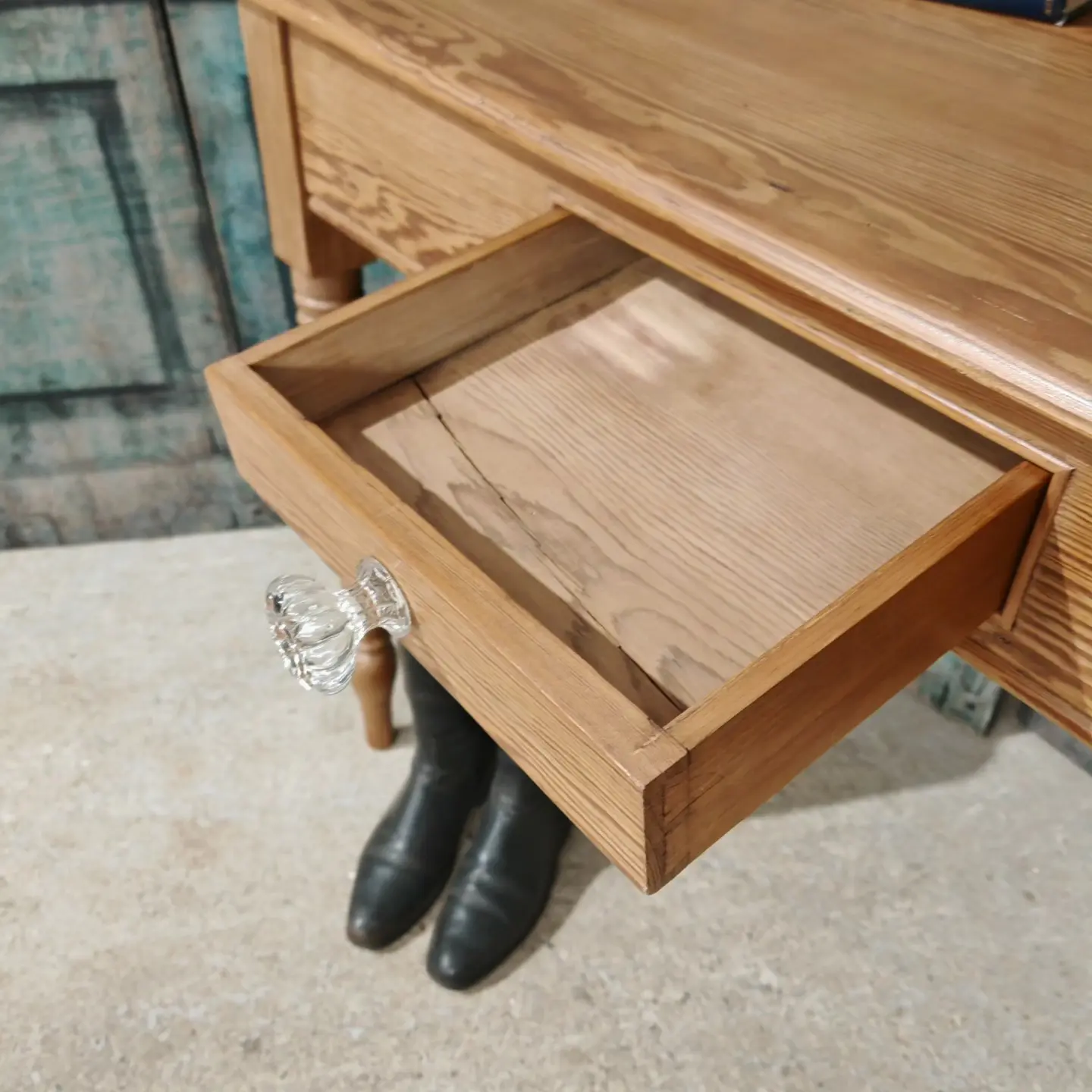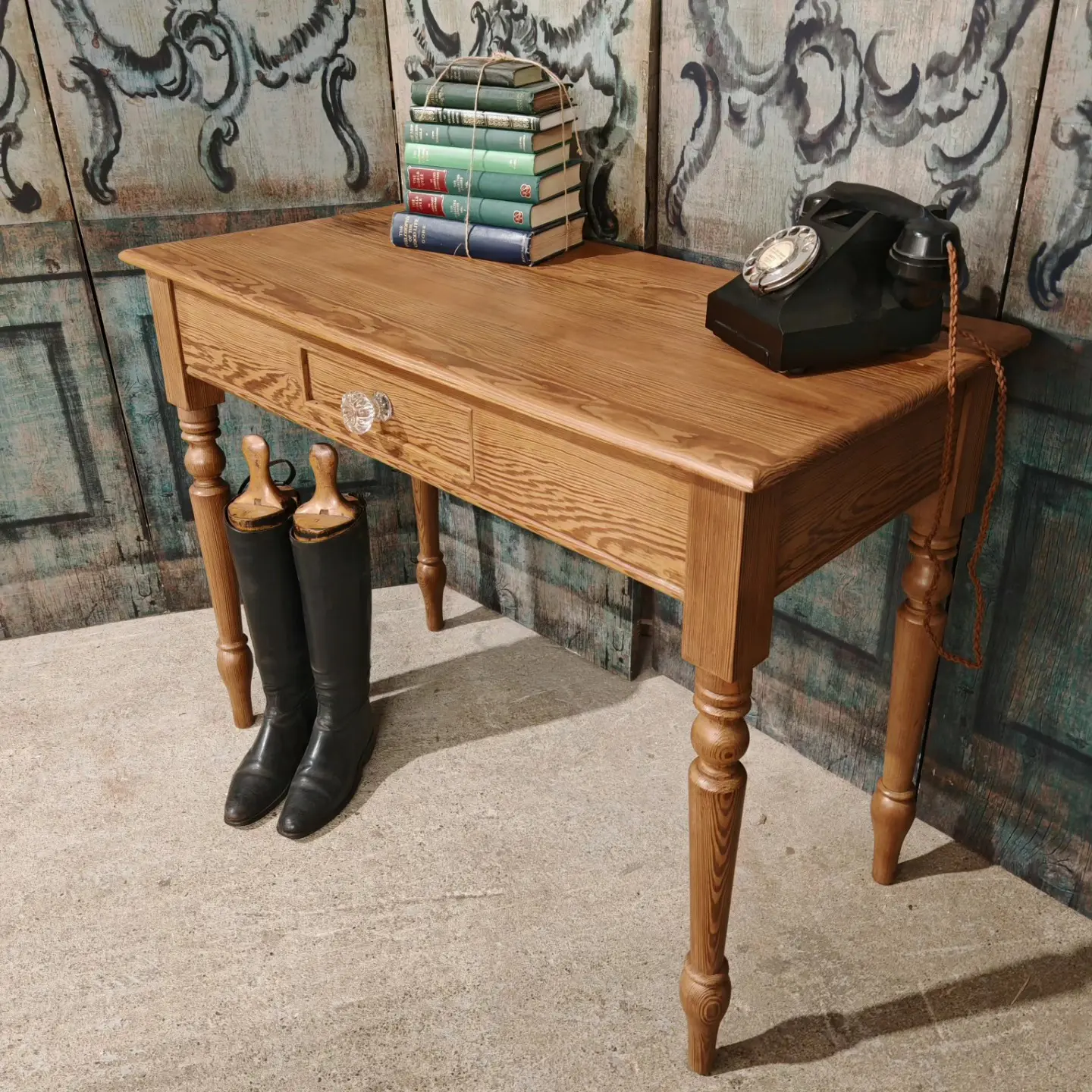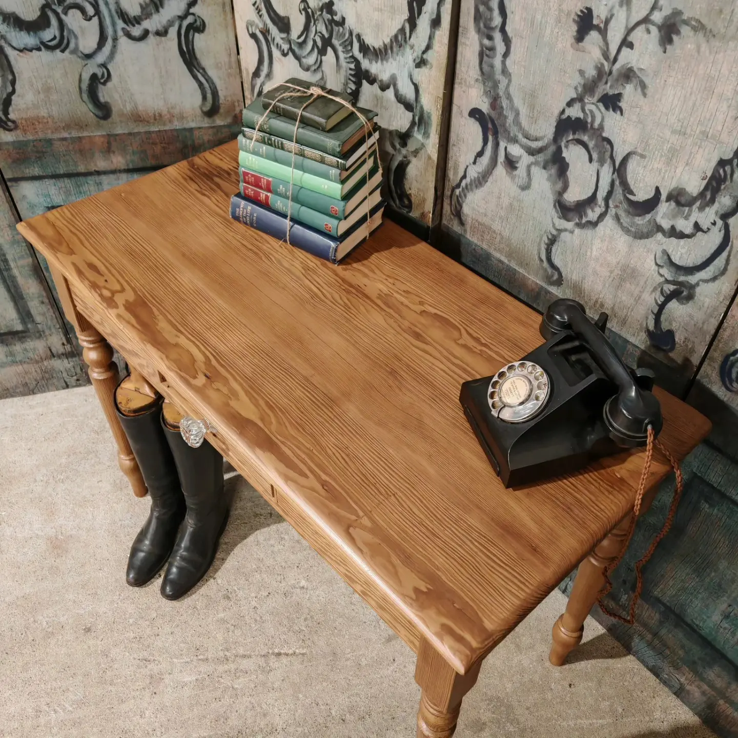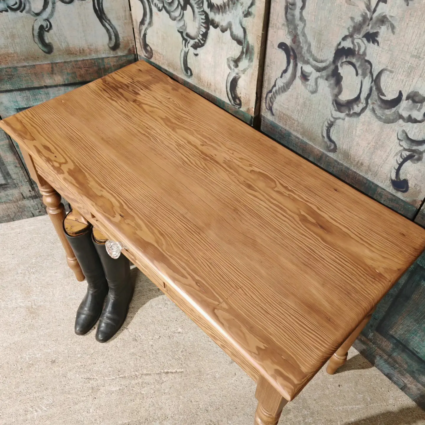 Just finished the restoration on this beautiful pitch pine side table / desk with stunning grain pattern.