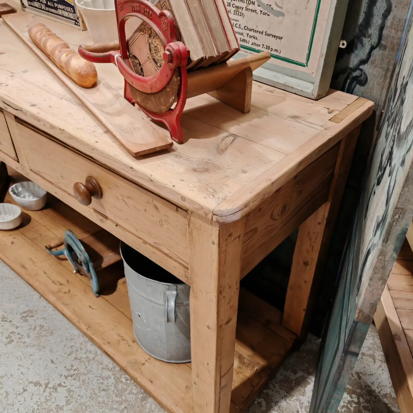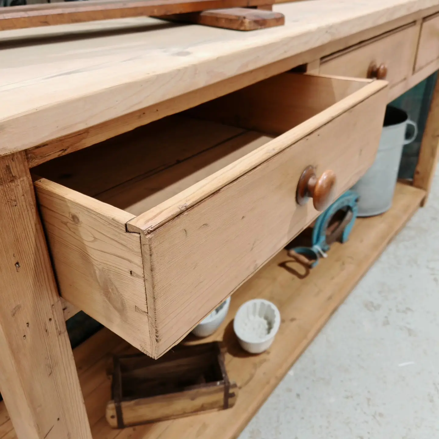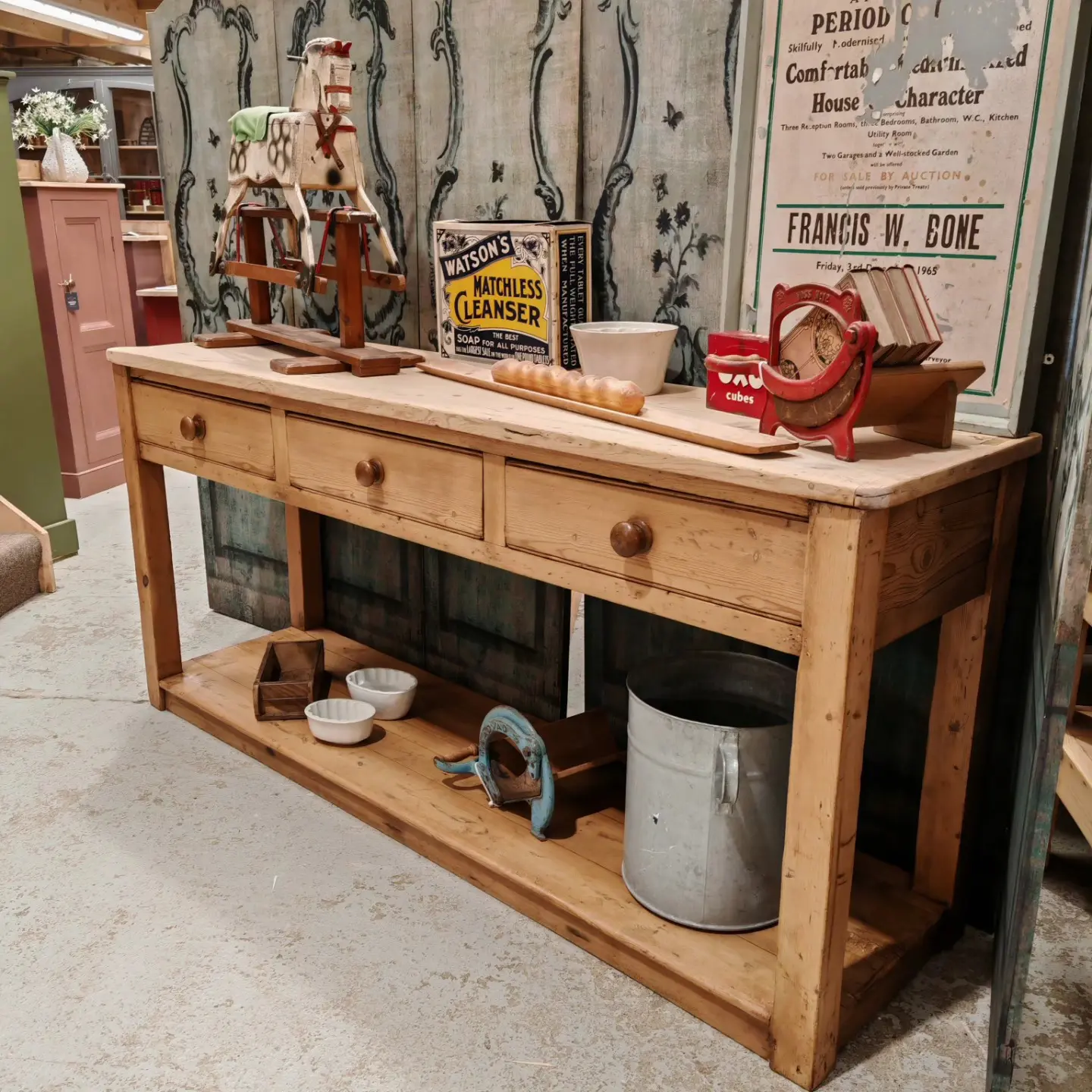 Circa 1850s this stunning large side table is as good as they get with hand waxed base and scrub top work surface.