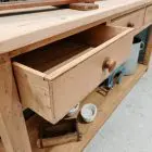 This piece features three spacious drawers with round original wooden knobs, perfect for storing everyday essentials, along with a sturdy lower waxed shelf ideal for baskets, books, or décor.