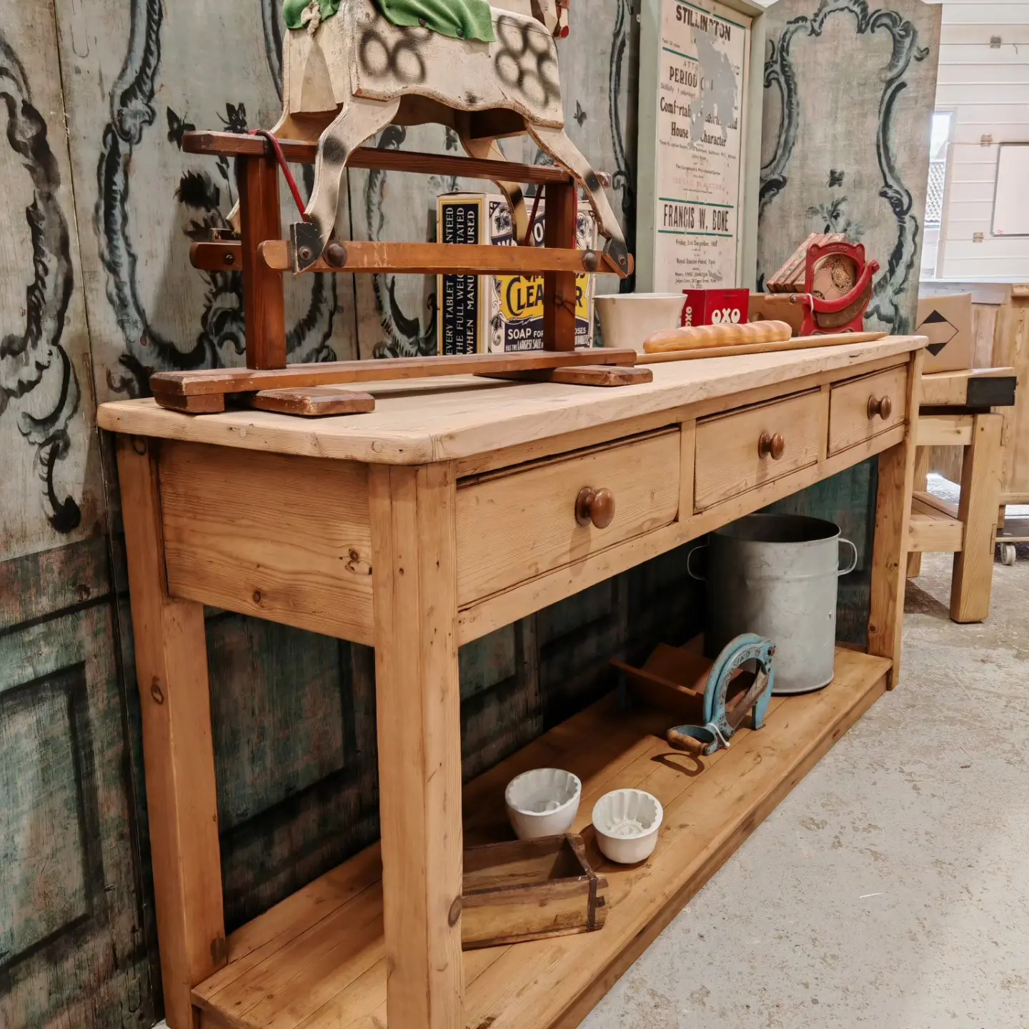Very rare Victorian pine console table with a timeless farmhouse feel.