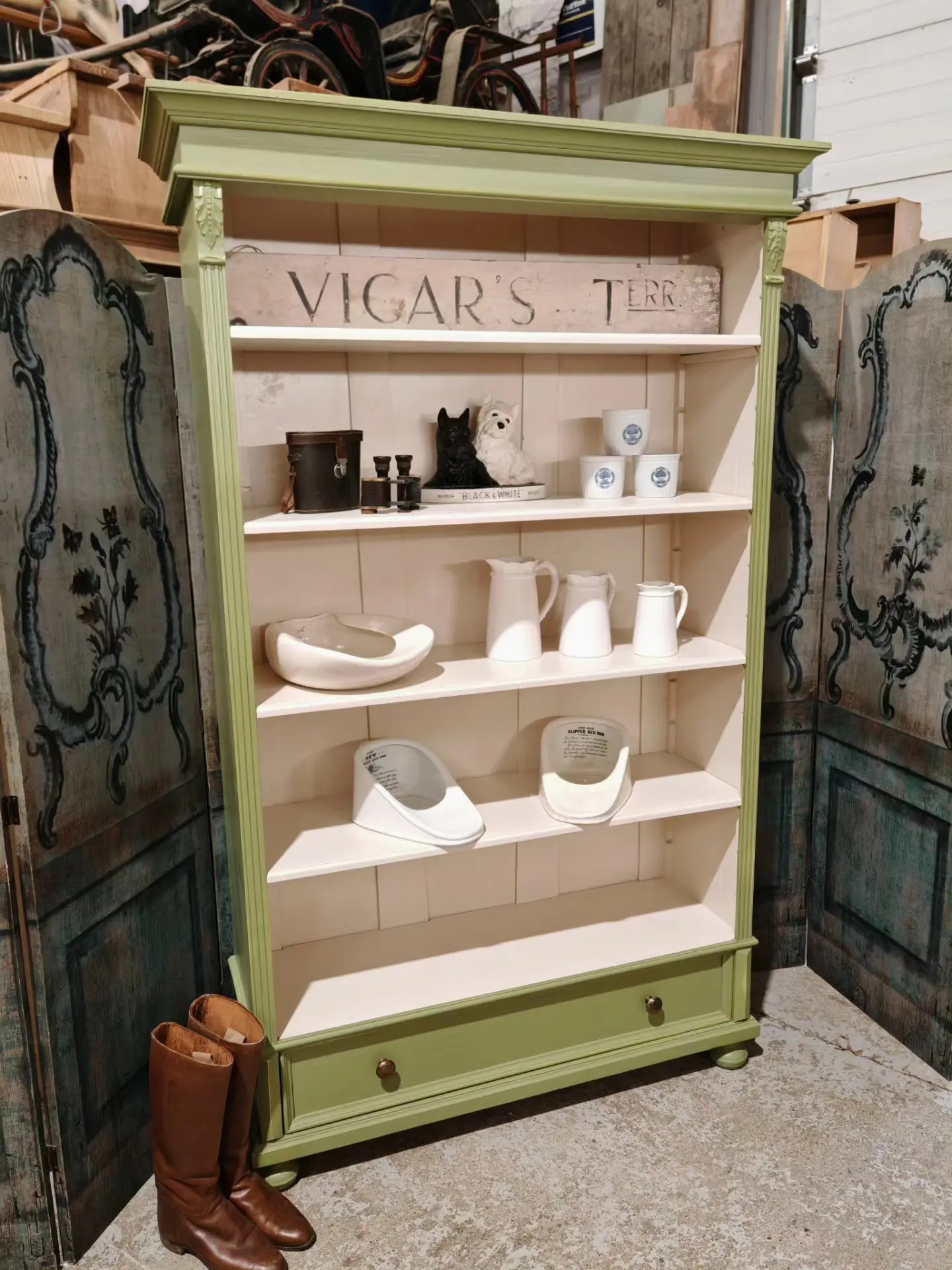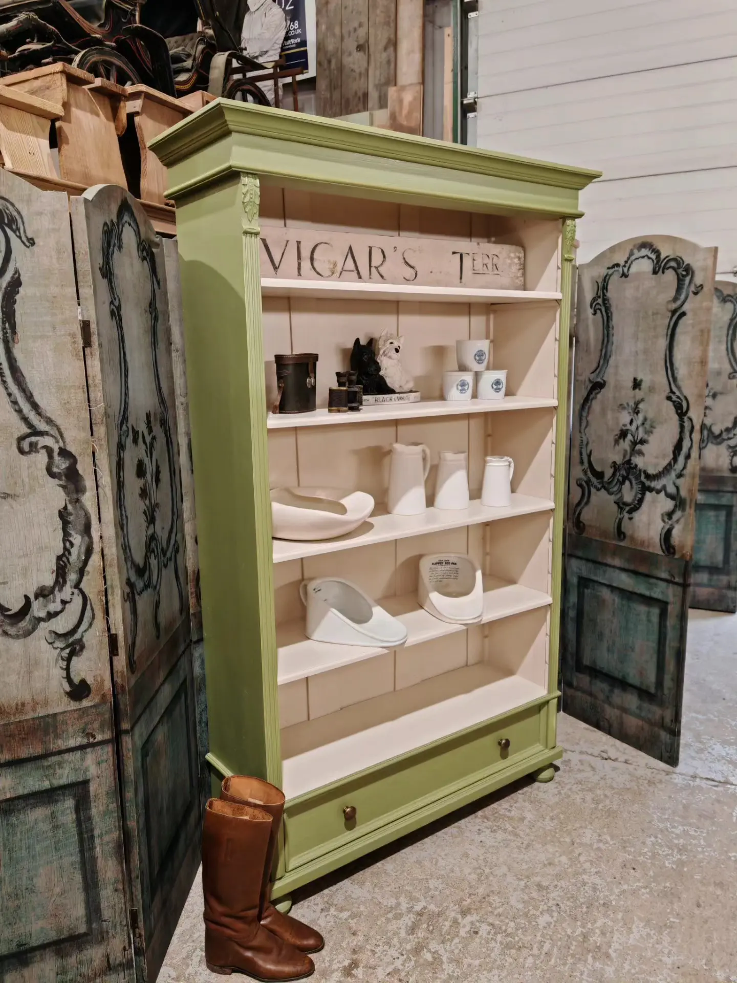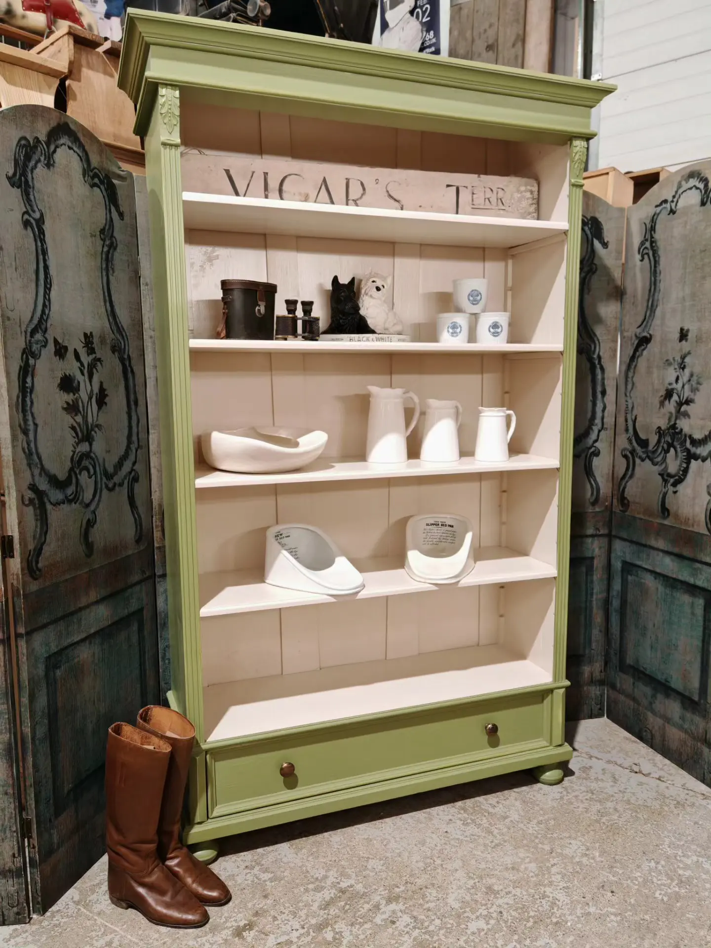 reclaimed pine painted bookcase . Dutch style