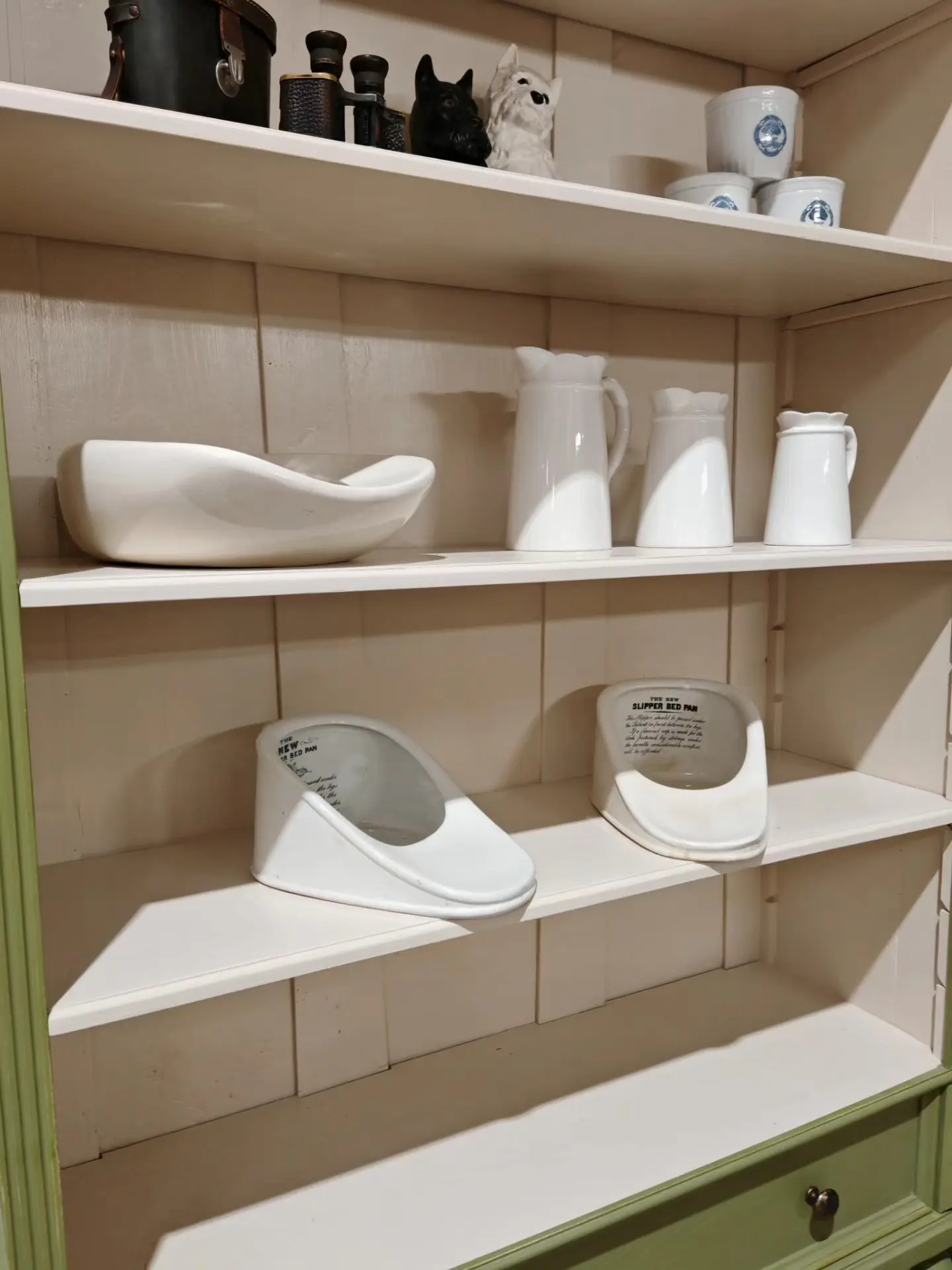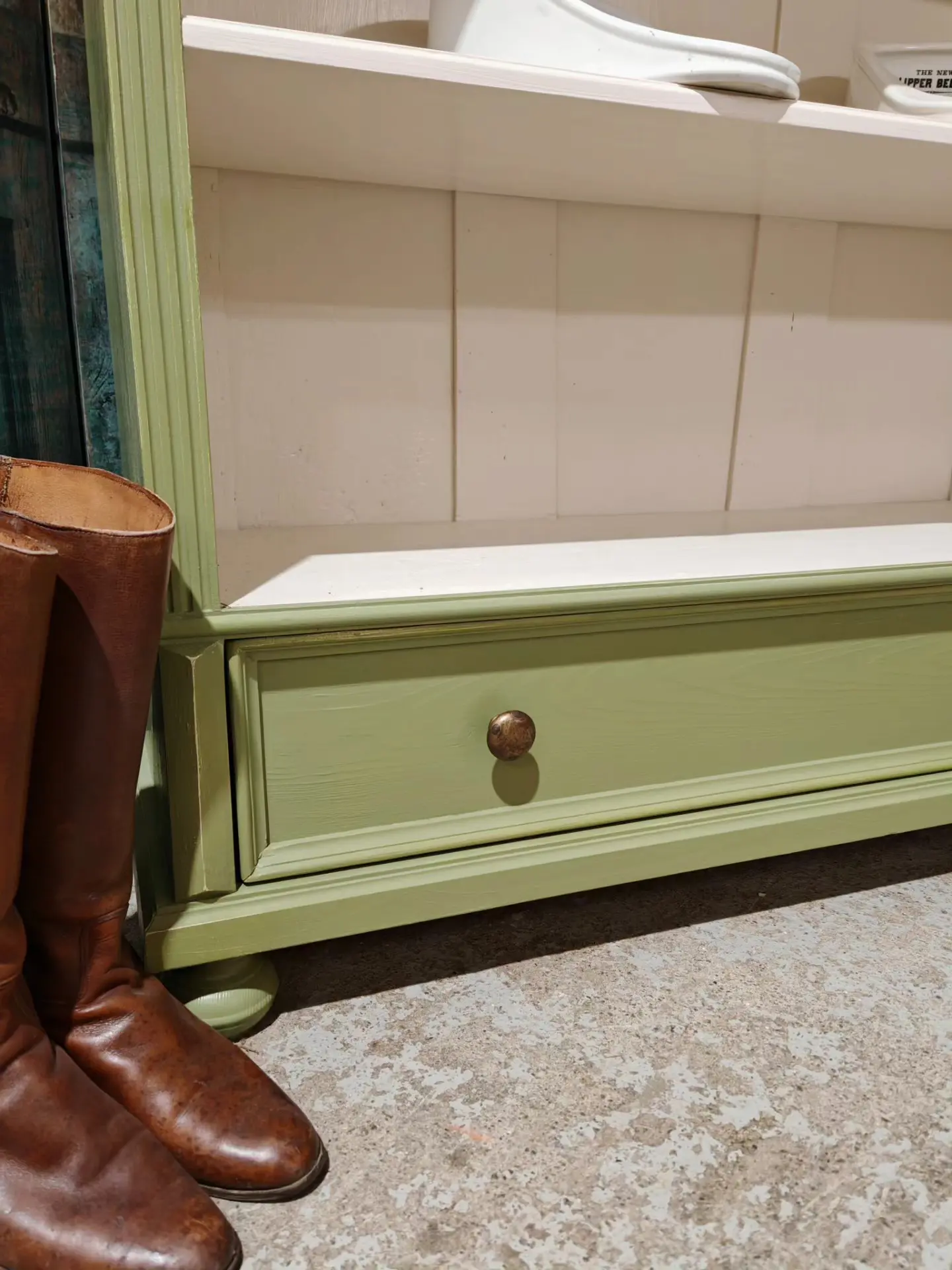 This one is painted in Valspar Rugged Olive with F&B Joas White internally.