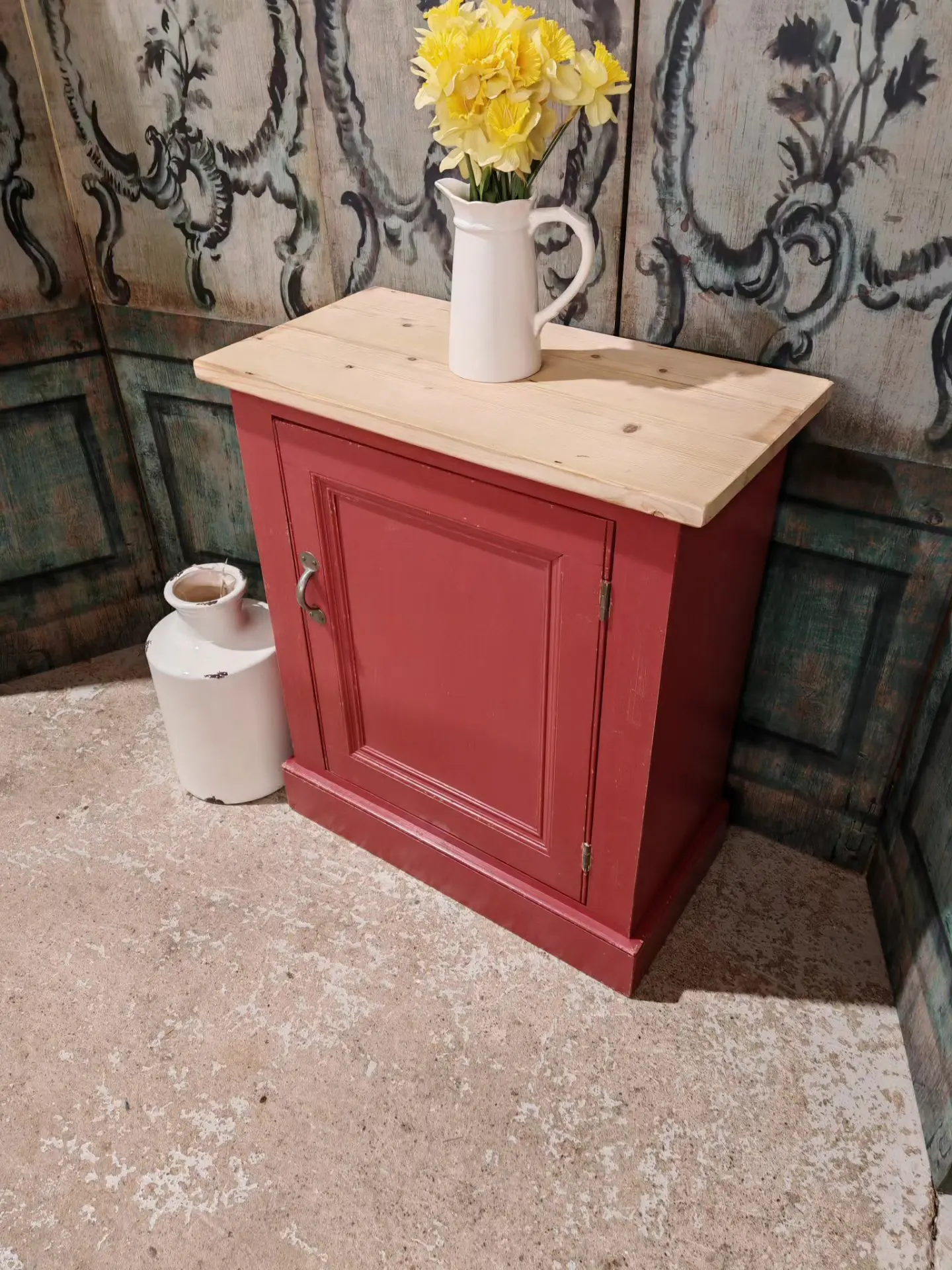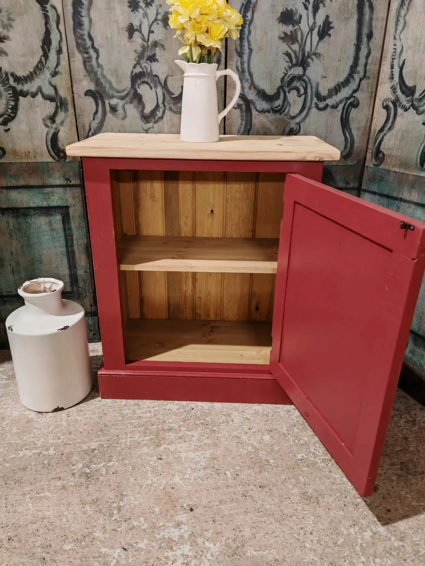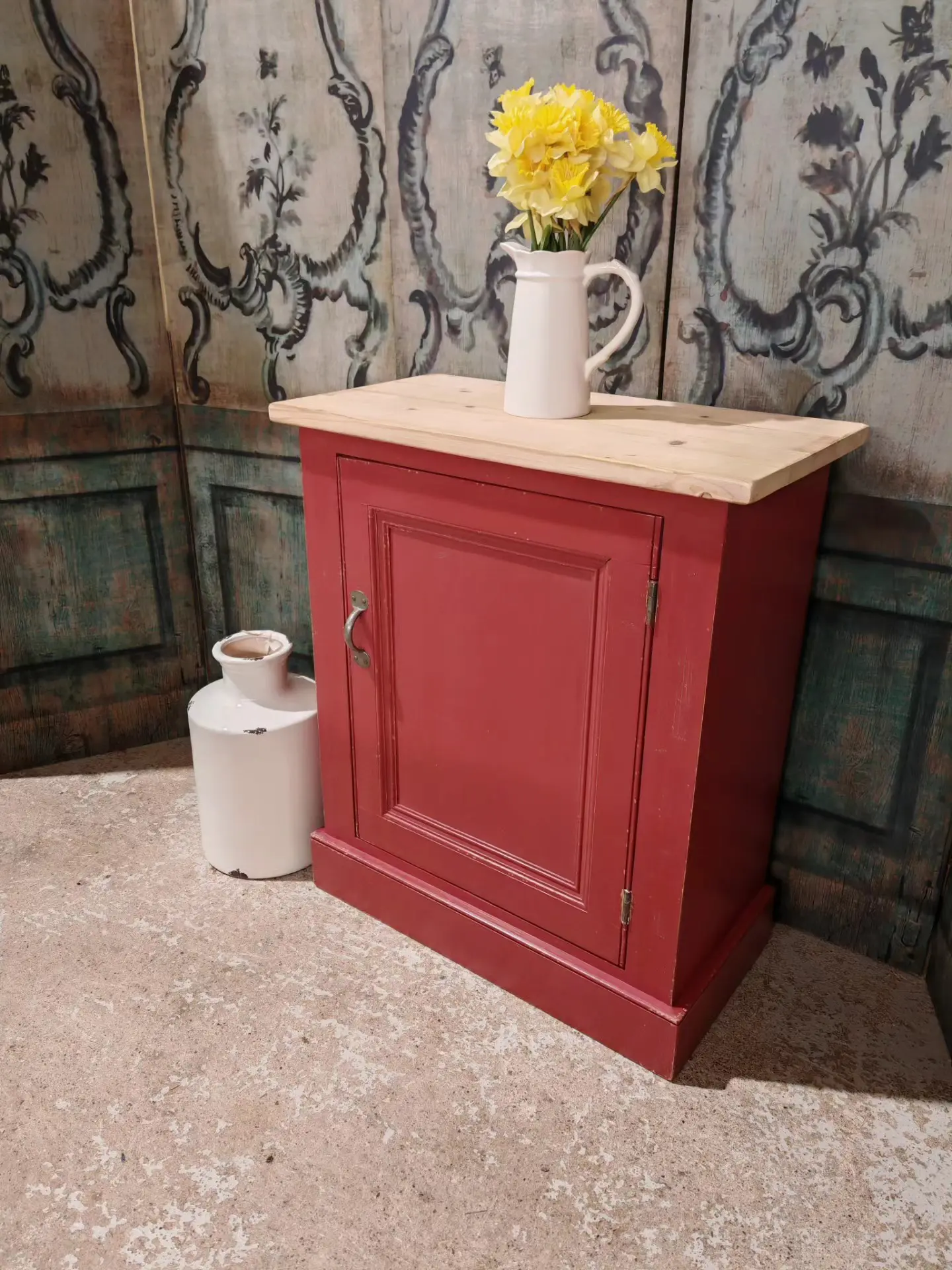 This very popular ‘Eating room red’ – looks amazing on this handmade pine cupboard.