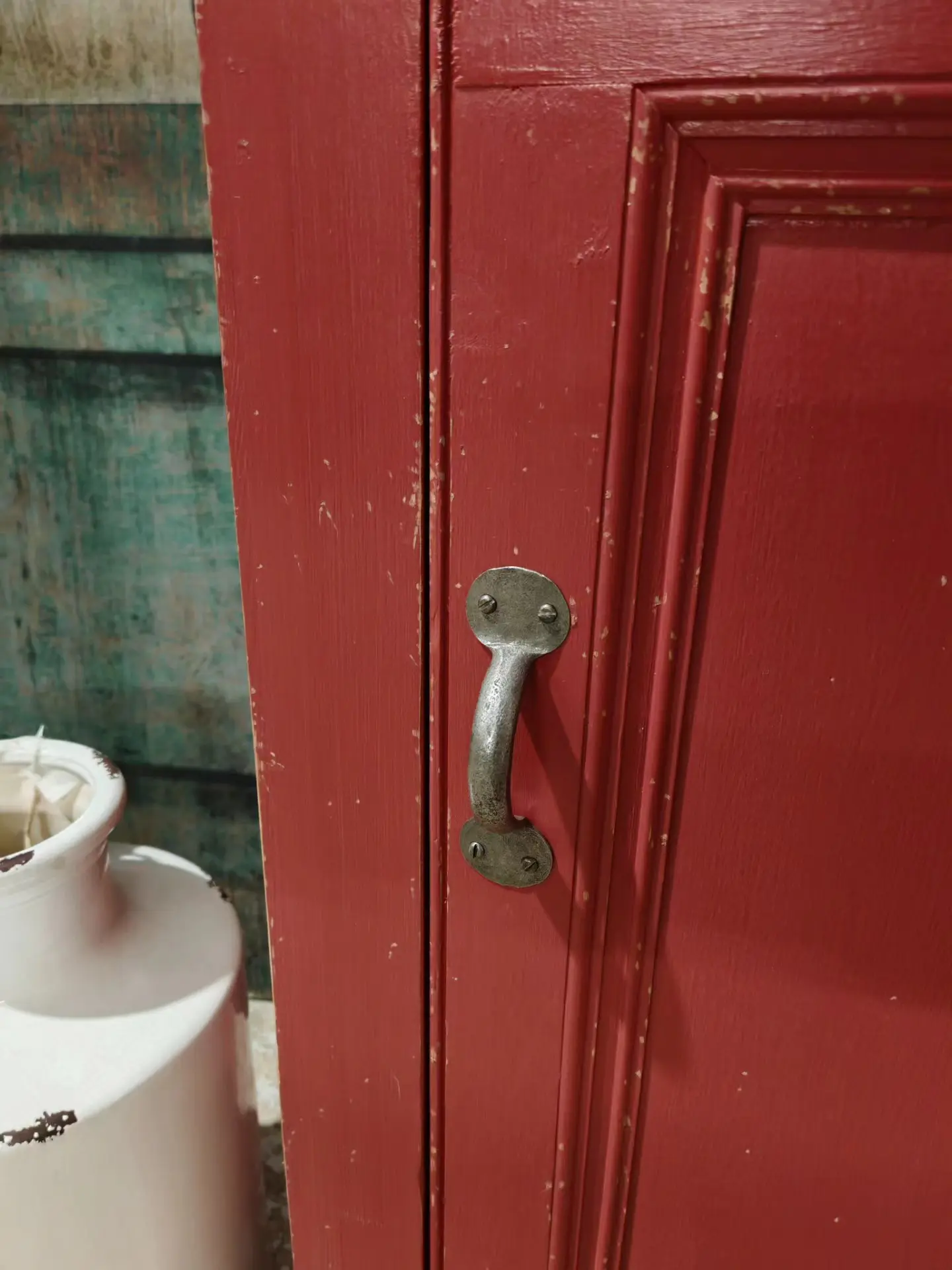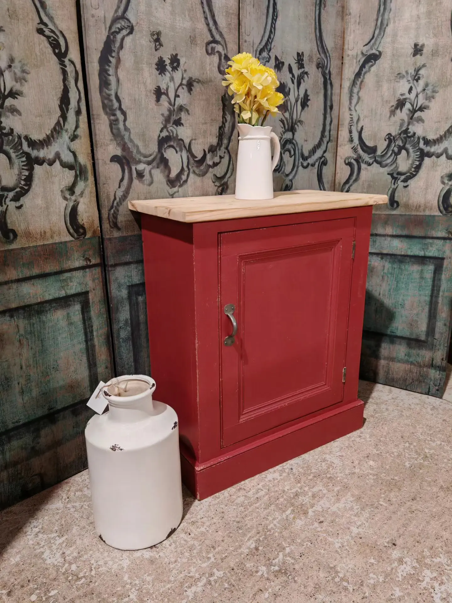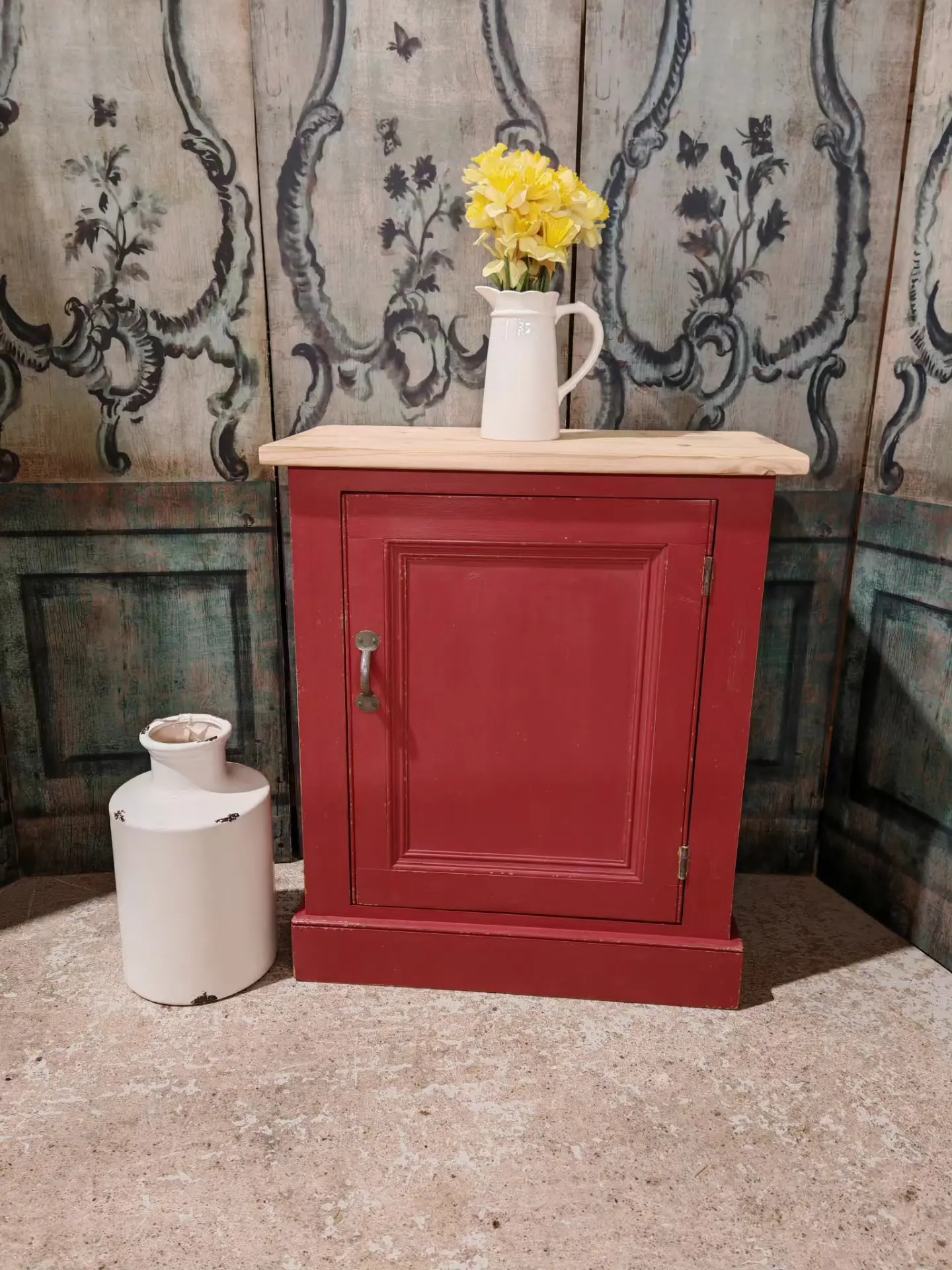 This very popular ‘Eating room red’ – looks amazing on this handmade pine cupboard.