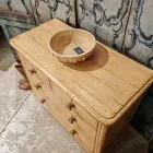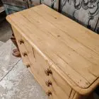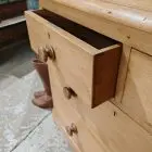 This good quality pine chest of drawers has original turned feet, original handles and rounded corners.