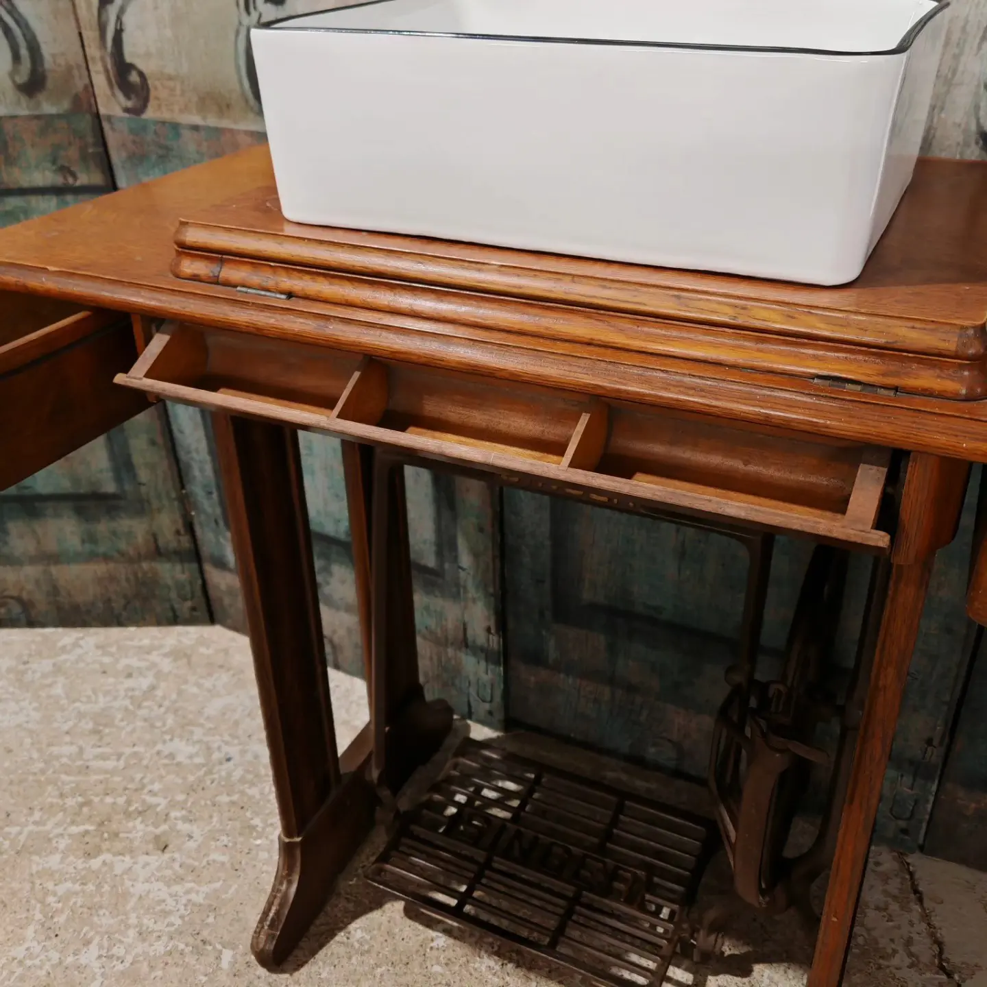 singer sewing machine ‘vanity unit’ with new sink