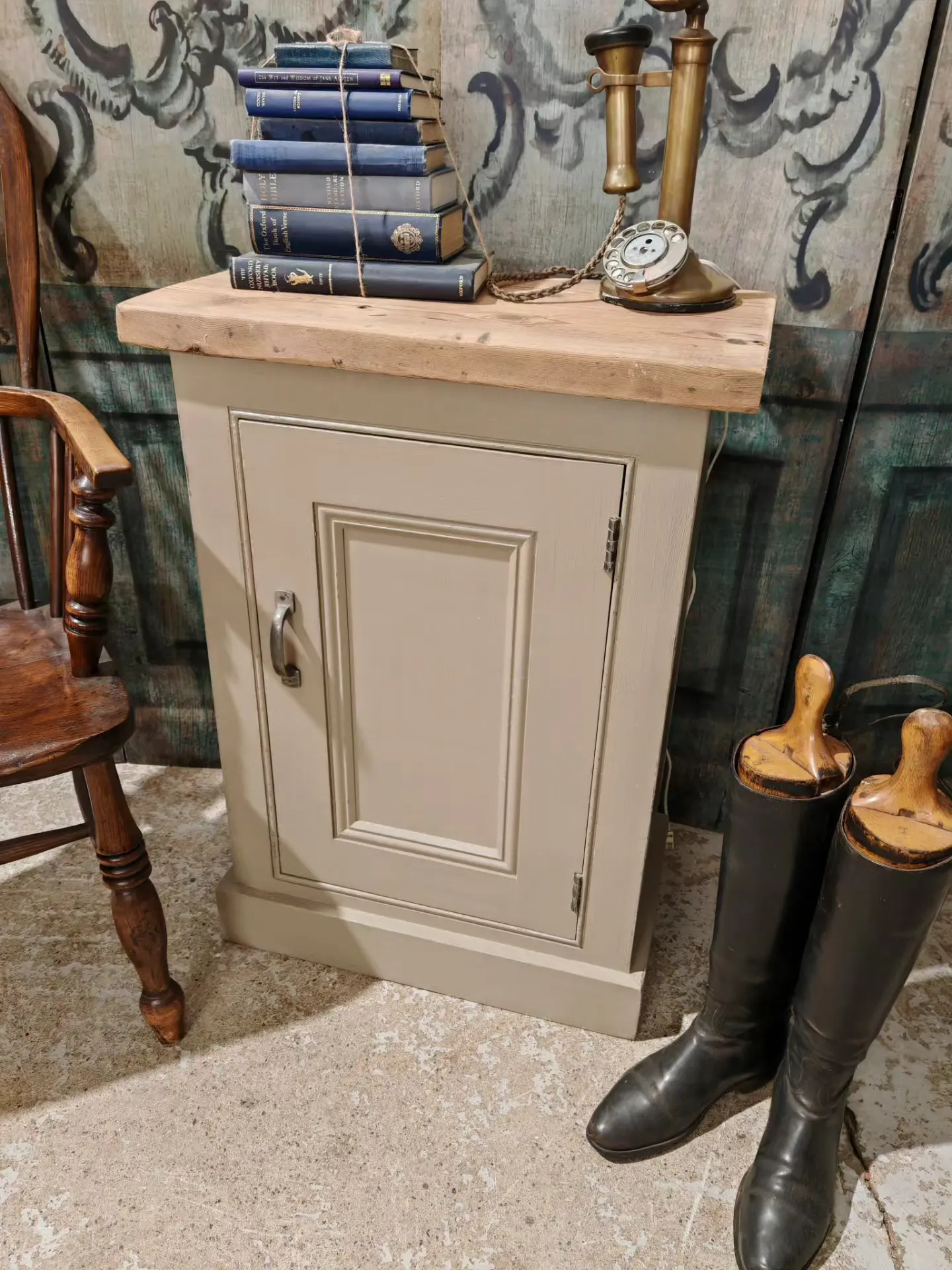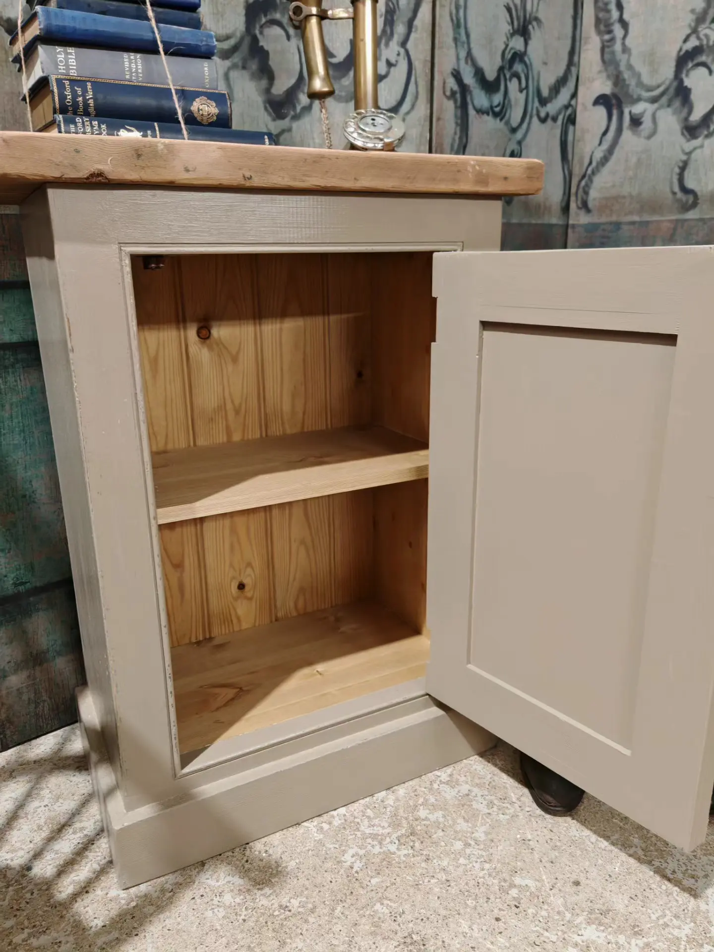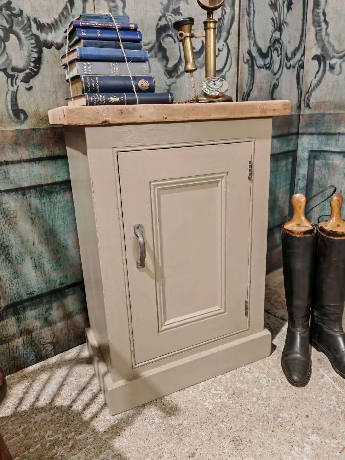 This very popular colour by F&B – Mouses Back looks amazing on this handmade pine cupboard.