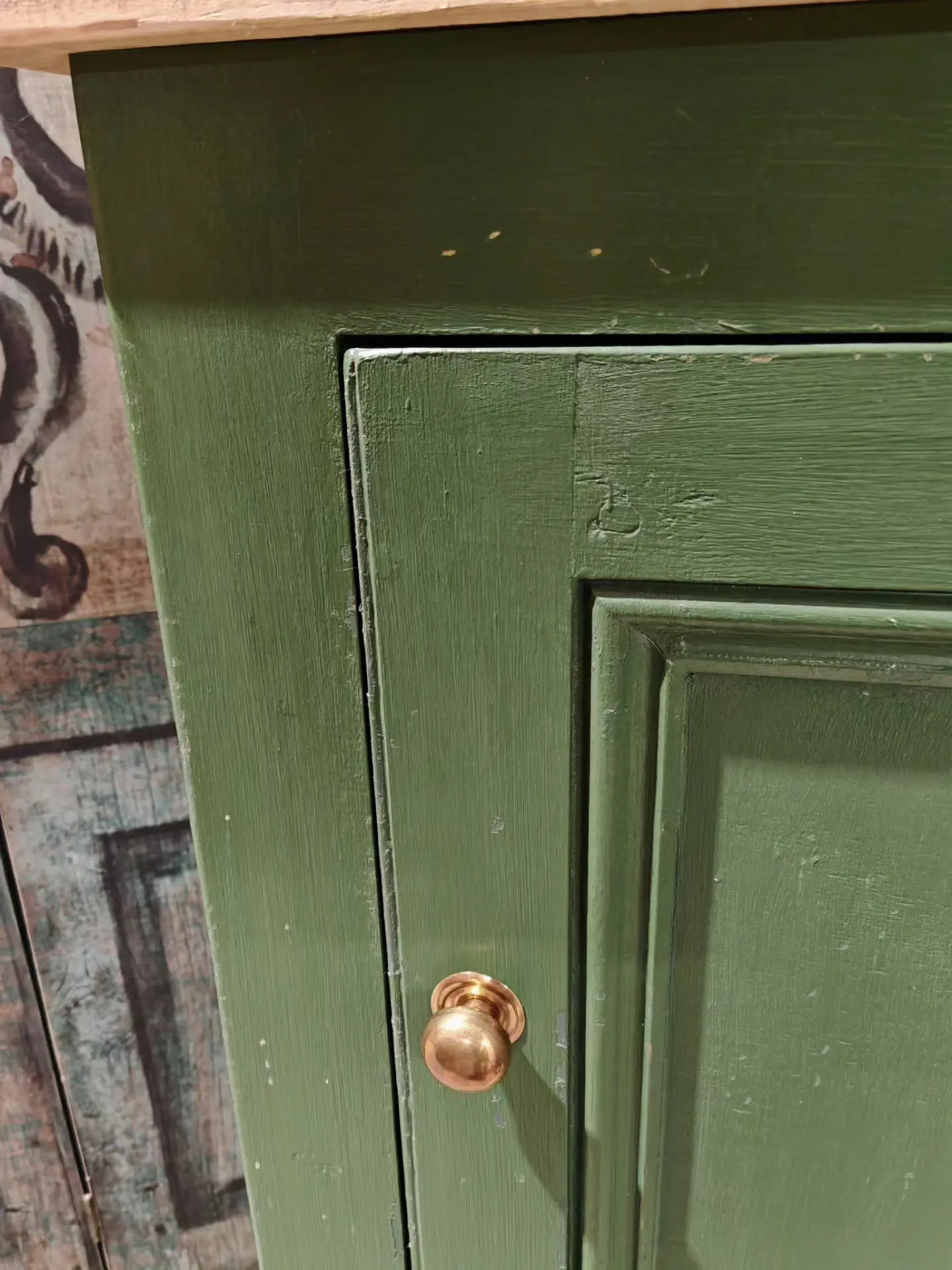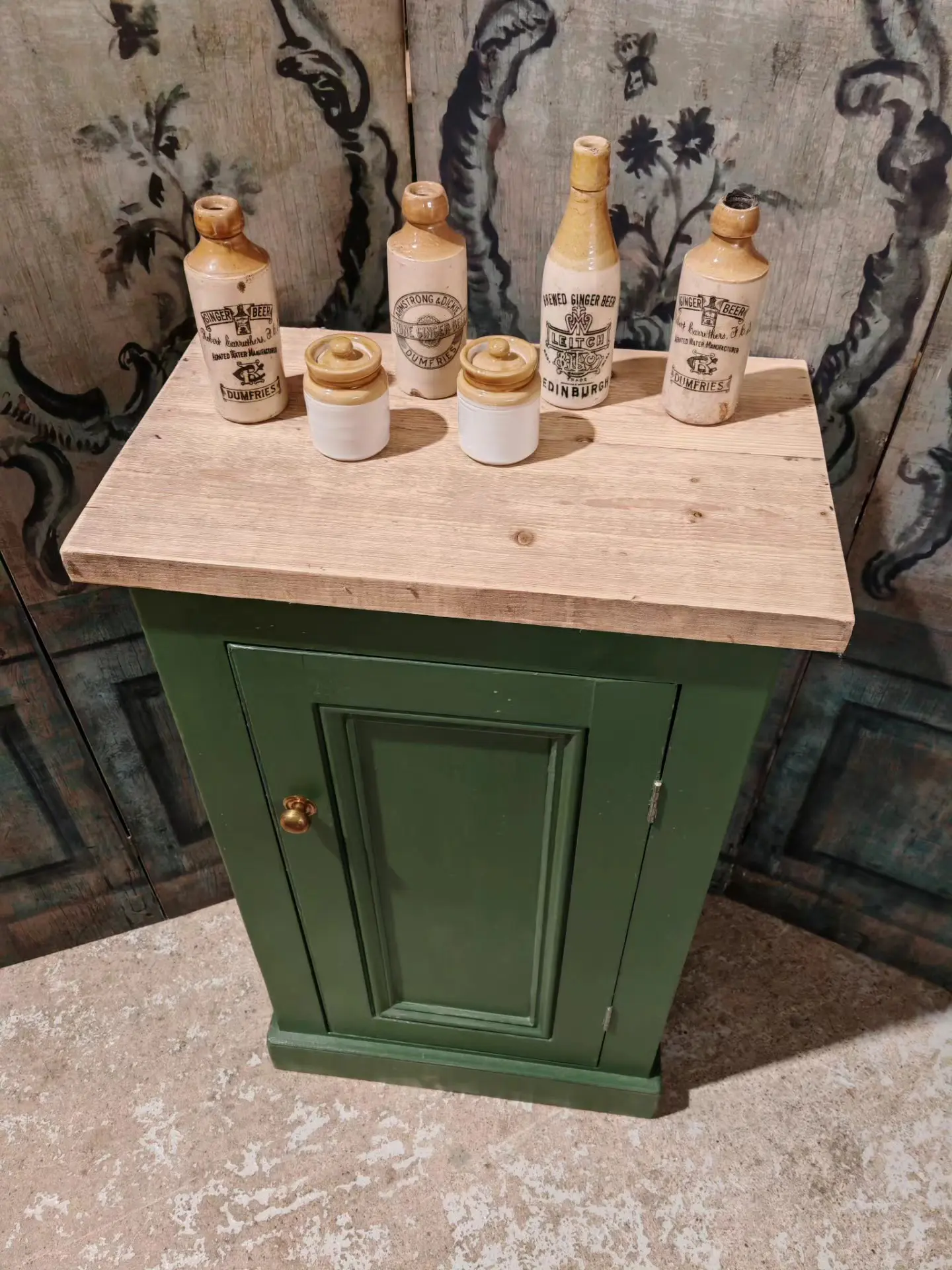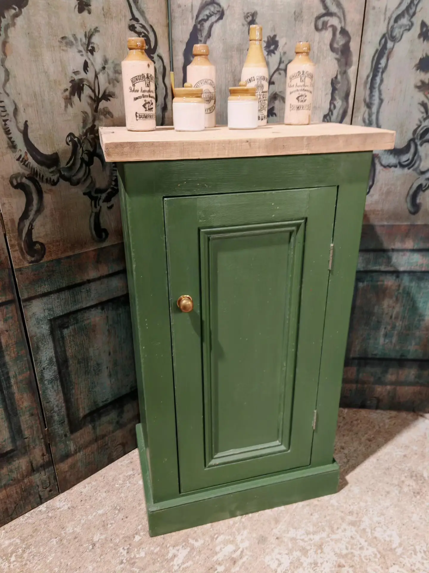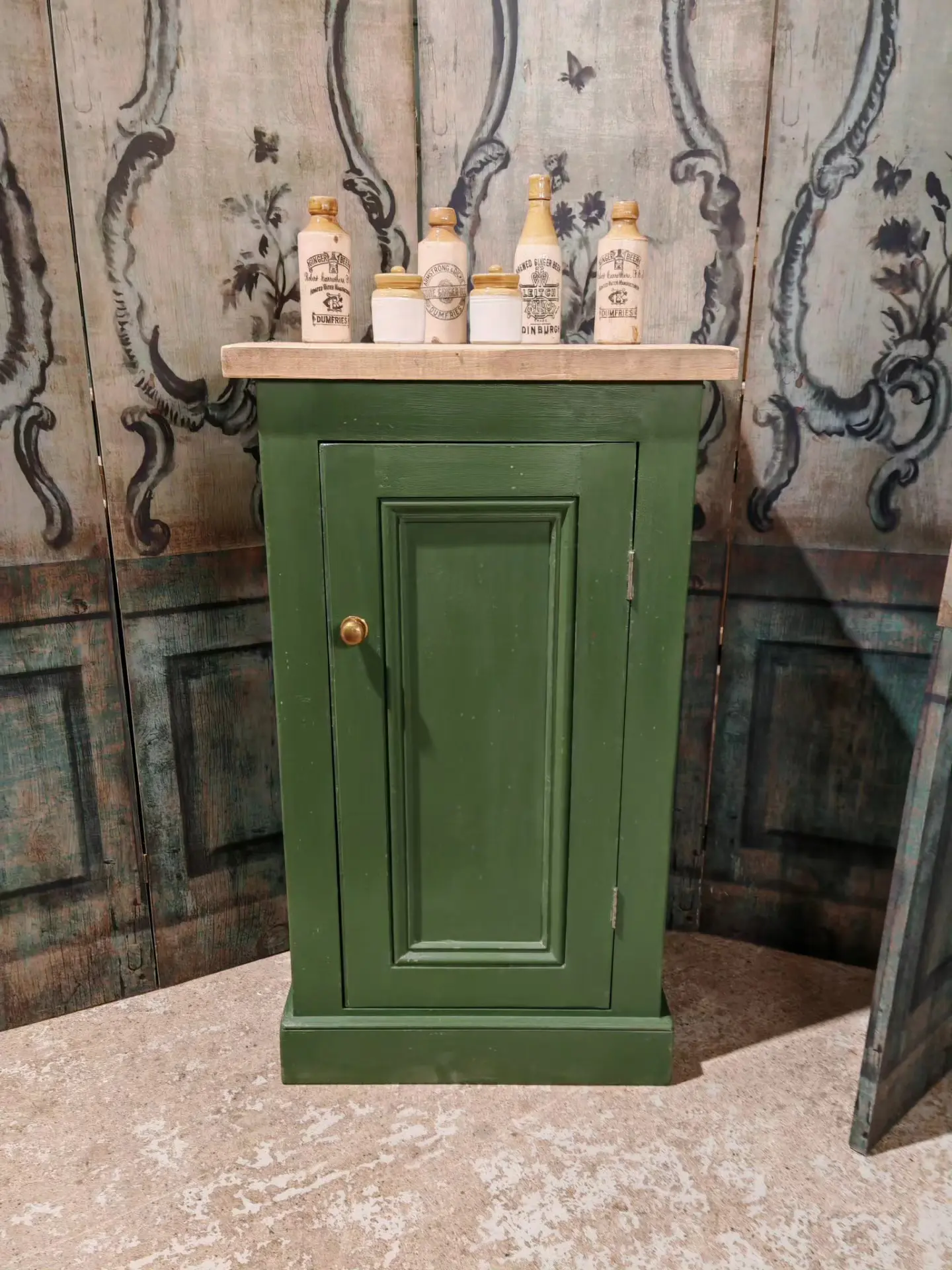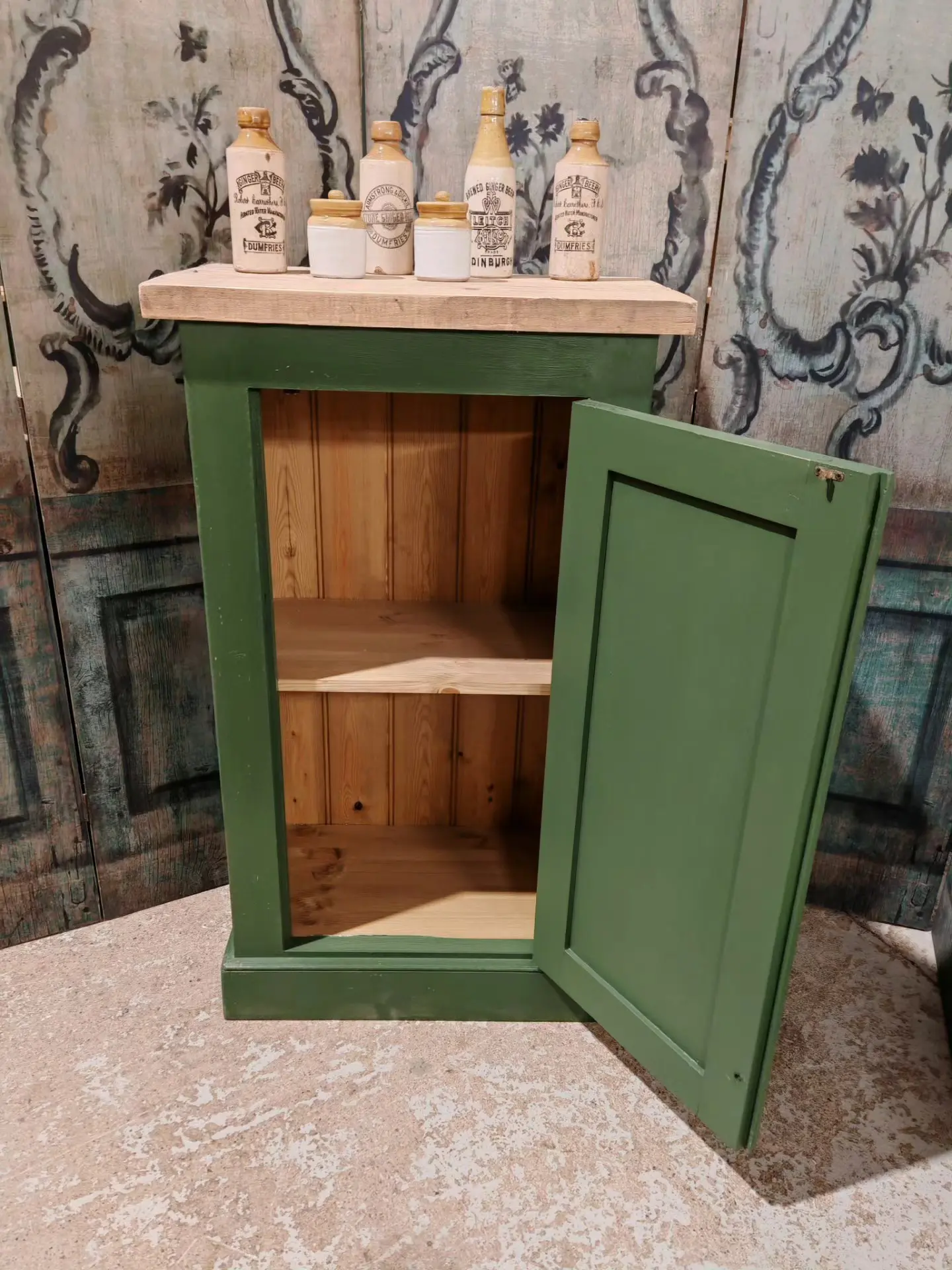 This very popular colour Beverly N° 310 by Farrow and Ball looks amazing on this handmade pine cupboard.