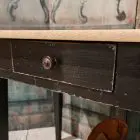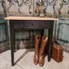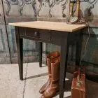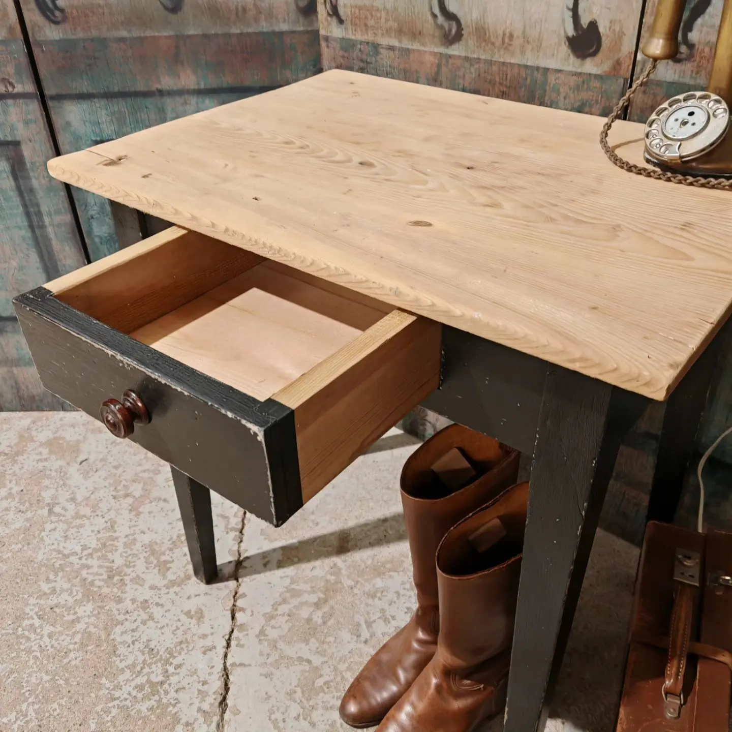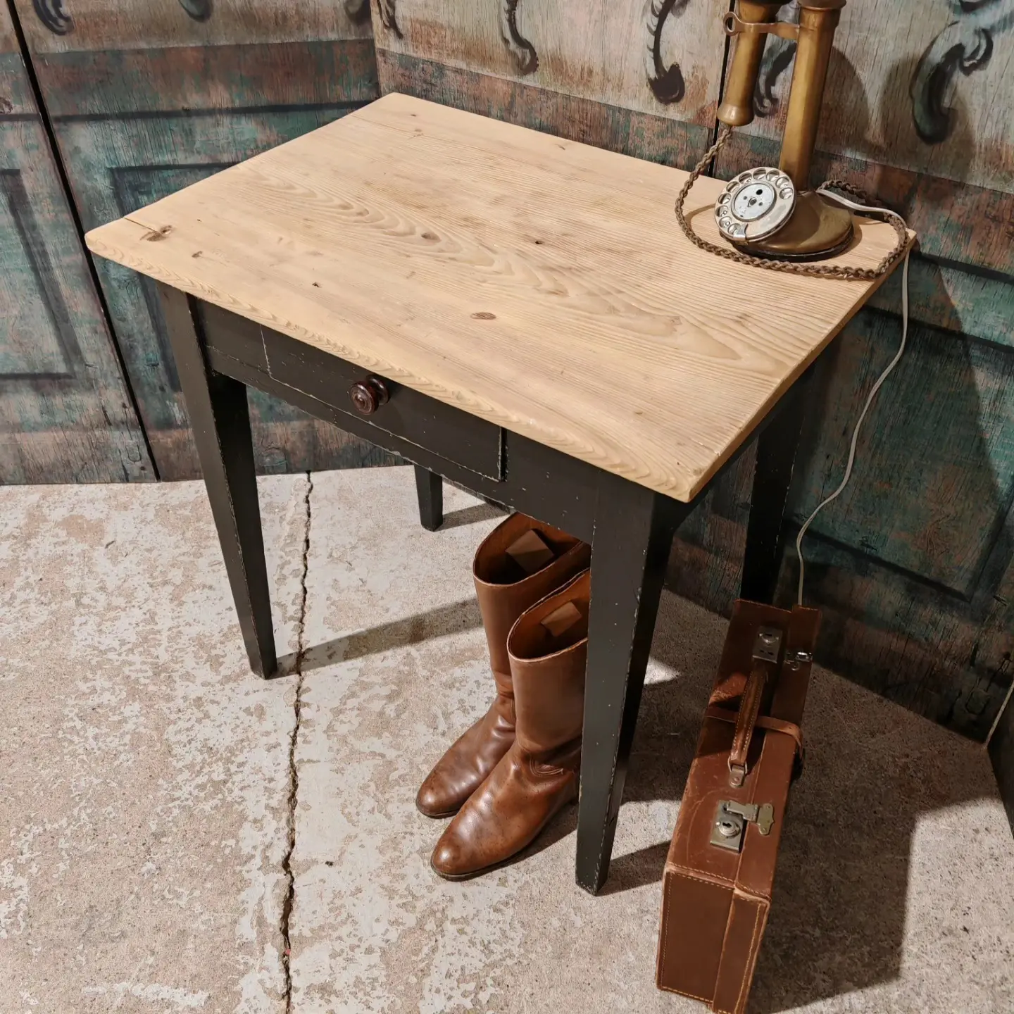 This lovely little pine painted black and distressed table has come all the way back from Saint-Tropez after one of our joiners brought a few items back from his holiday home.