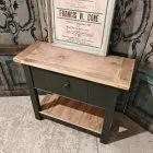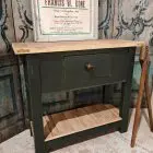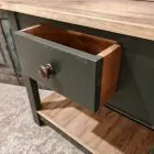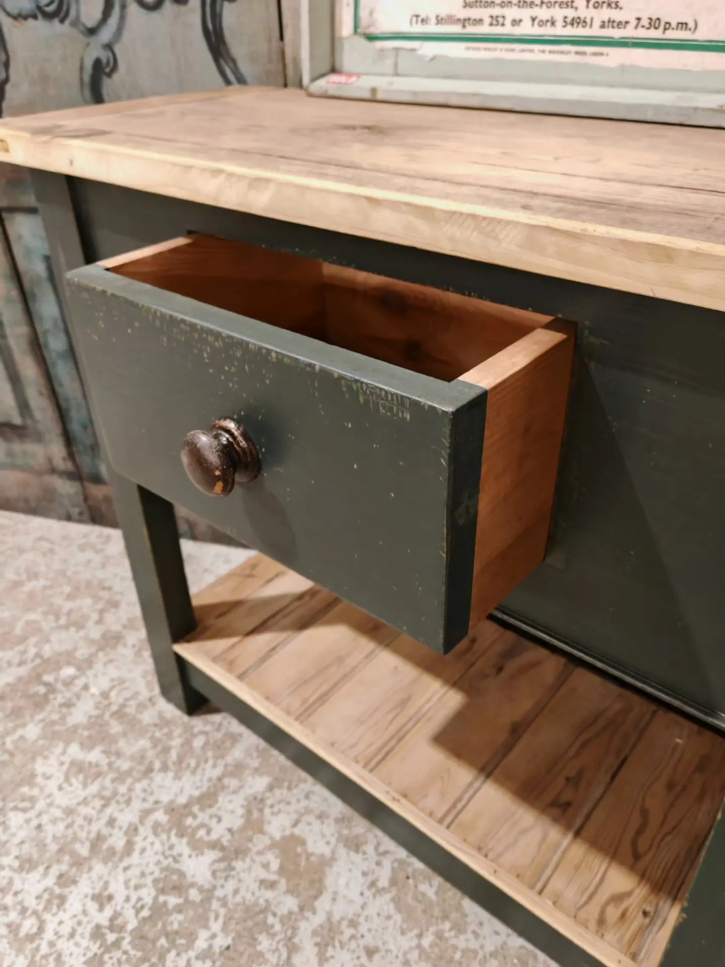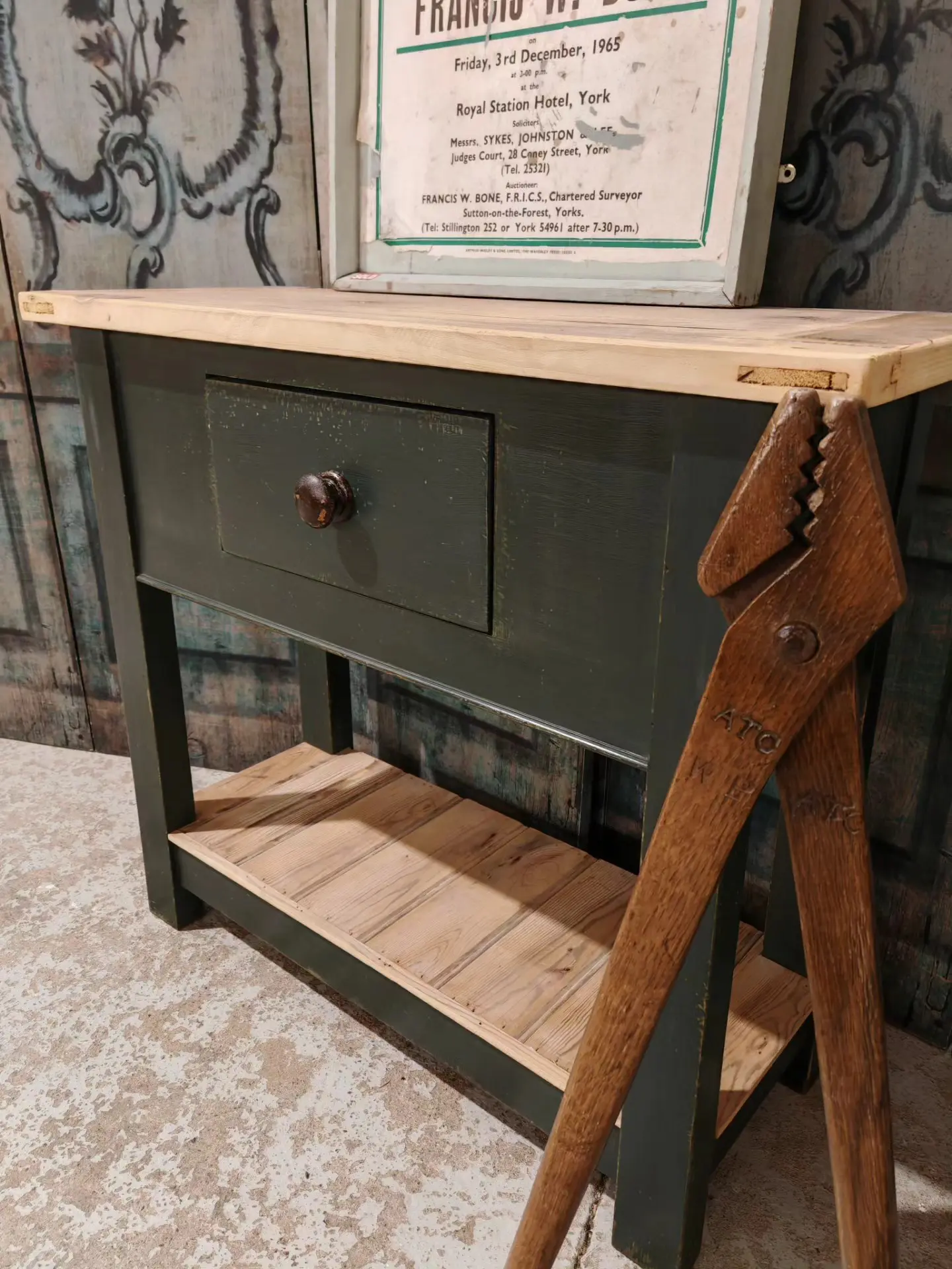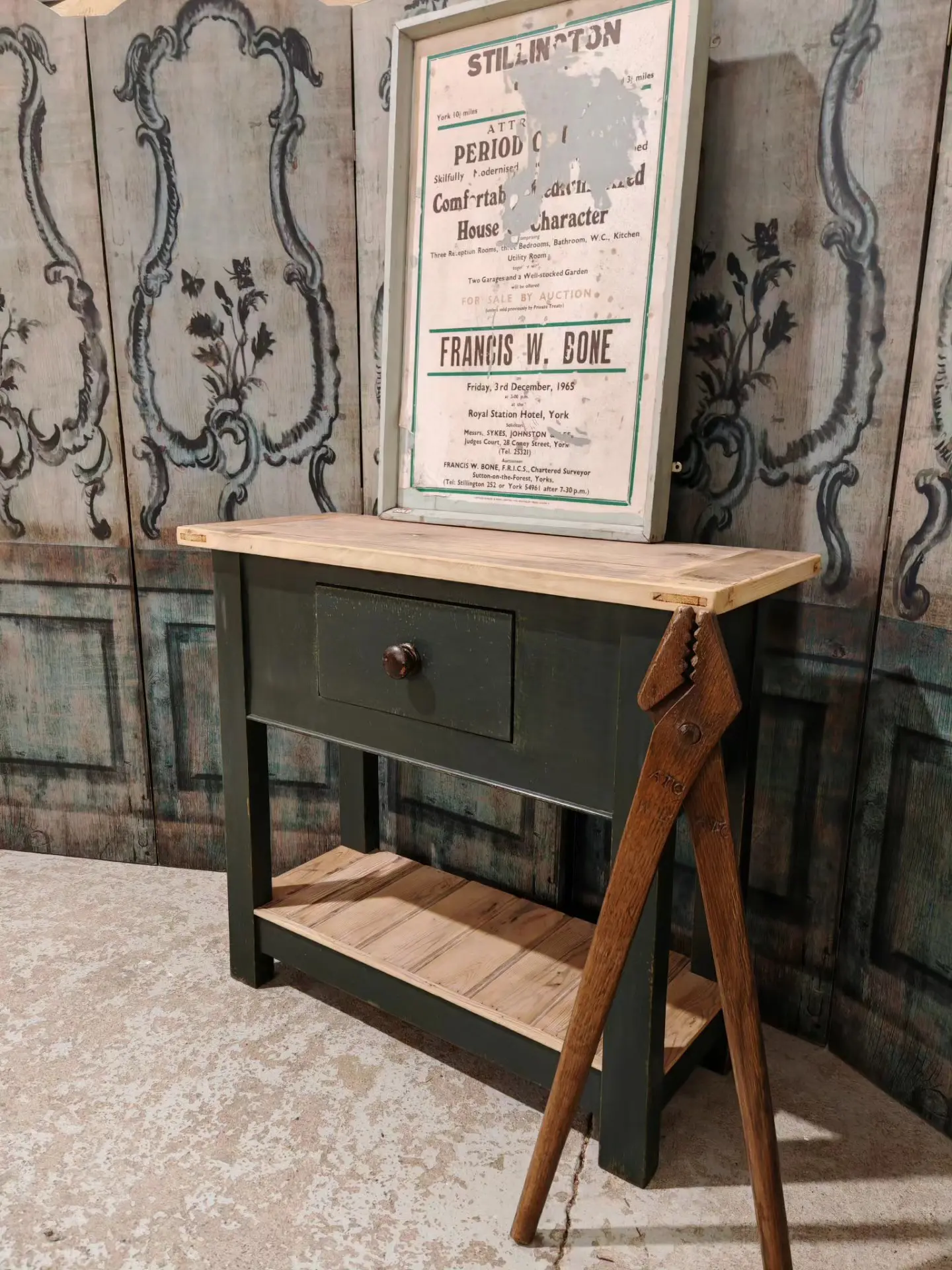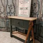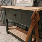 A lovely console table made from reclaimed pine and then painted in Studio Green with a distressed chipped paint effect.