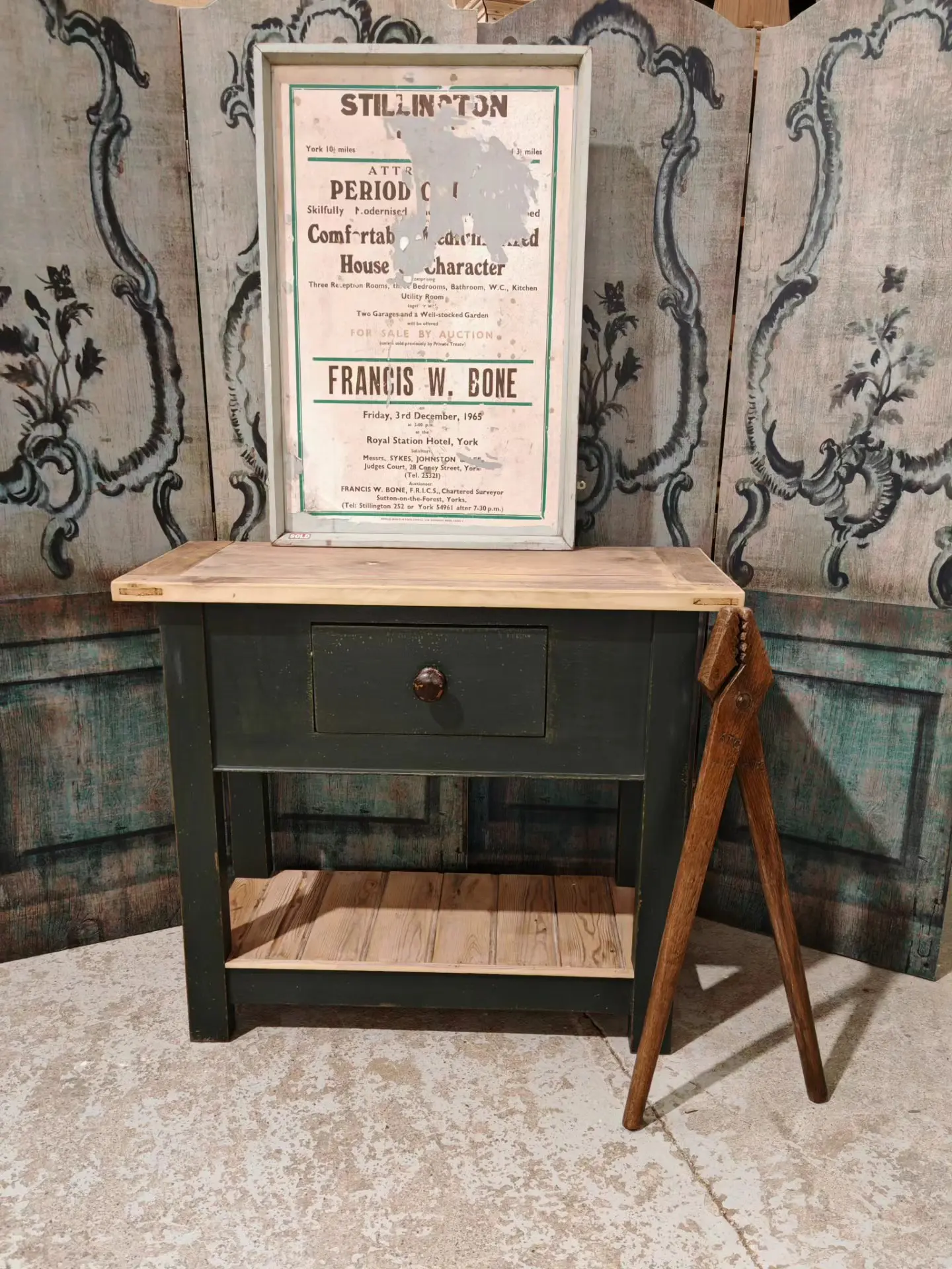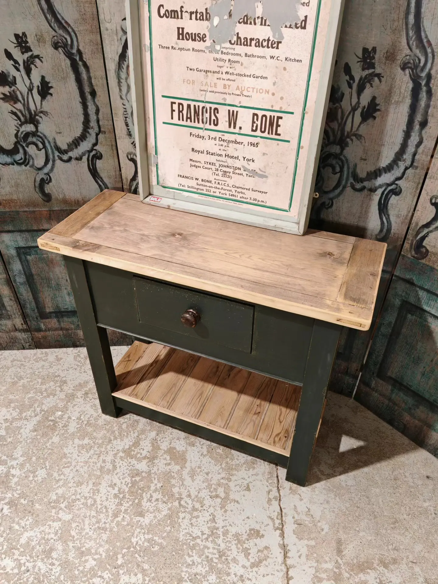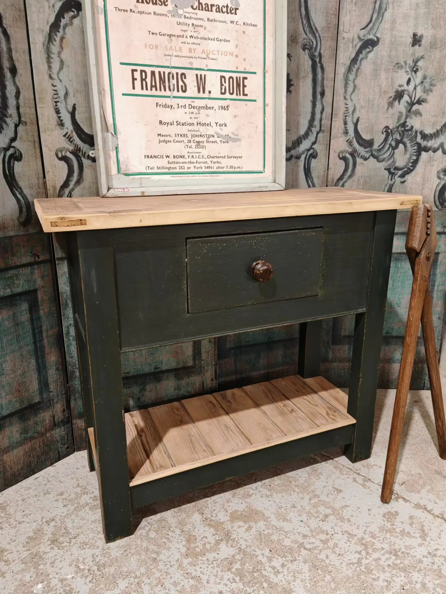 This is finished with an old pine top and low shelf that can be waxed if required and an old dark stained handle.