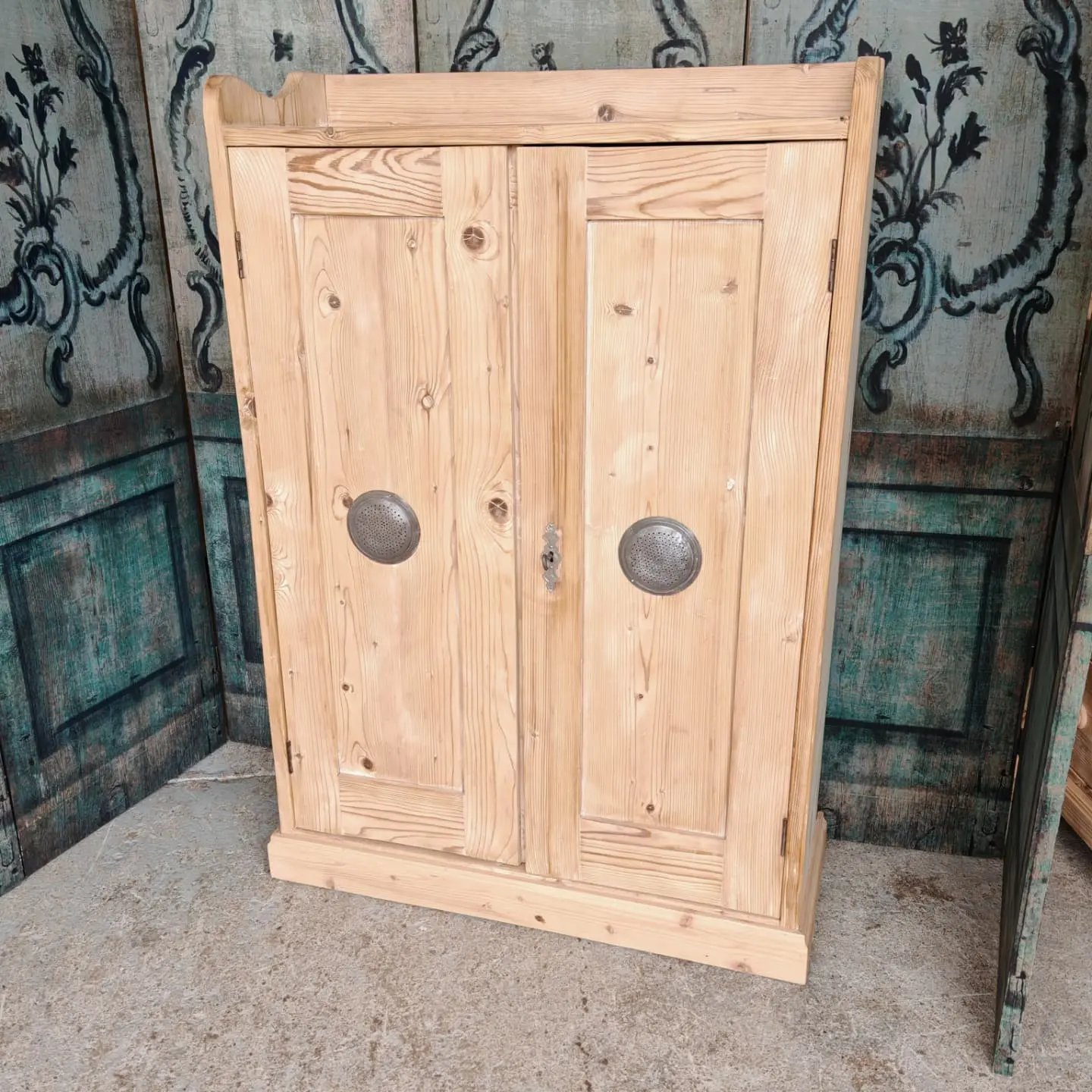 This very useful continental pine food / storage or linen 2 door cupboard is superb and would look lovely in many rooms in a home.