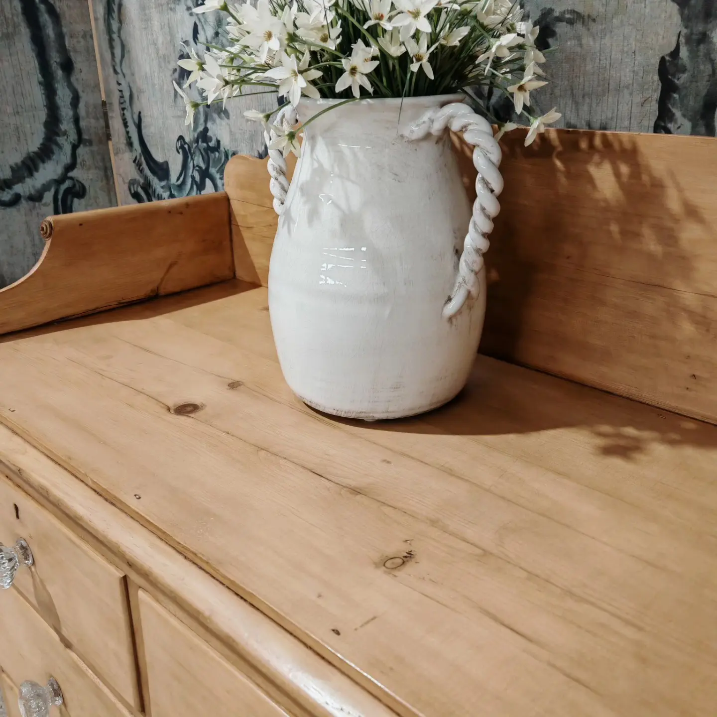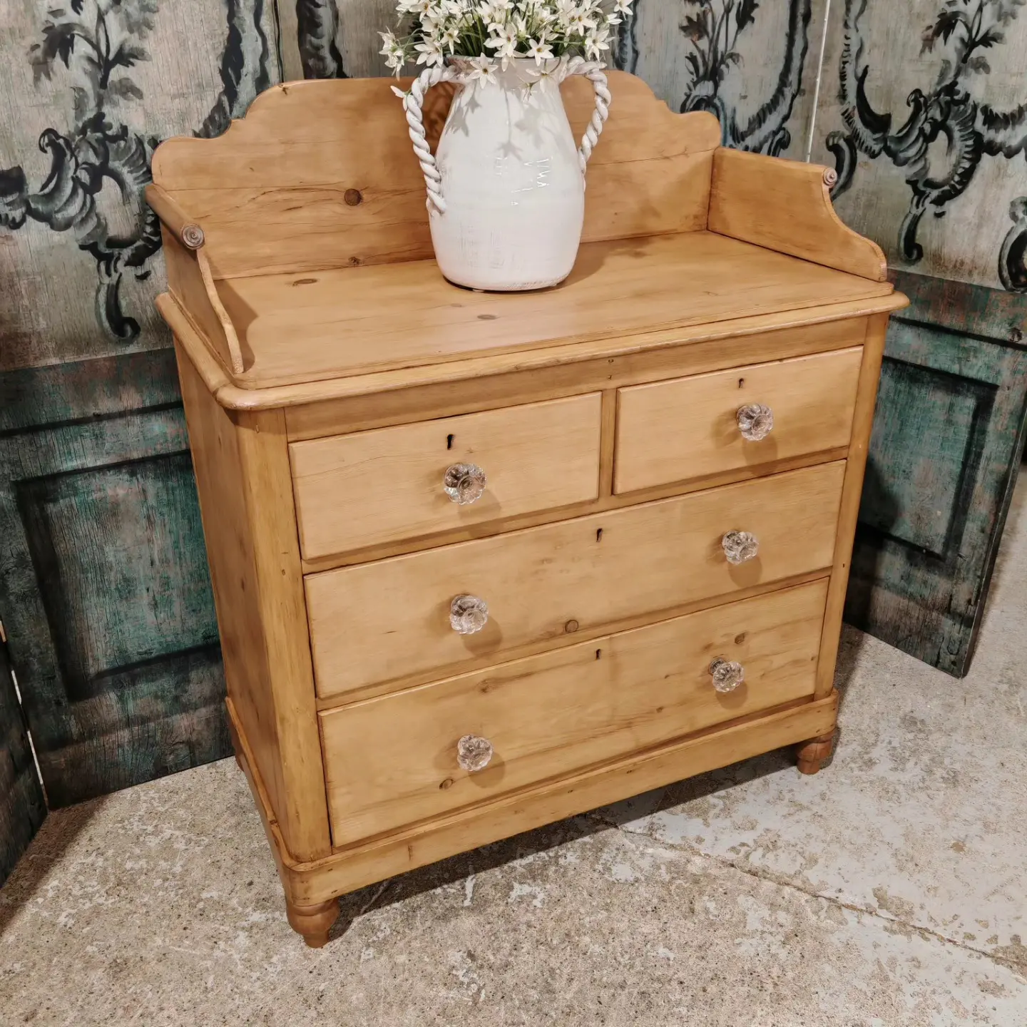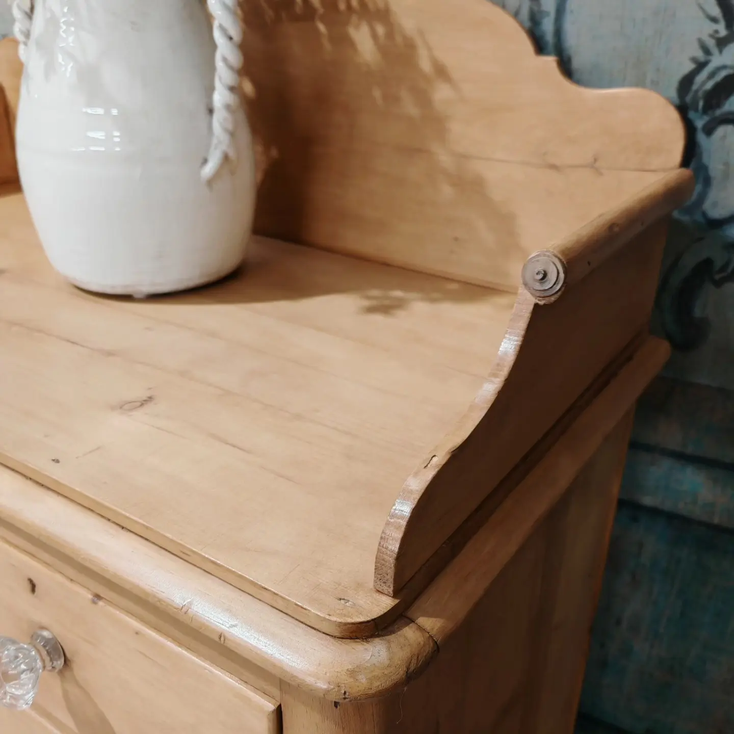 VICTORAIN PINE CHEST WITH UPSTAND / ORIGINAL GLASS HANDLES