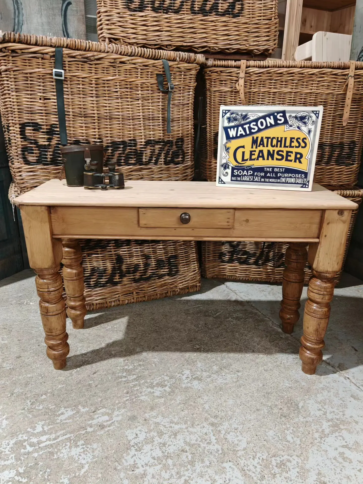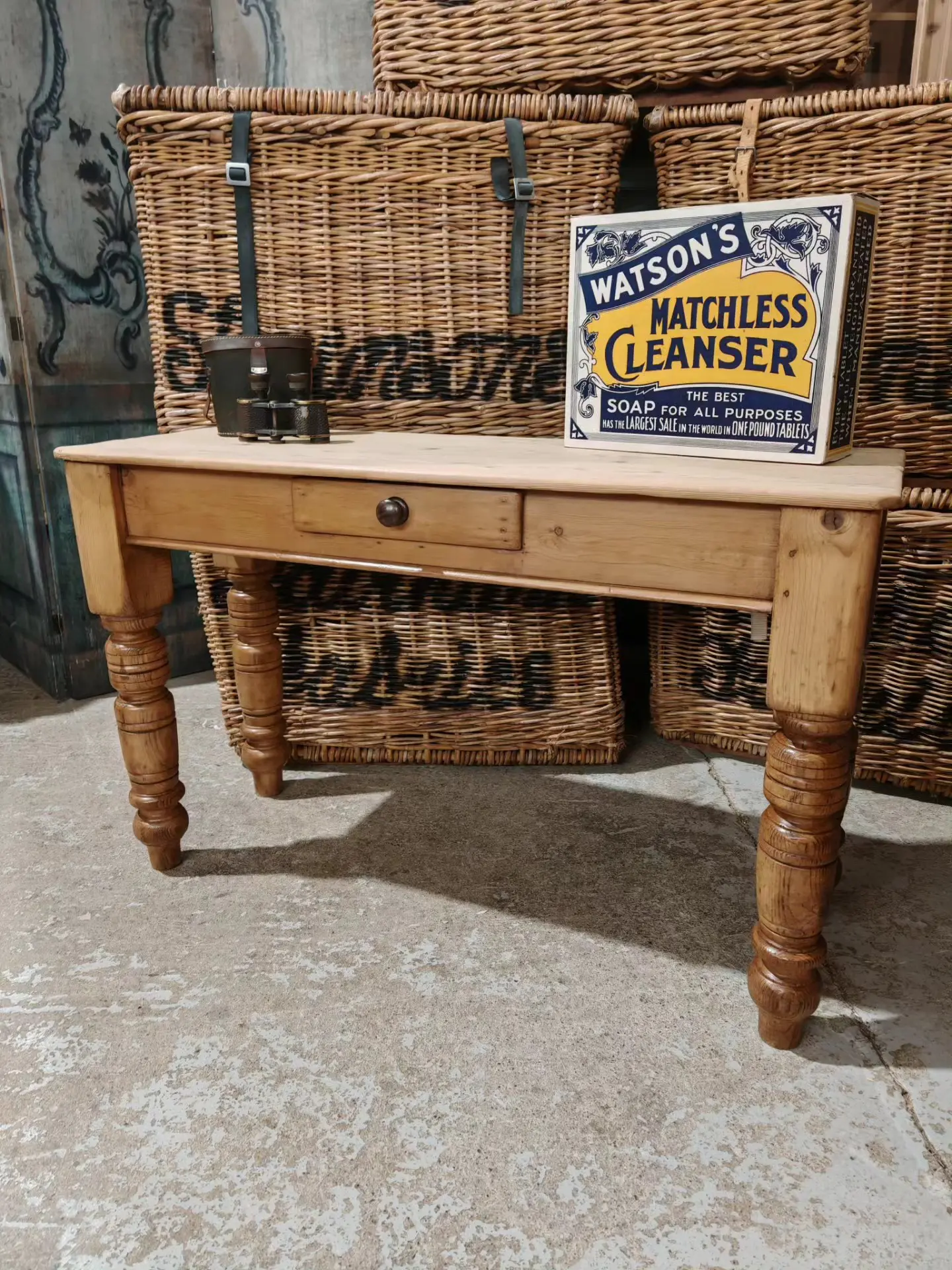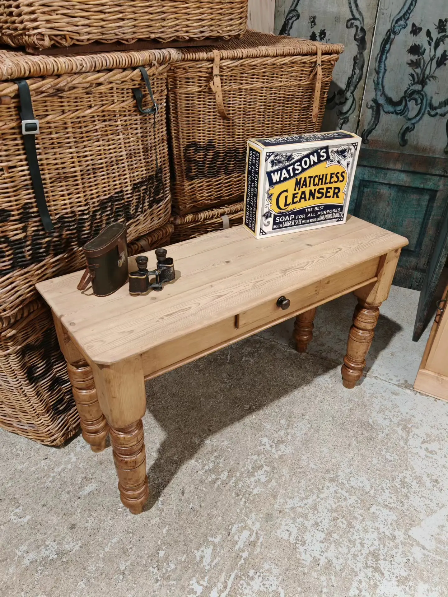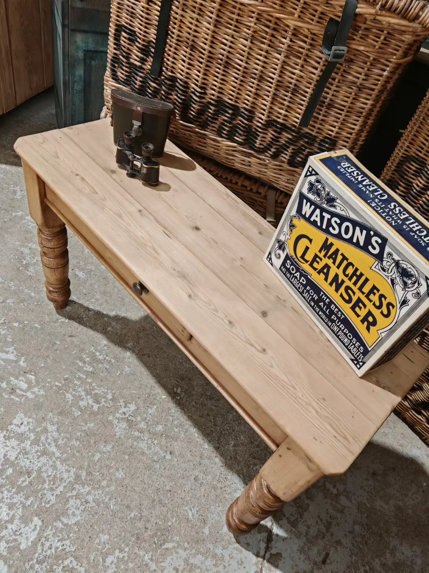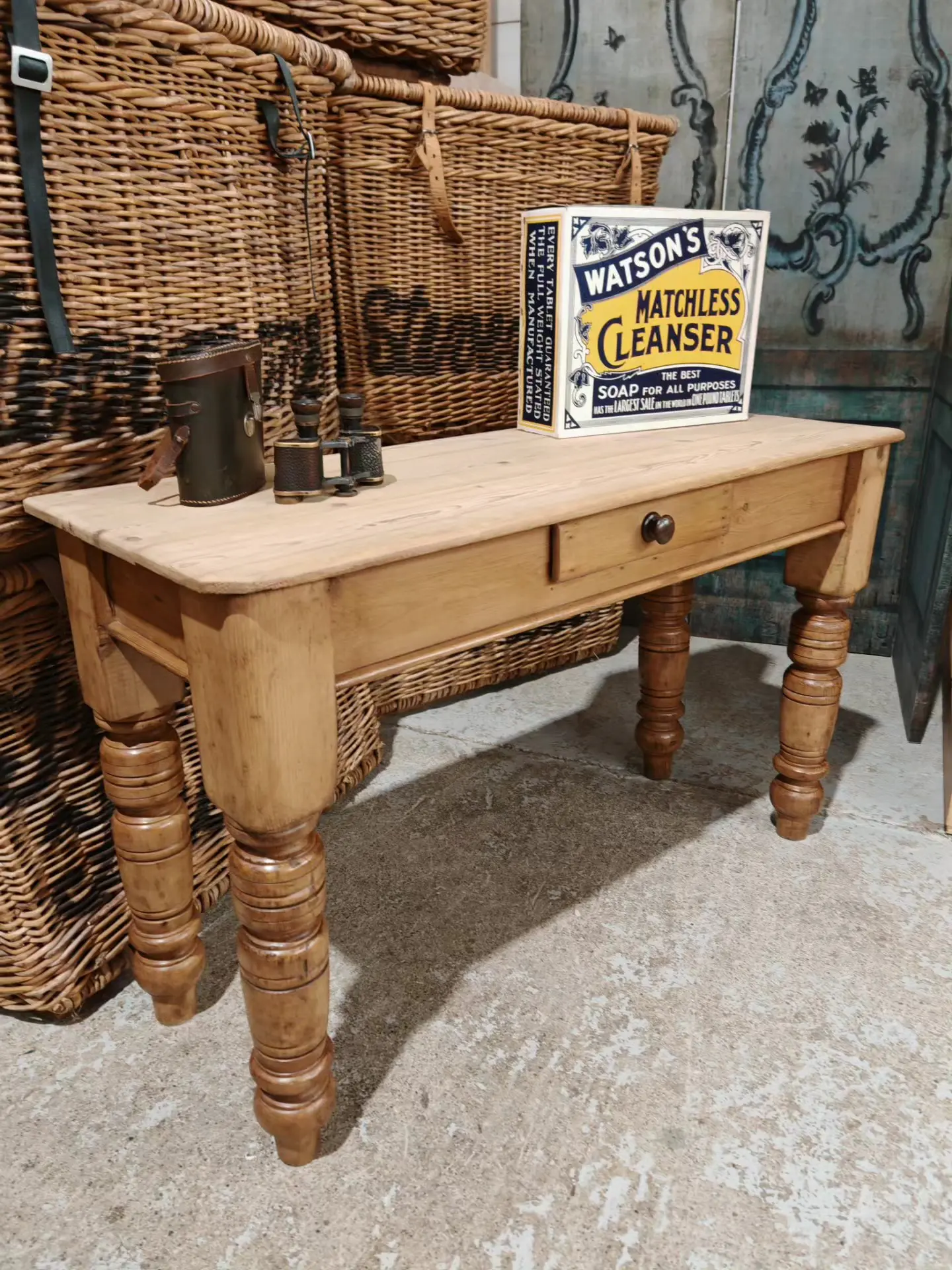 This stunning console table has a perfect patina on the waxed pine base and a lovely pine top.