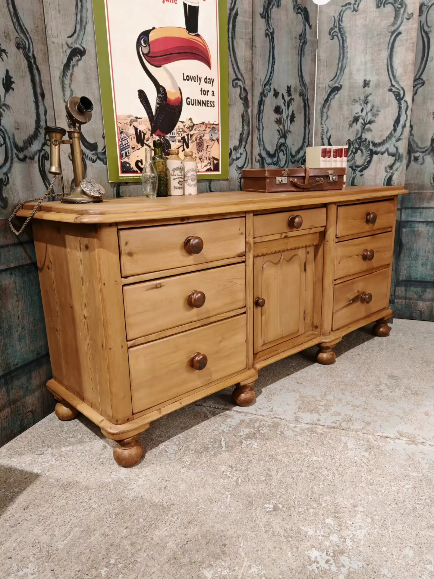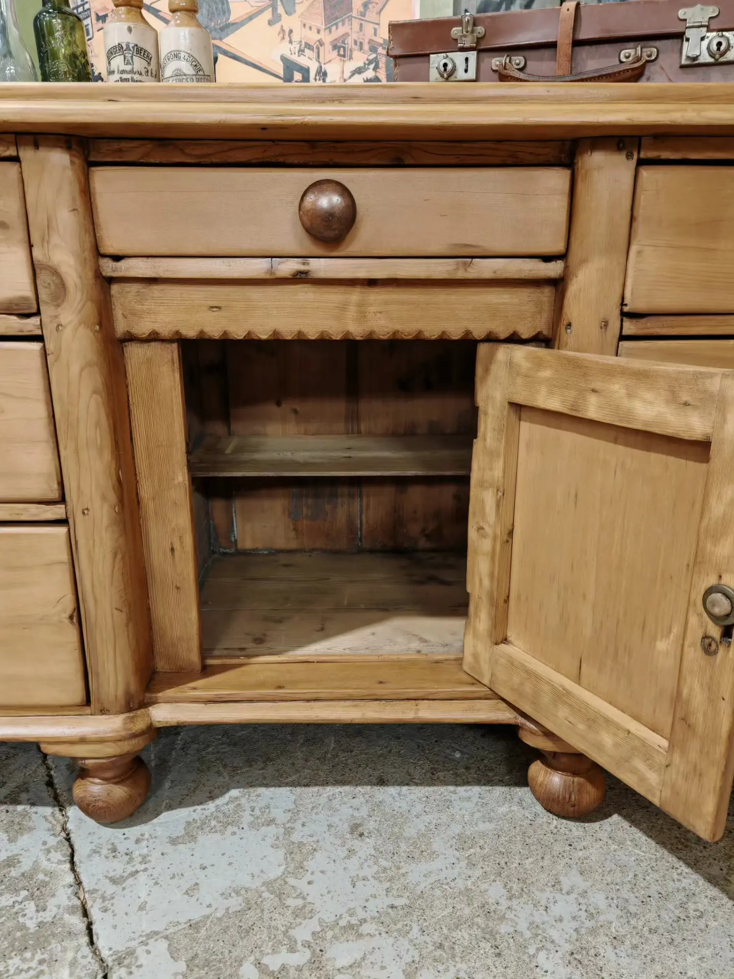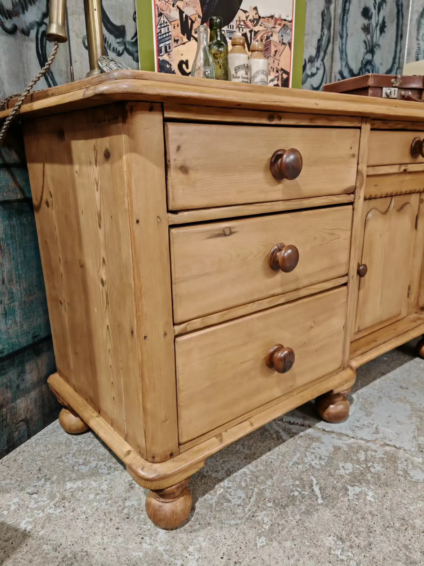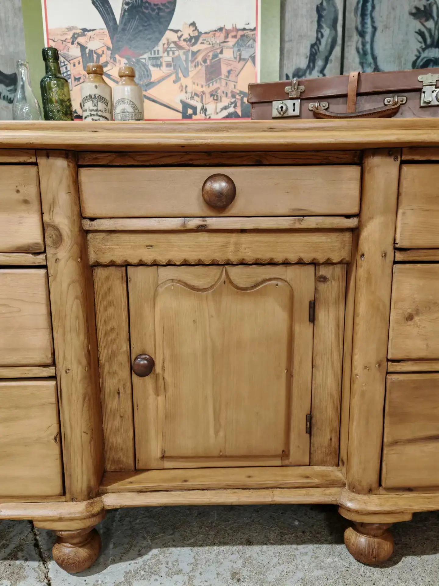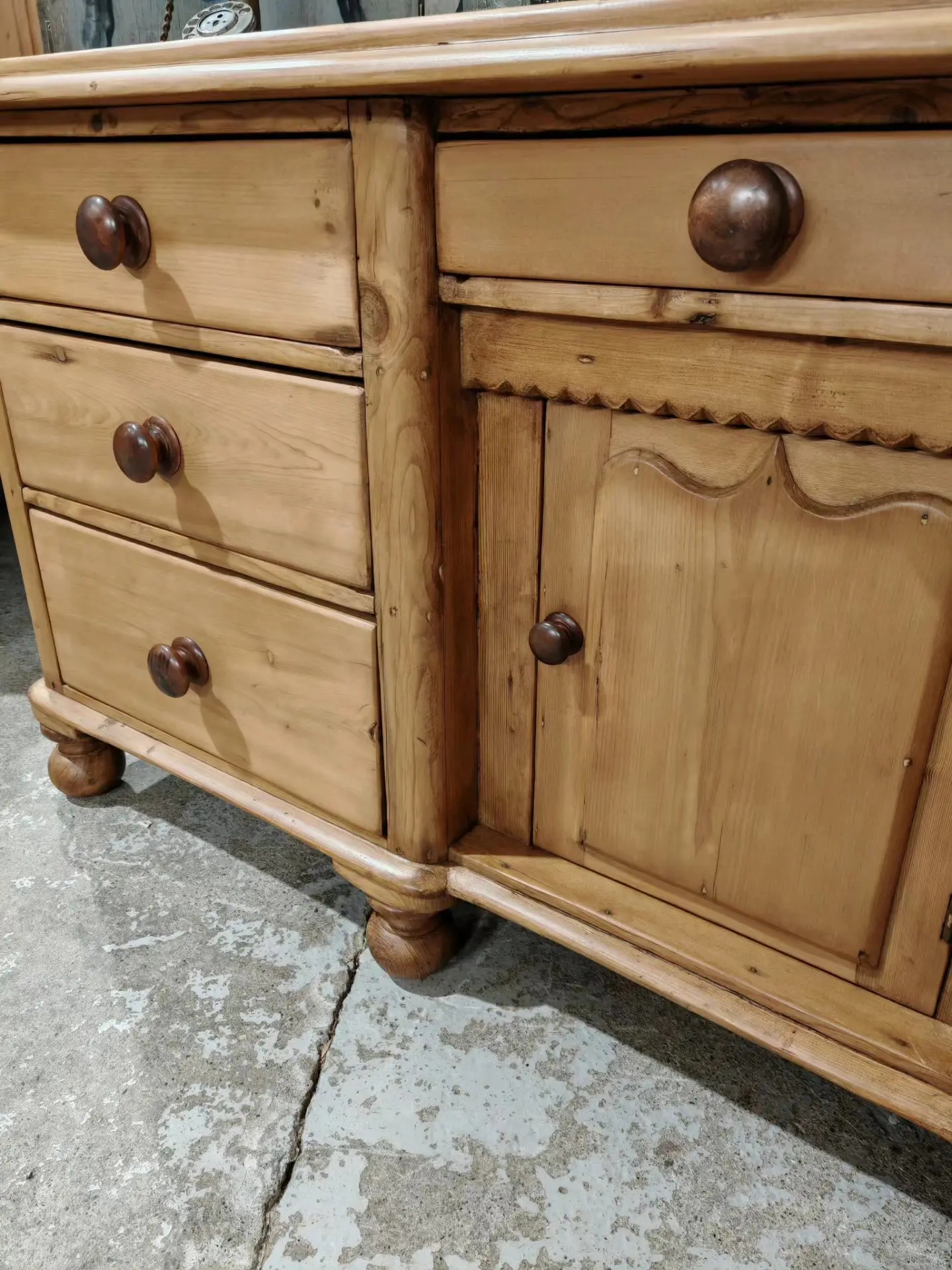 A beautiful piece and a nice pine sideboard built with quality and detail when first made.
