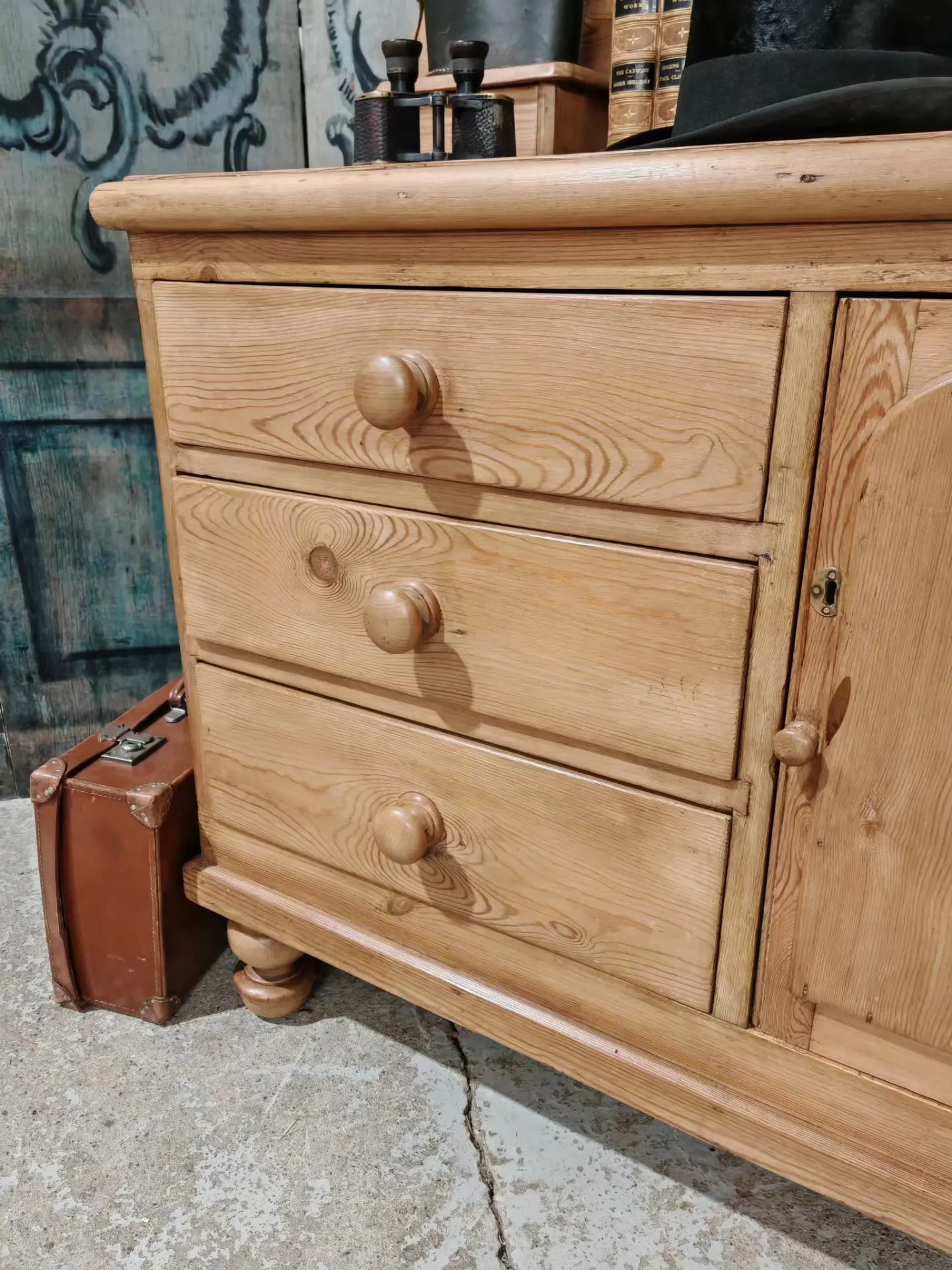 We have just finished a light restoration on this English Victorian pine sideboard.