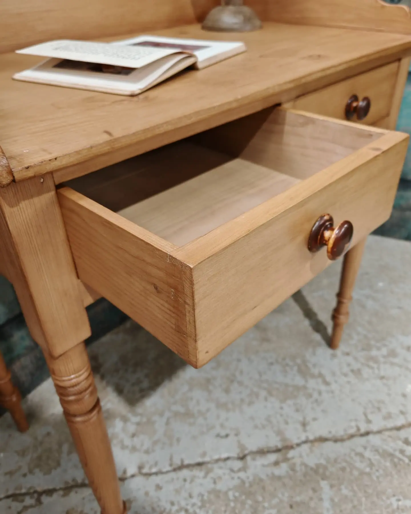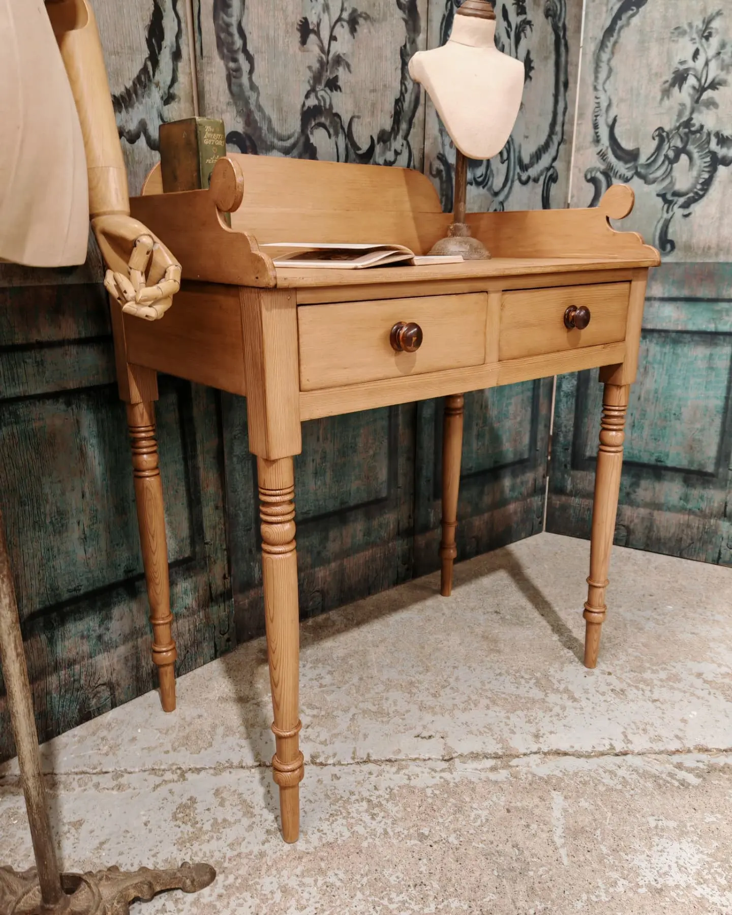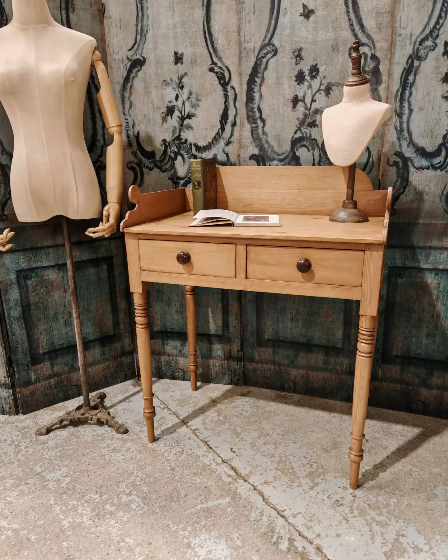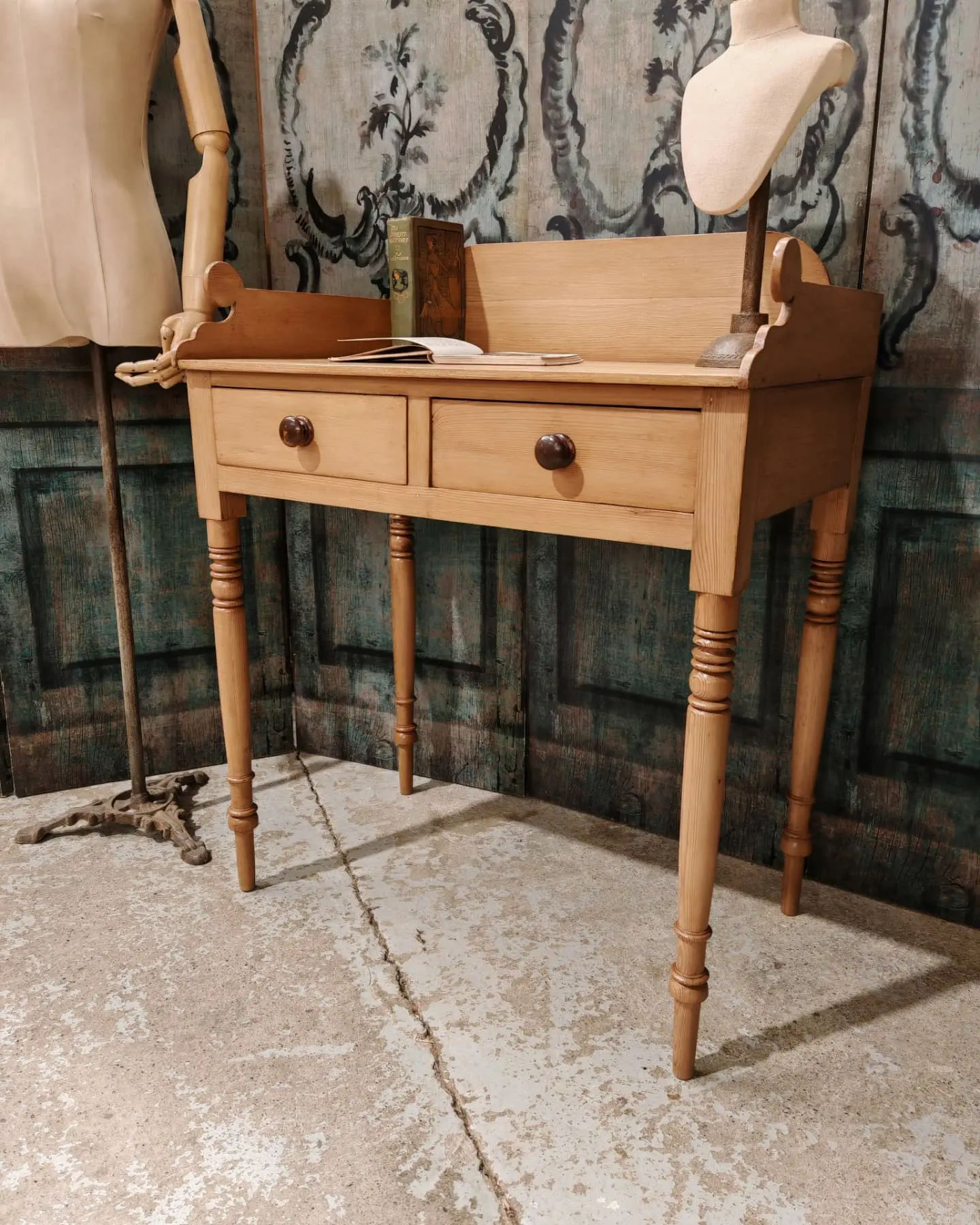 We have just finished restoring this beautiful Victorian tall slender-legged writing desk ideal for a bedroom, wash stand, small desk or side table. This sits very pretty on its tall legs and still retains its original handles and upstand.