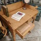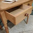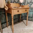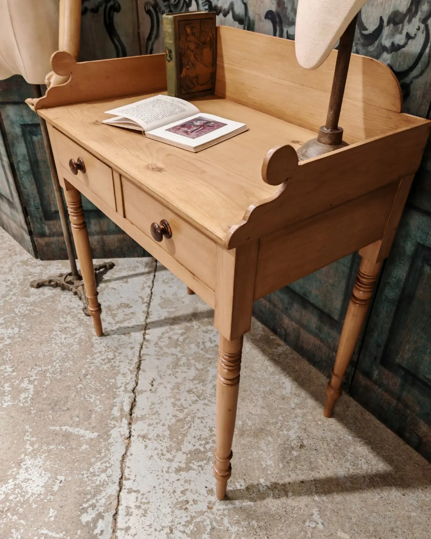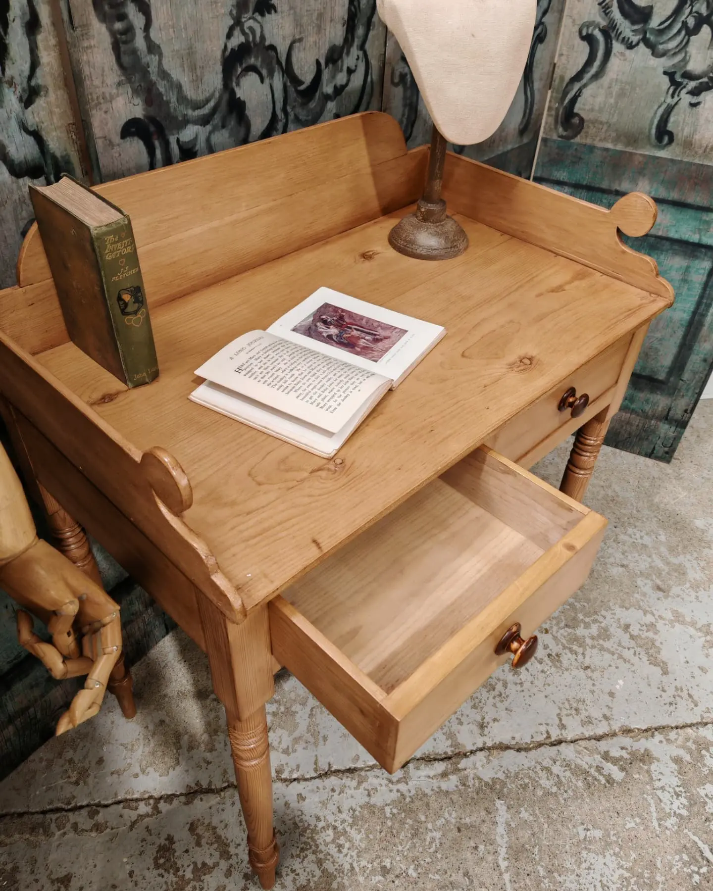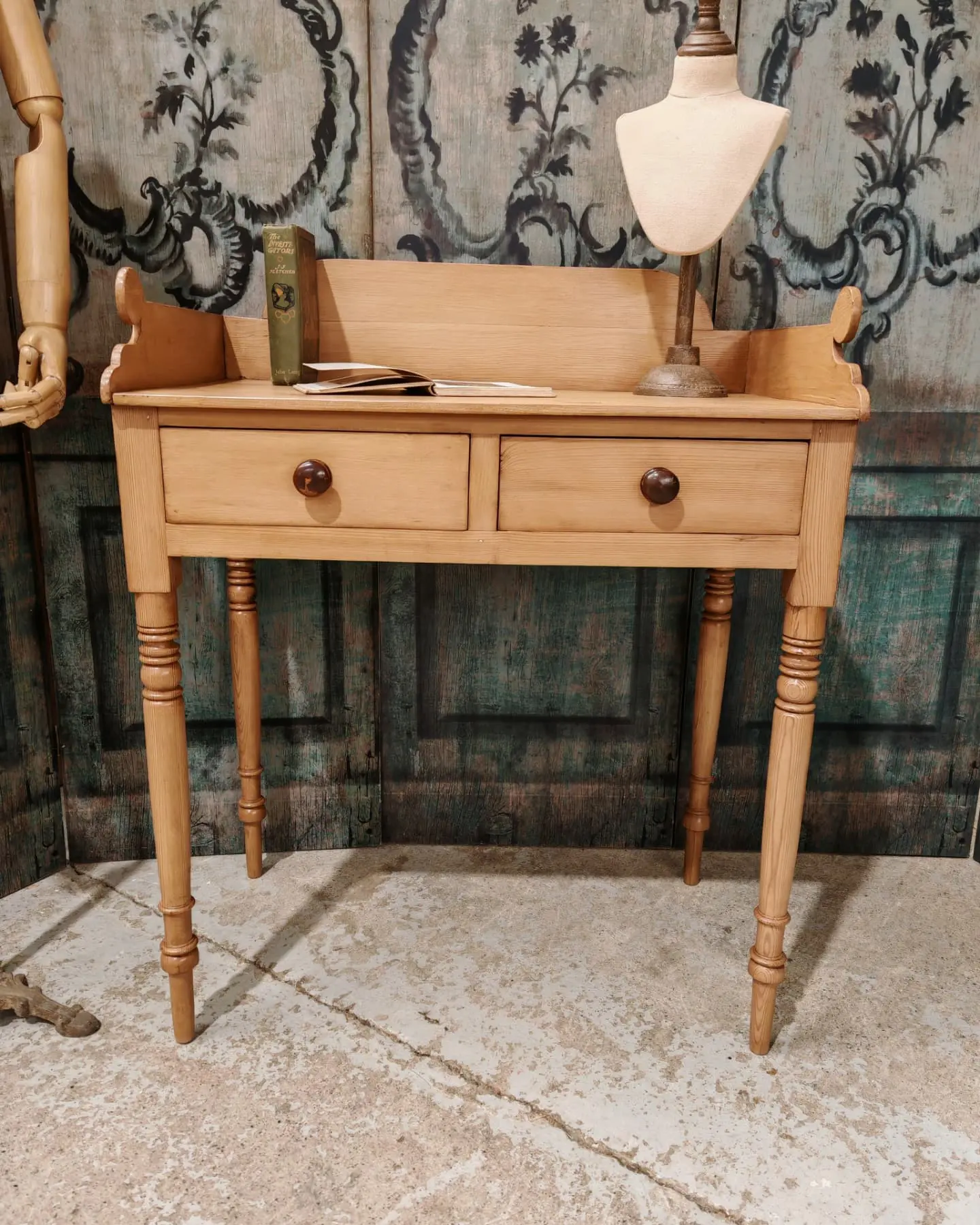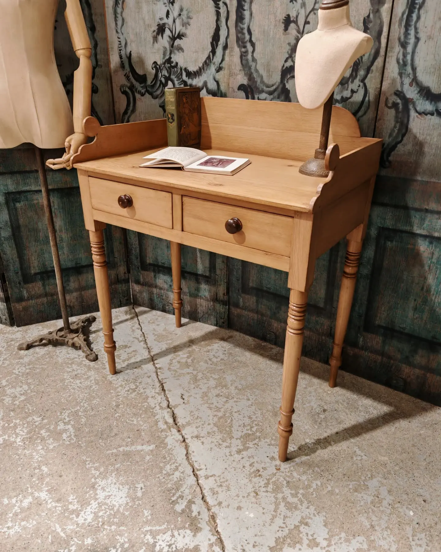We have just finished restoring this beautiful Victorian tall slender-legged writing desk ideal for a bedroom, wash stand, small desk or side table. This sits very pretty on its tall legs and still retains its original handles and upstand.